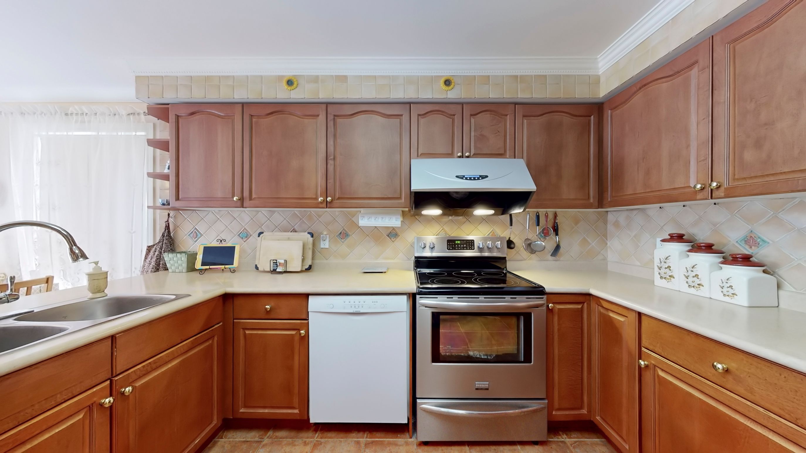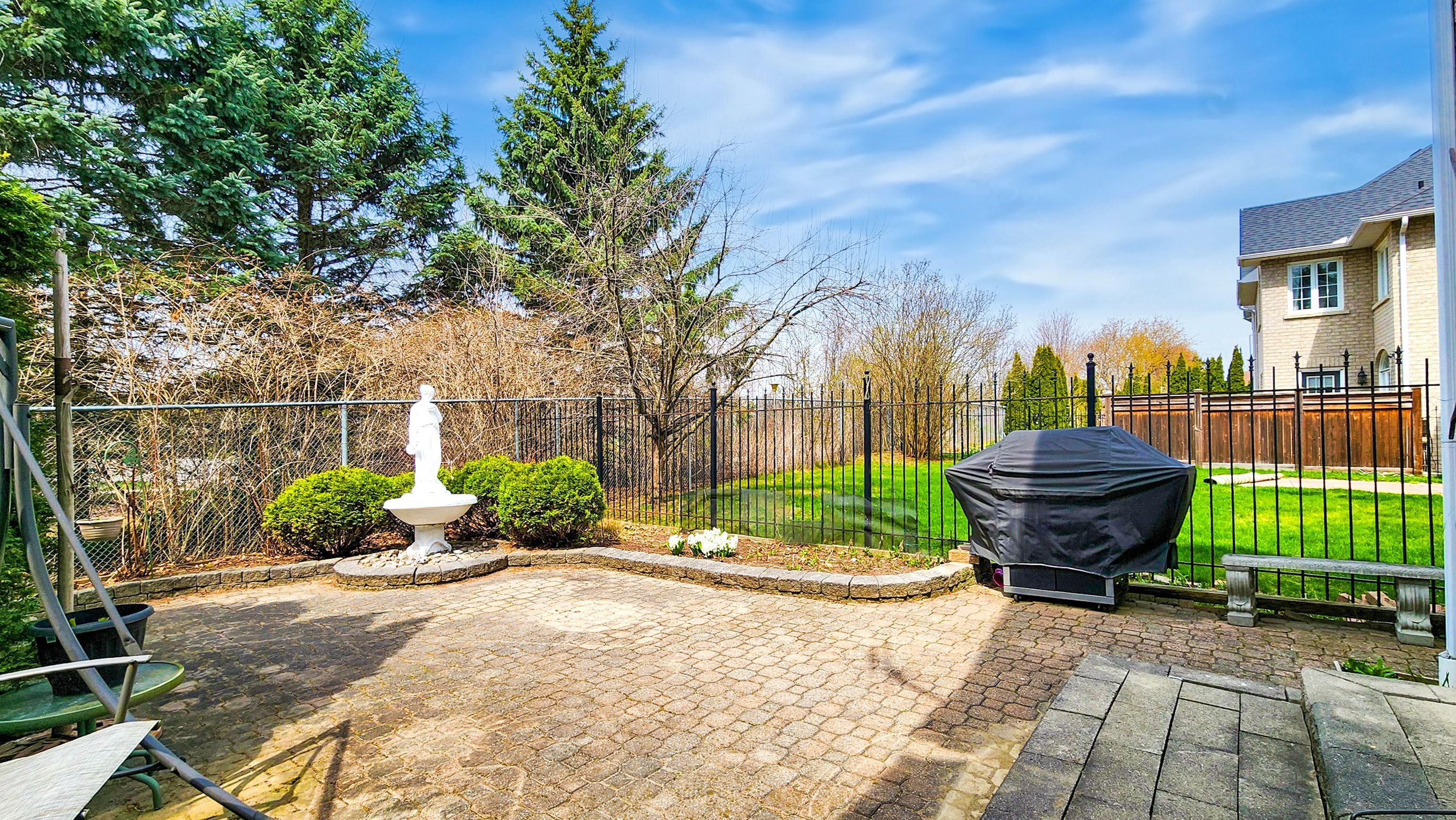 • Professionally landscaped, fenced backyard backing onto a park.