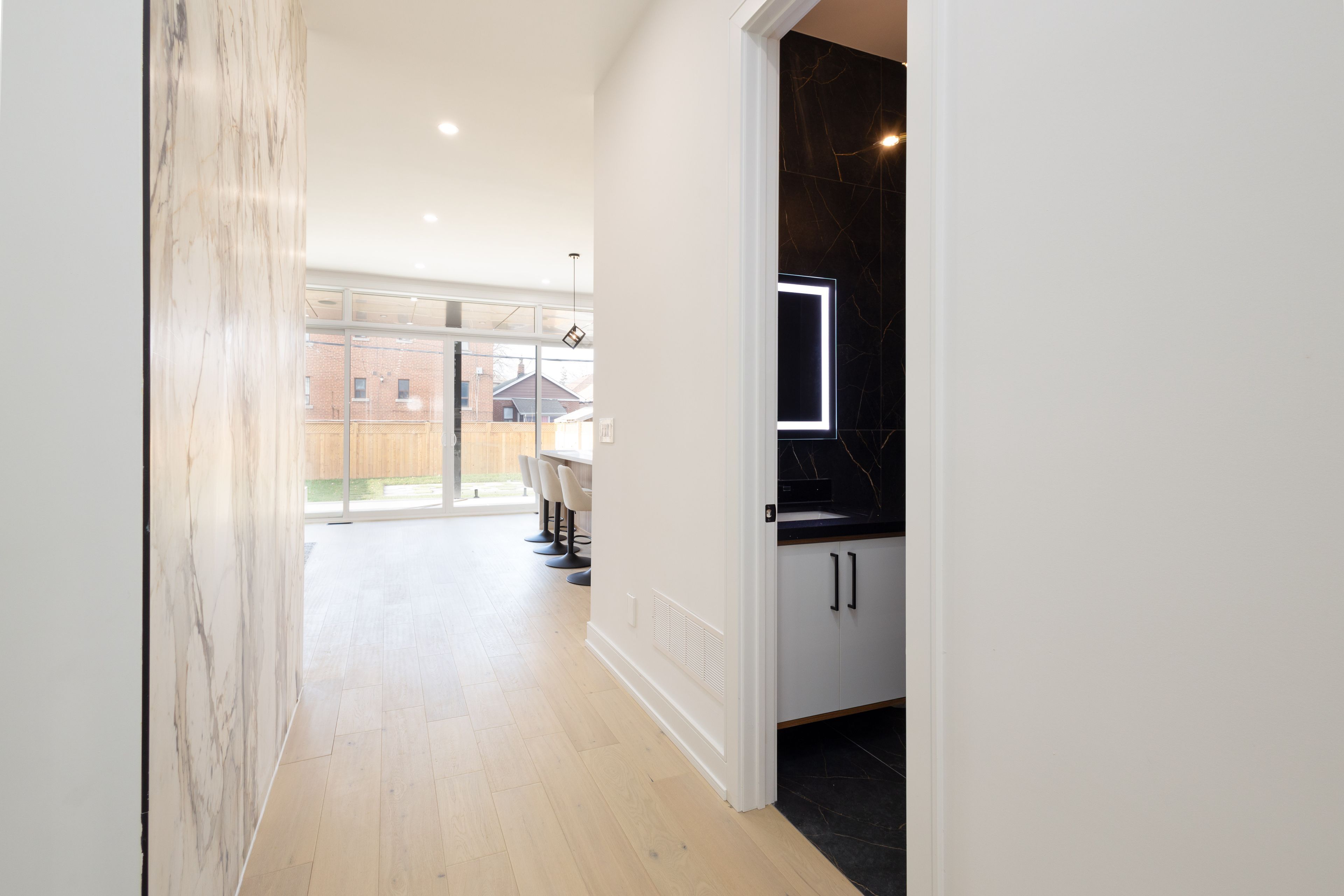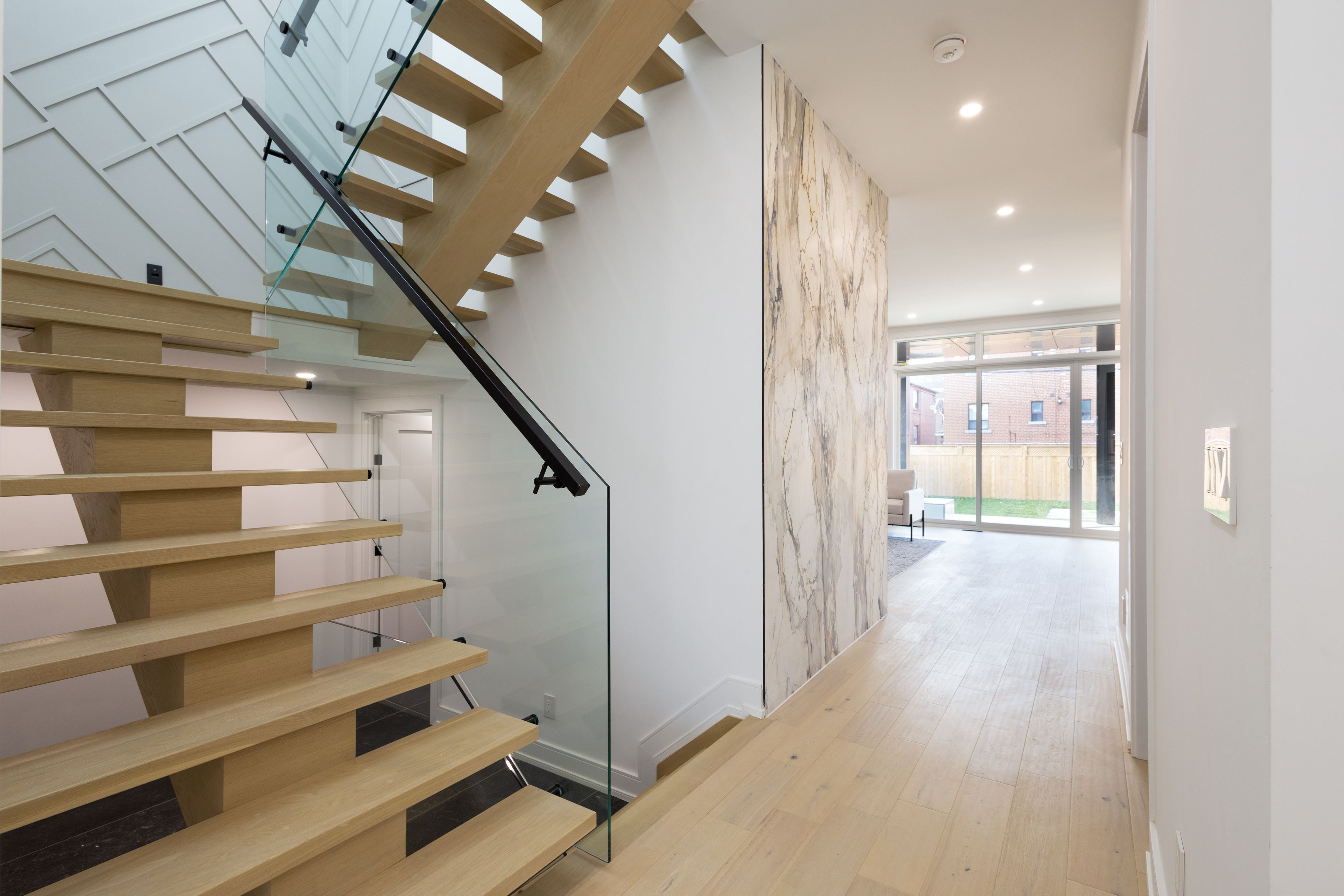 • Luxury interior finishes with hardwood floors and modern lighting.