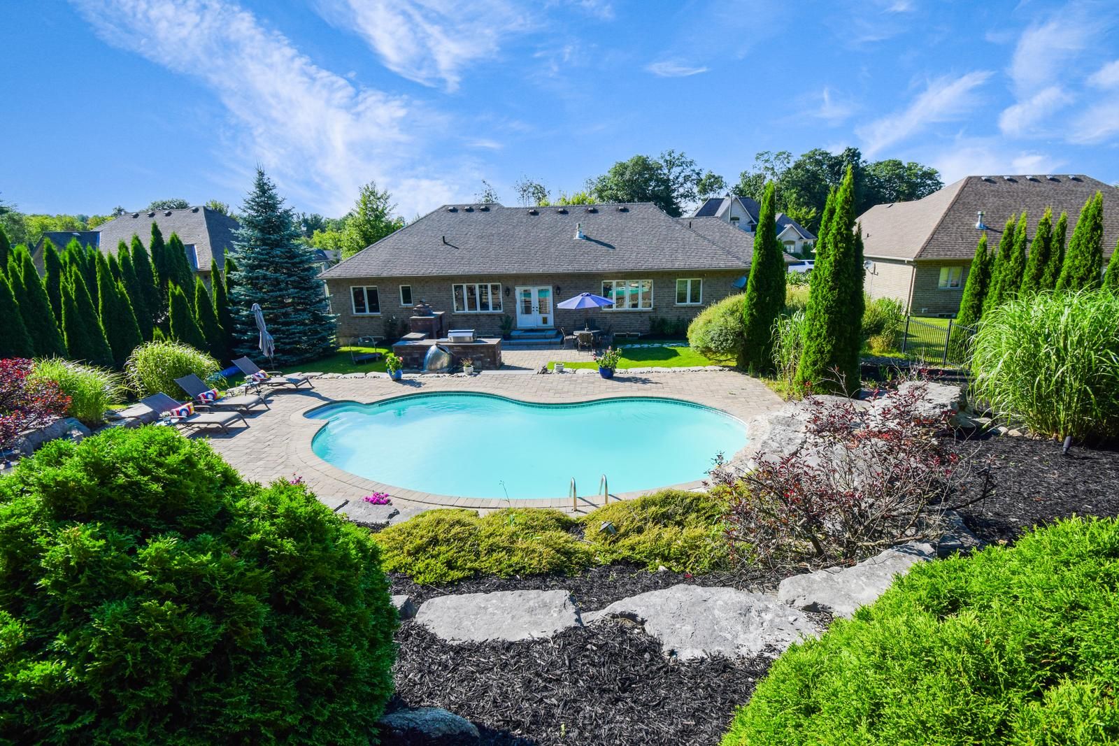 Welcome to 24 wendat trail, located in the prestigious neighborhood of carson ridge estates. This elegant home has 4+1 bed, 3 full washrooms with over 1700 sqft above ground (approx 3600 total finished livable space) 9 ft ceilings, cathedral ceiling in the family room and a backyard oasis with extensive custom landscaping, in ground heated pool, outdoor cooking area/fireplace, 3 car garage with high ceiling and separate basement entrance (12 car parking total). Full in ground irrigation system and outdoor lighting system both with smart controls. Many upgrades with recent renovations of all bathrooms and the basement. Close proximity to all major shopping, schools, medical and pharmacy just a 5 minute drive from the home. You can experience luxury estate living yet conveniently located close to everything for your living needs. Golf clubs and ski resorts just a short drive away making it an ideal location for the both summer and winter activities for the entire family.