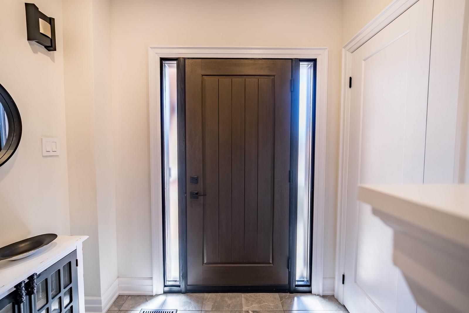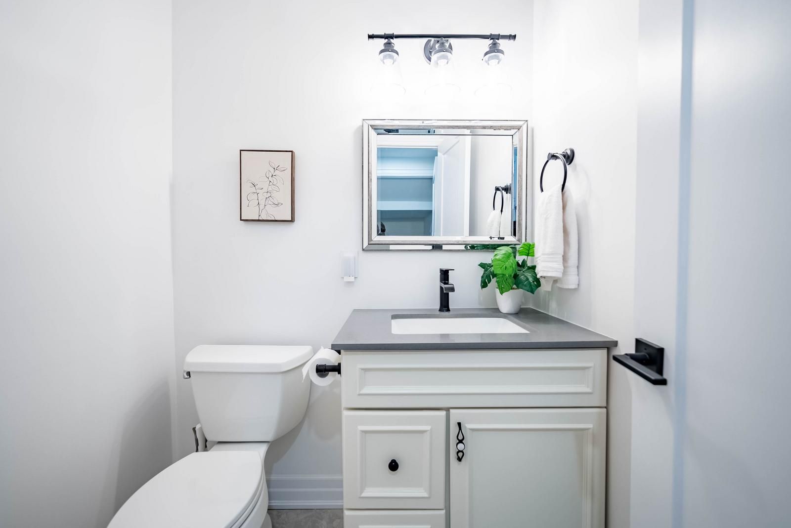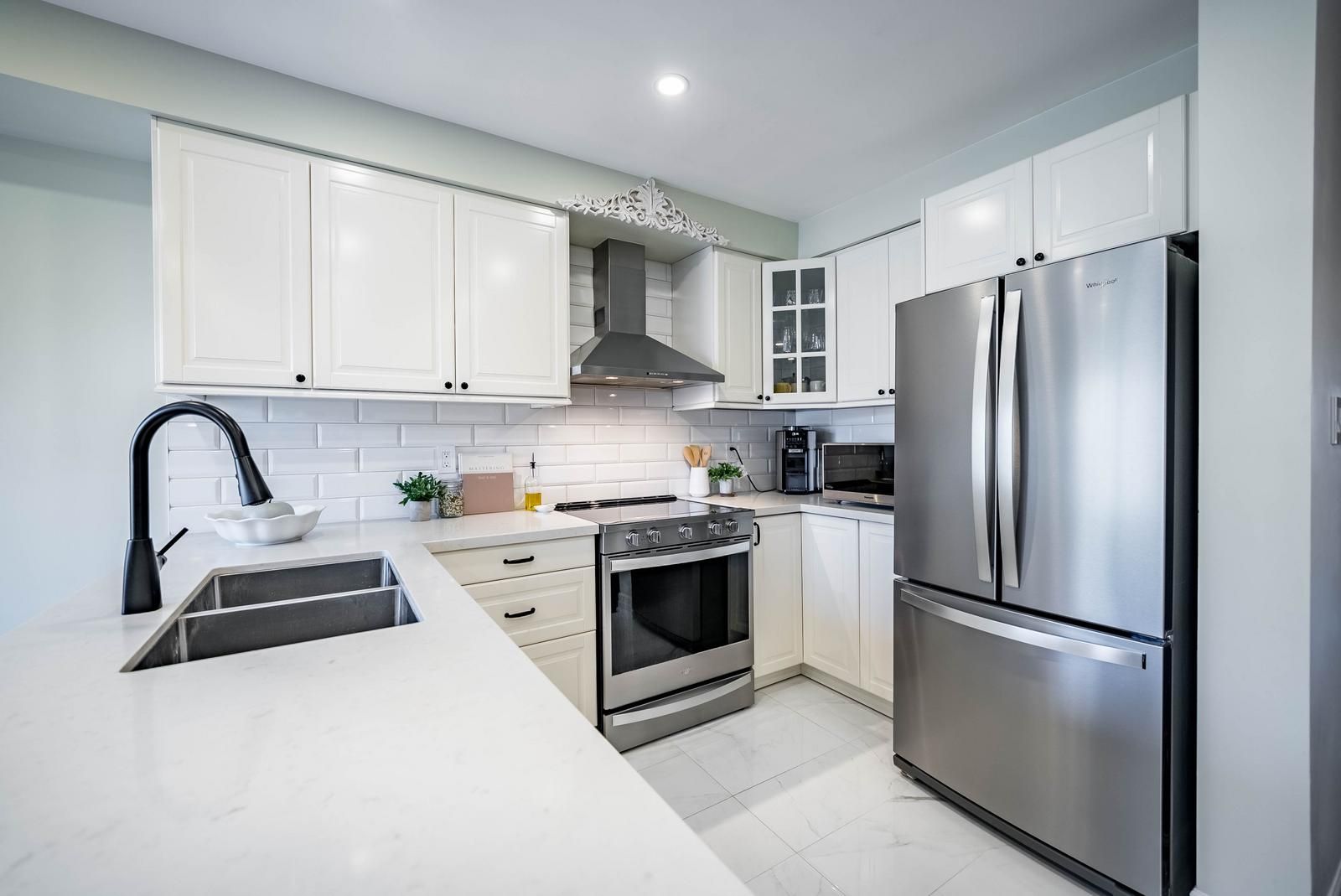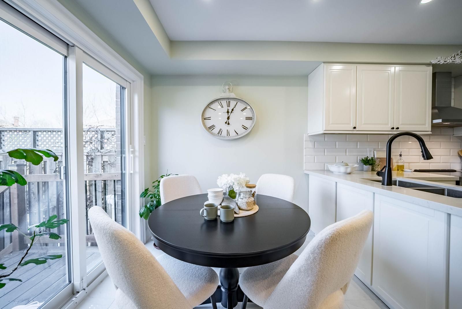 • Bright kitchen with modern appliances, quartz countertops, and backyard access.