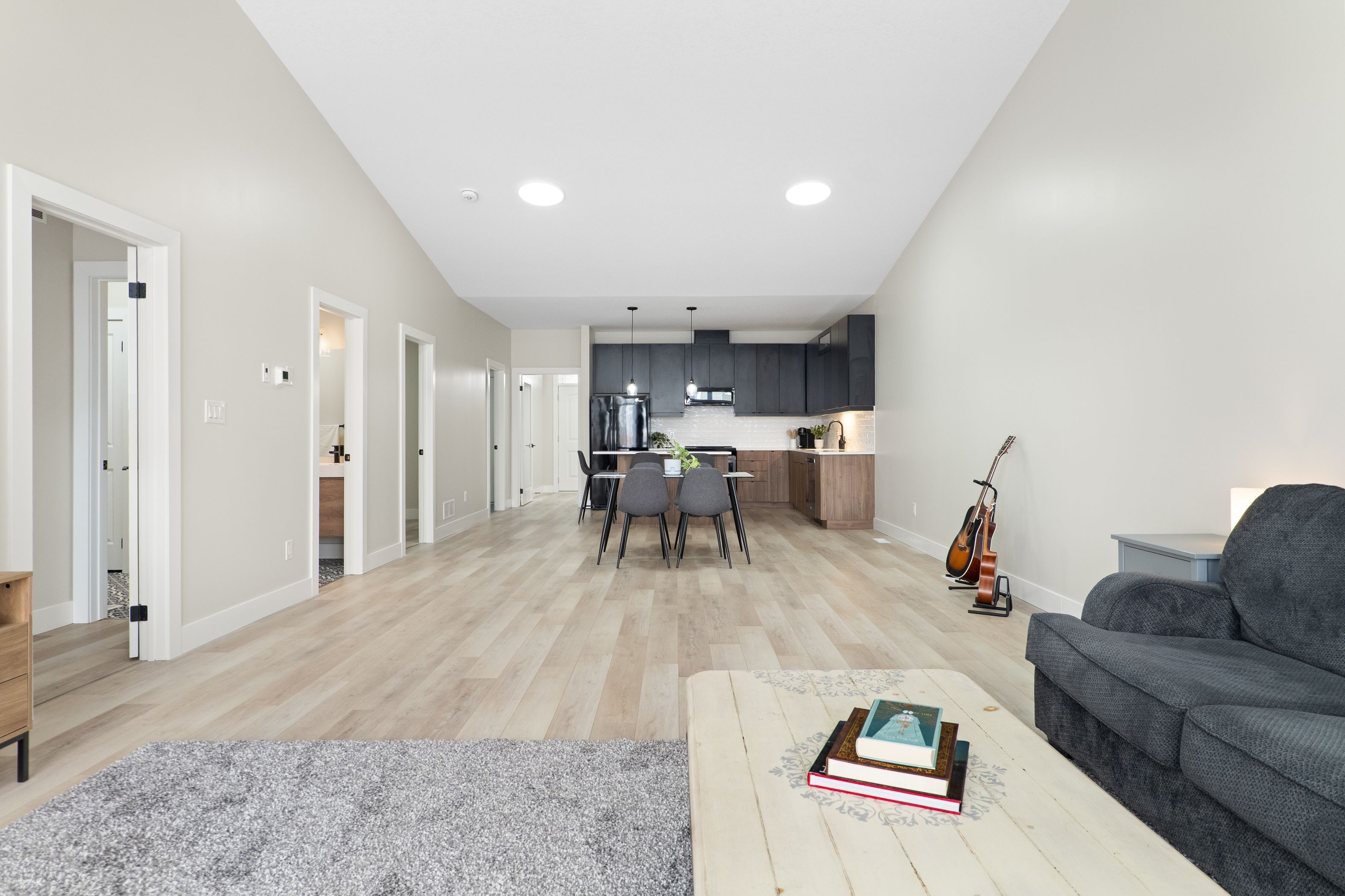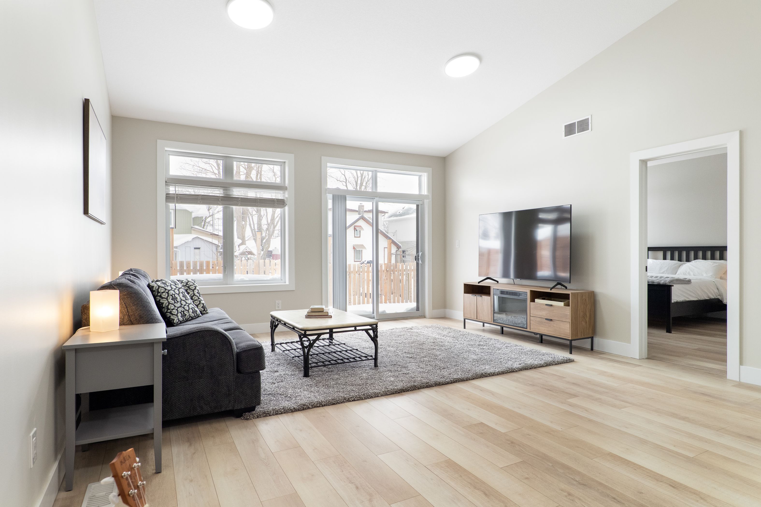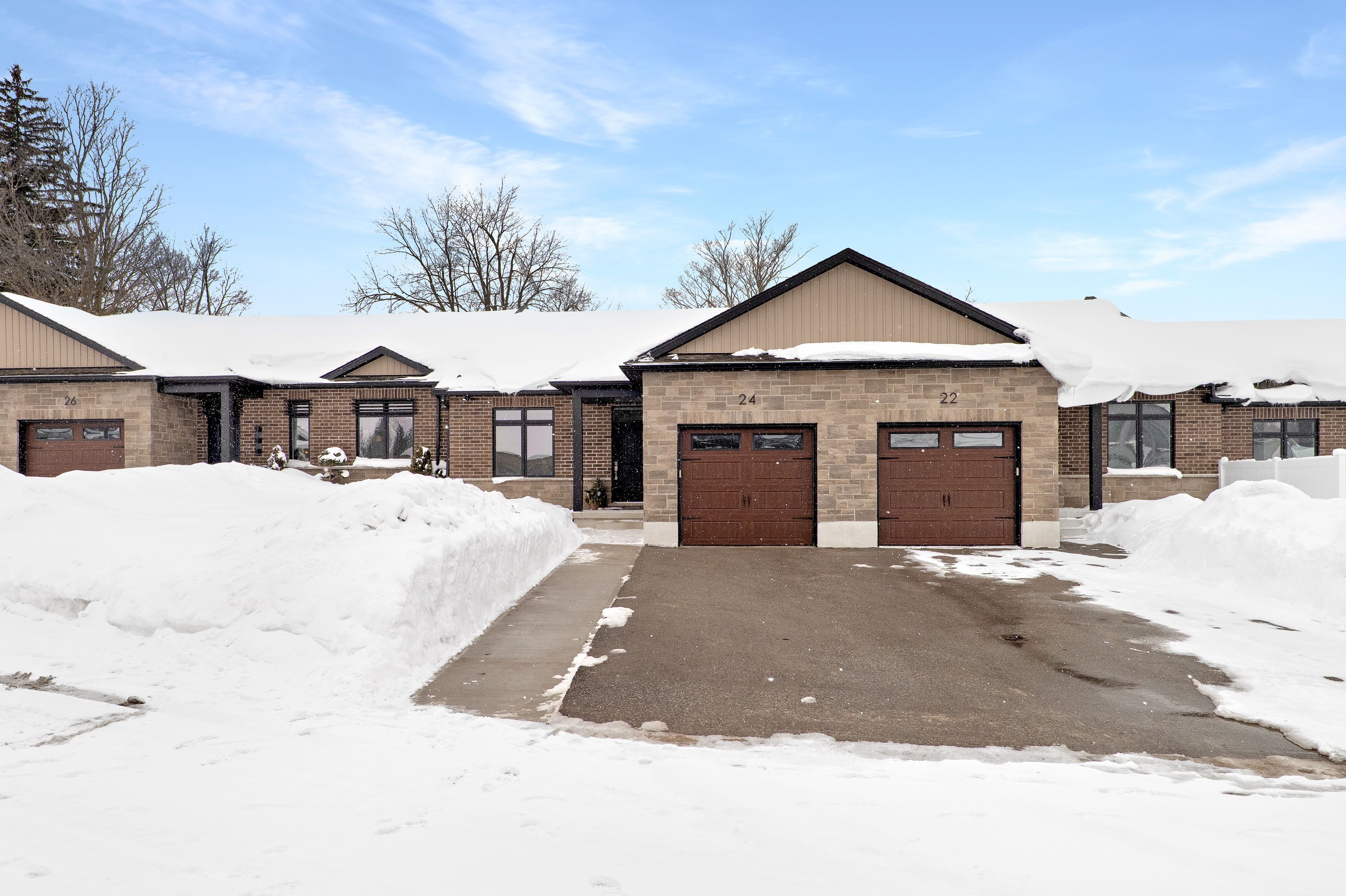 Welcome to 24 yost court! Thoughtfully finished, this 2-bedroom plus den townhome delivers bright open-concept living, a fully finished basement, and style throughout. Check out our top 6 reasons why this home could be the perfect fit for you: #6: location: set on a quiet cul-de-sac in milverton, this home offers small-town charm with everyday convenience. You're minutes to local amenities, a short drive to stratford, listowel, and waterloo region, and just a 5-minute walk to the g2g trail - perfect for walking, cycling, and outdoor adventures. #5: main floor layout: the carpet-free main floor offers bright & airy, open-concept living, with a 12-foot vaulted ceiling, and plenty of natural light throughout. The layout is practical, spacious, and easy to maintain, and includes a generous living room with a walkout at the rear and a laundry room off the garage. #4: kitchen & dining: the open-concept kitchen sits at the heart of the home, connecting seamlessly to the living and dining spaces. With attractive two-toned cabinetry, subway tile backsplash, and an island with a breakfast bar, it's as functional as it is stylish. Just off the kitchen is the dinette where you can host friends and family. #3: backyard: the low-maintenance backyard is easy to enjoy without the upkeep. #2: bedroom & bathroom: the main level features a spacious bedroom with ample closet space, a 5-piece privilege ensuite with double sinks and a shower/tub combo, plus a versatile den - ideal as a home office, library, play room or hobby space. #1: finished basement: the fully finished carpet-free basement adds exceptional flexibility. With a kitchenette, spacious bedroom with a 4-piece ensuite, and a large rec room. You'll also find plenty of storage, a second laundry room, and a cold room