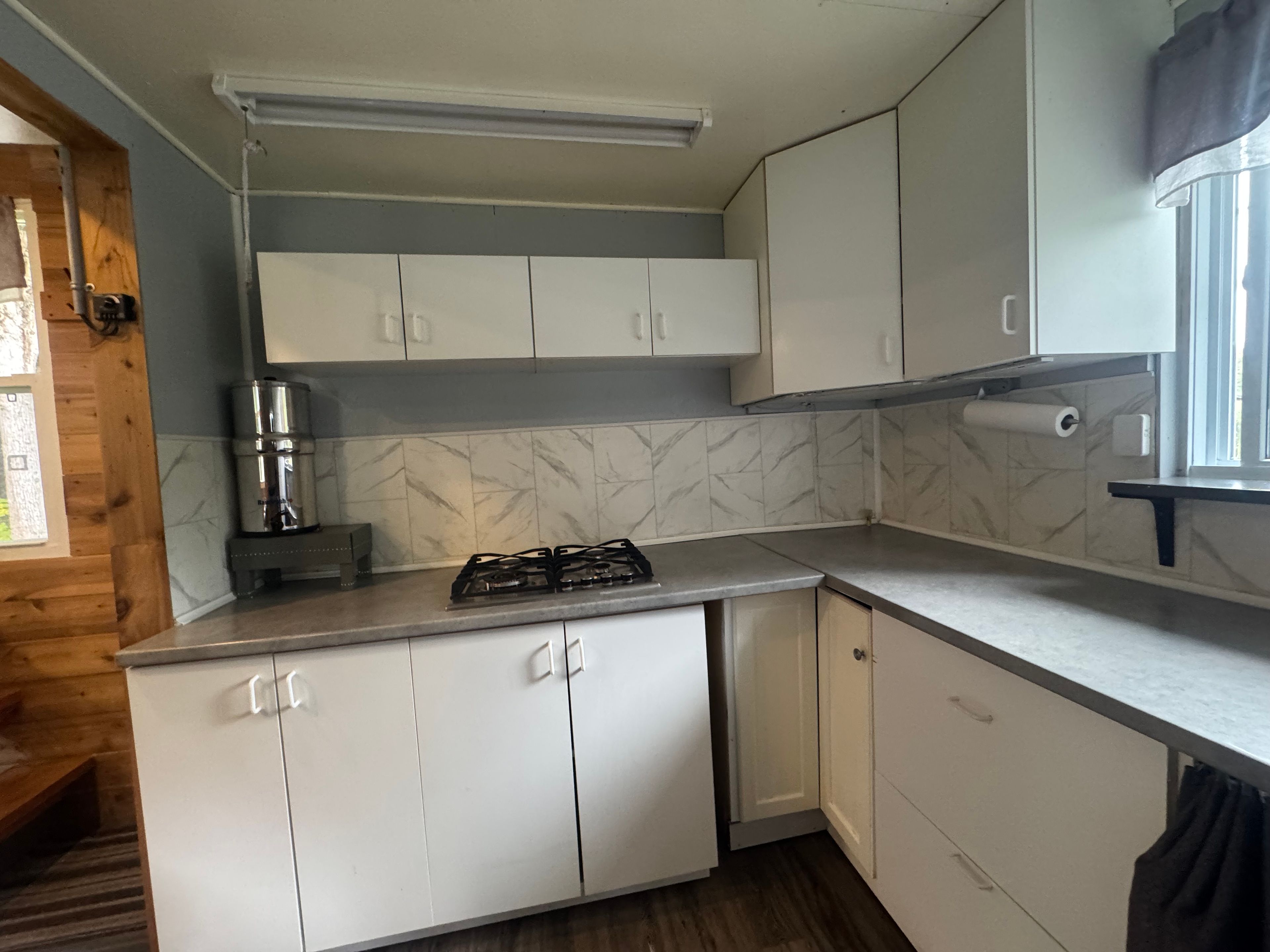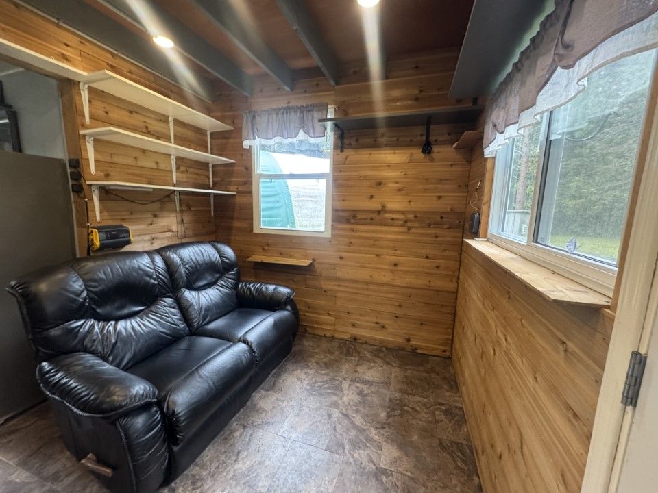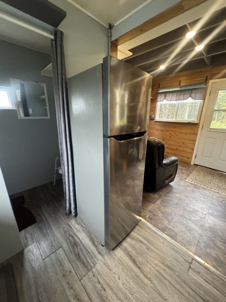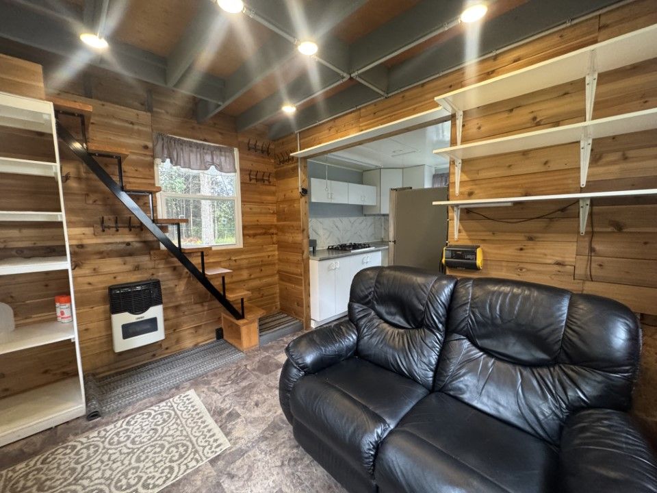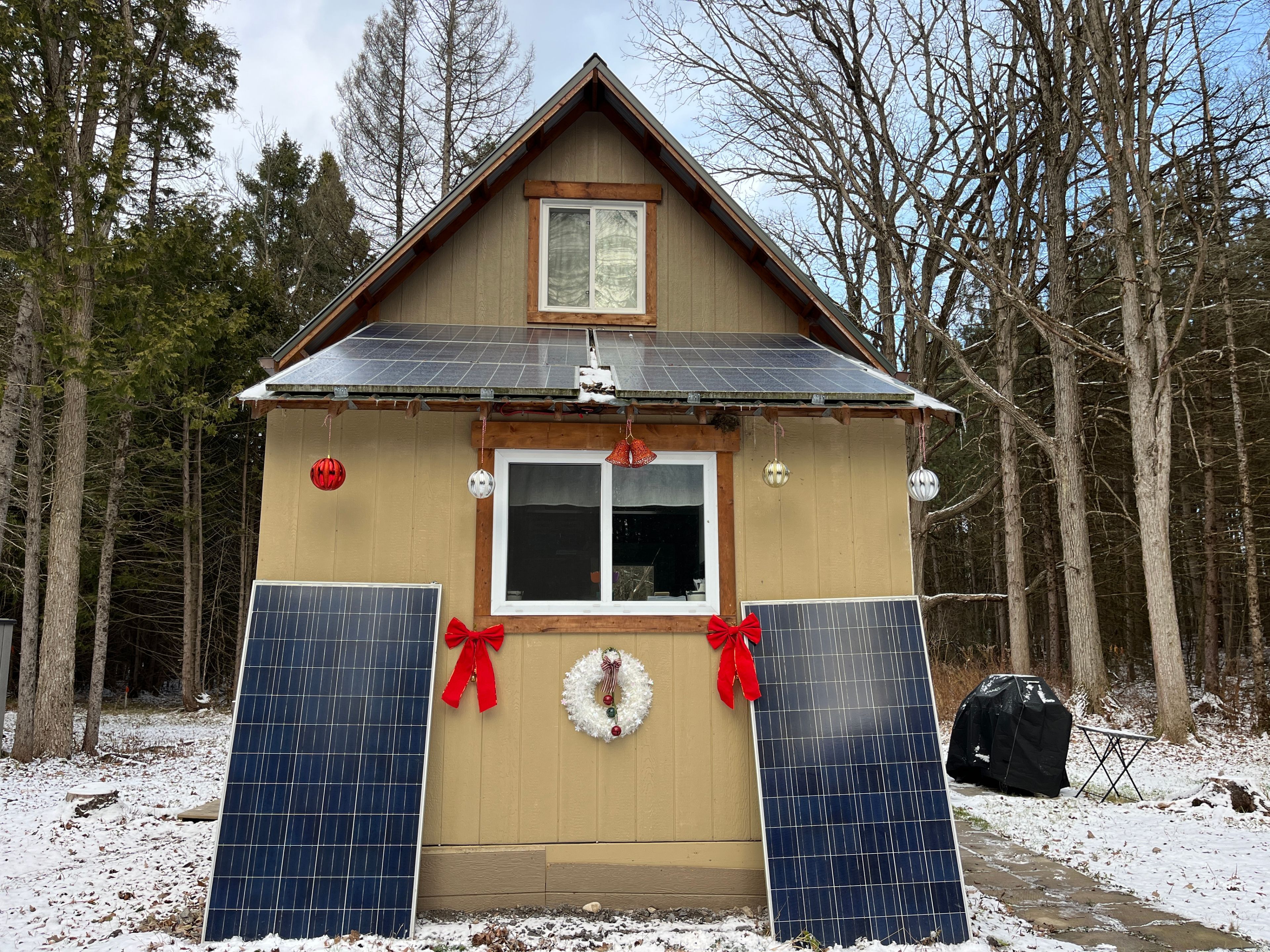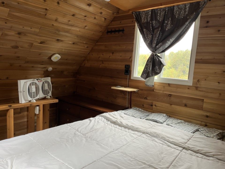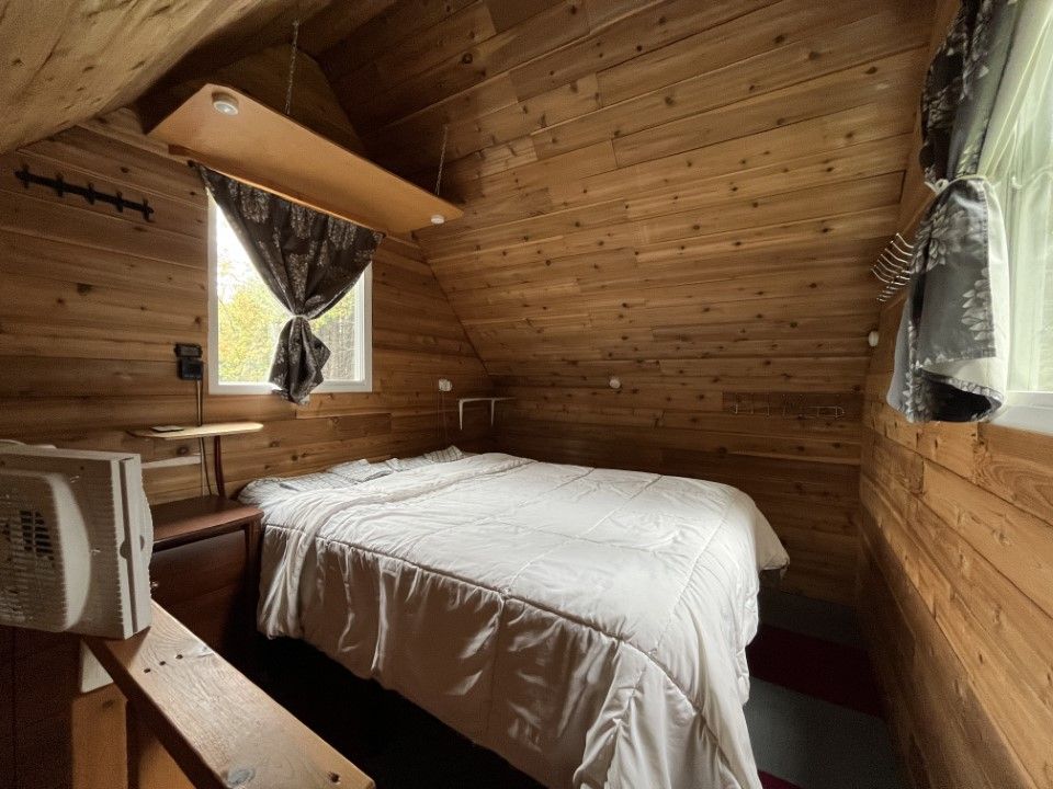 • Cozy cabin with solar power, gas stove, and on-demand hot shower.