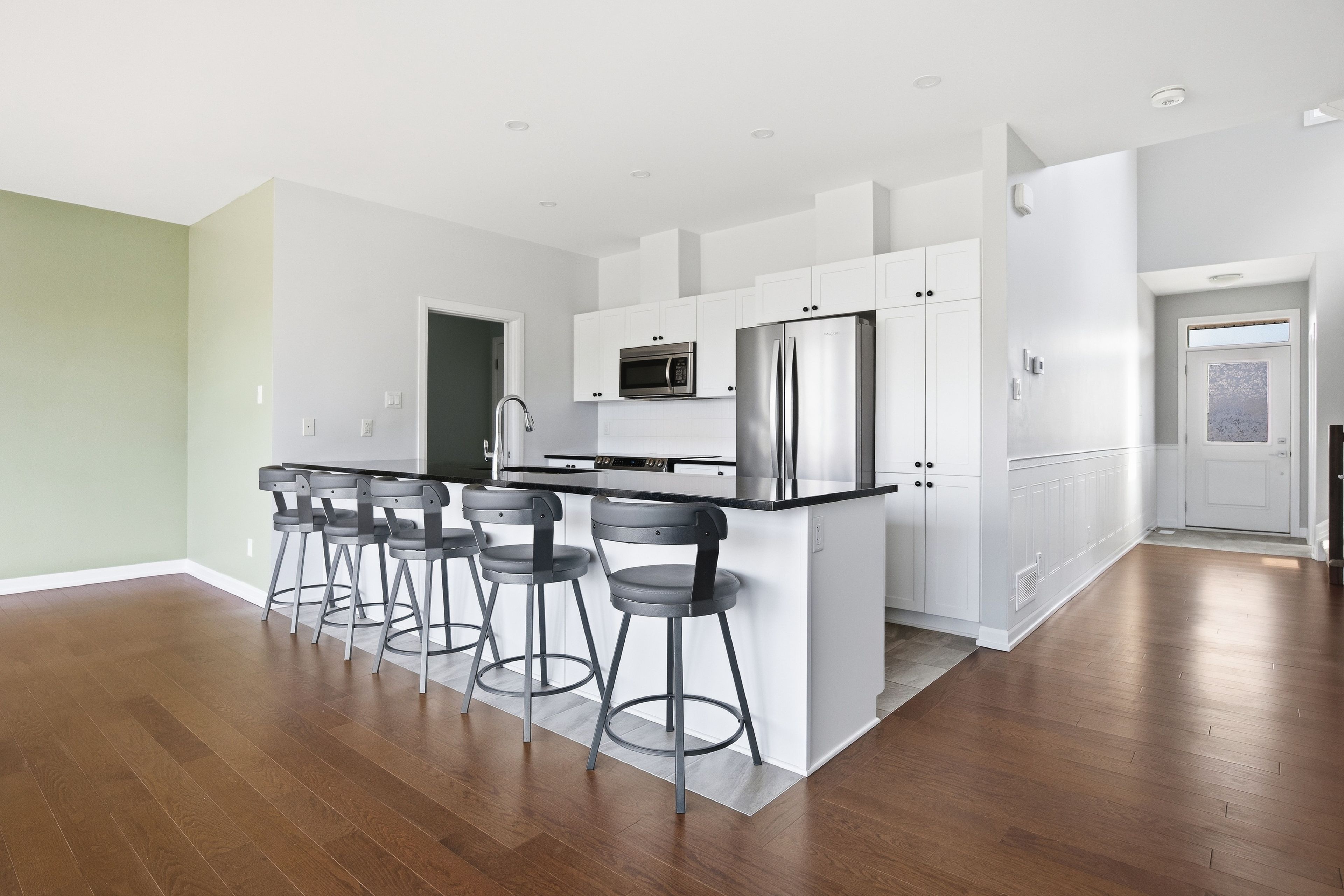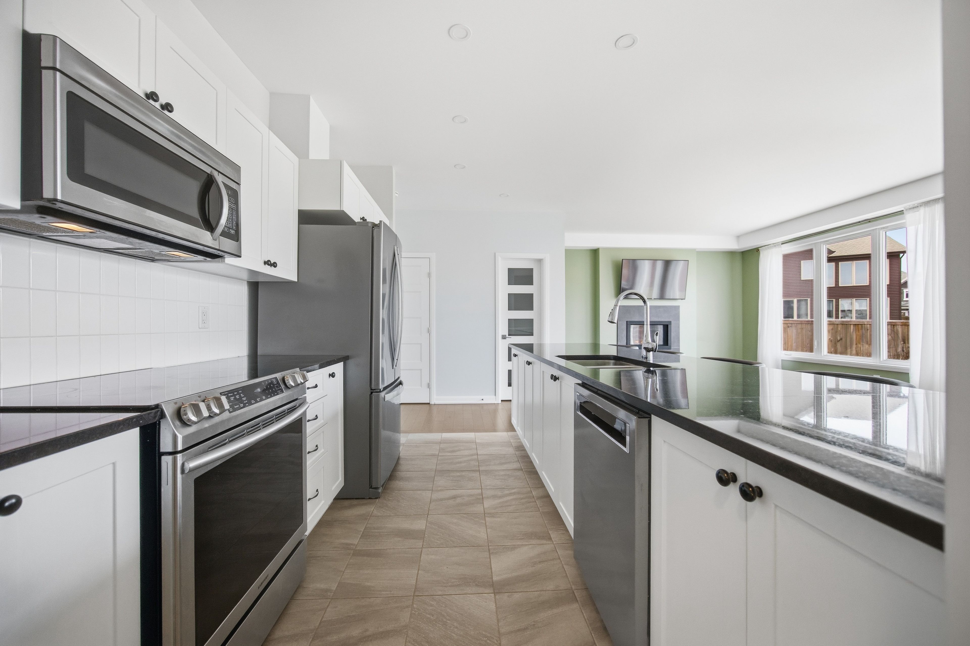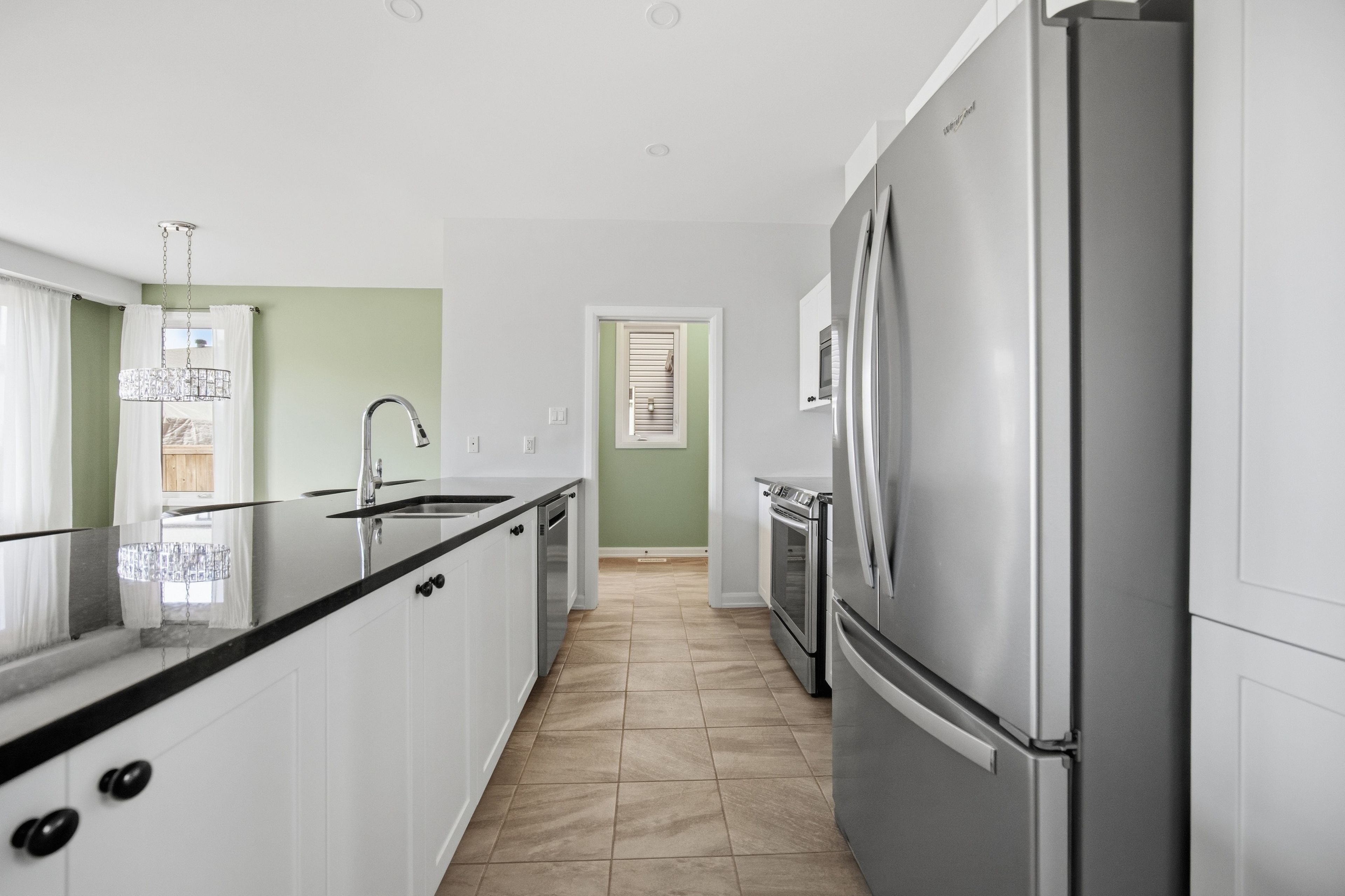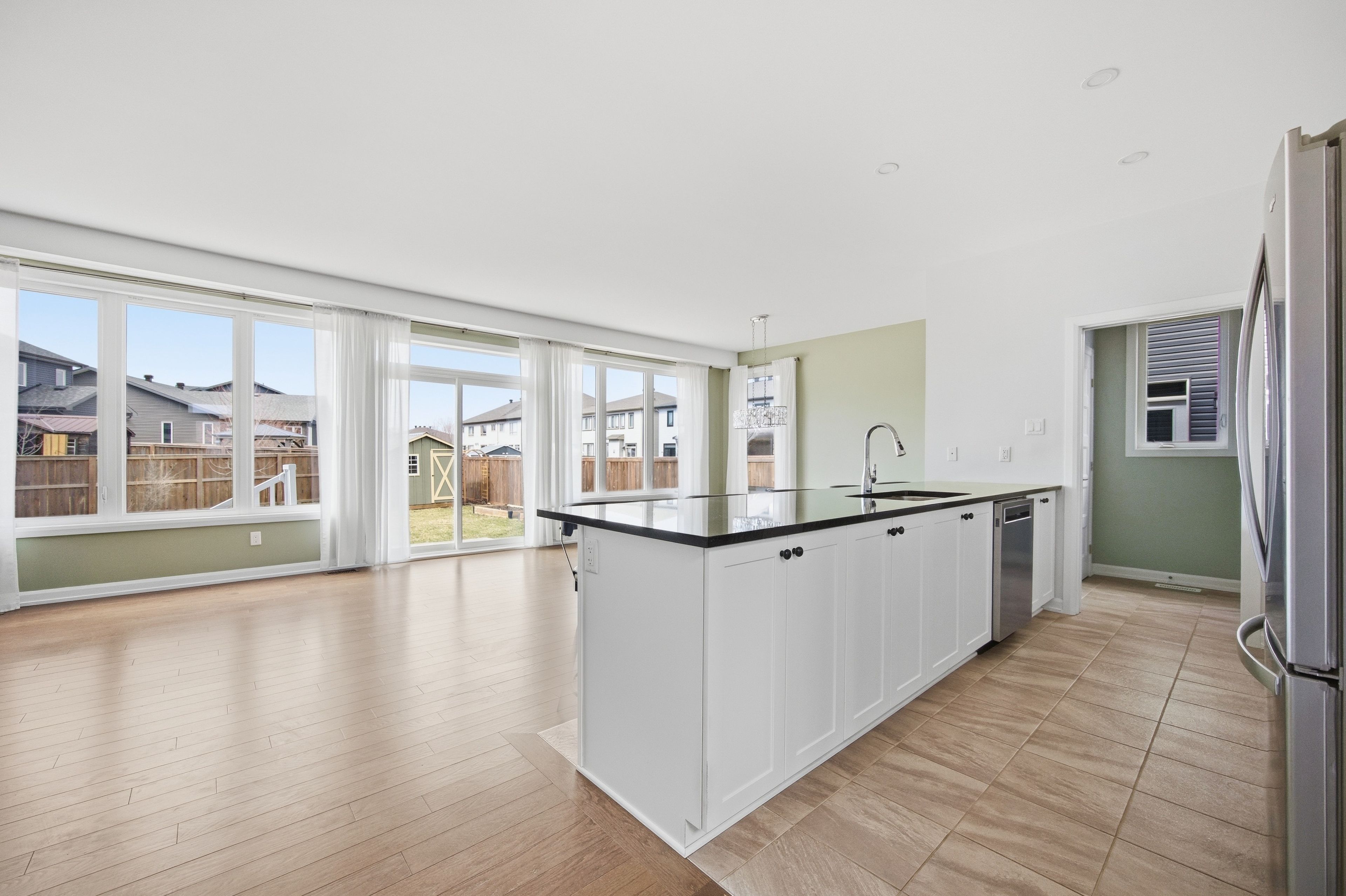 • Open-concept kitchen with generous island and walk-in pantry.