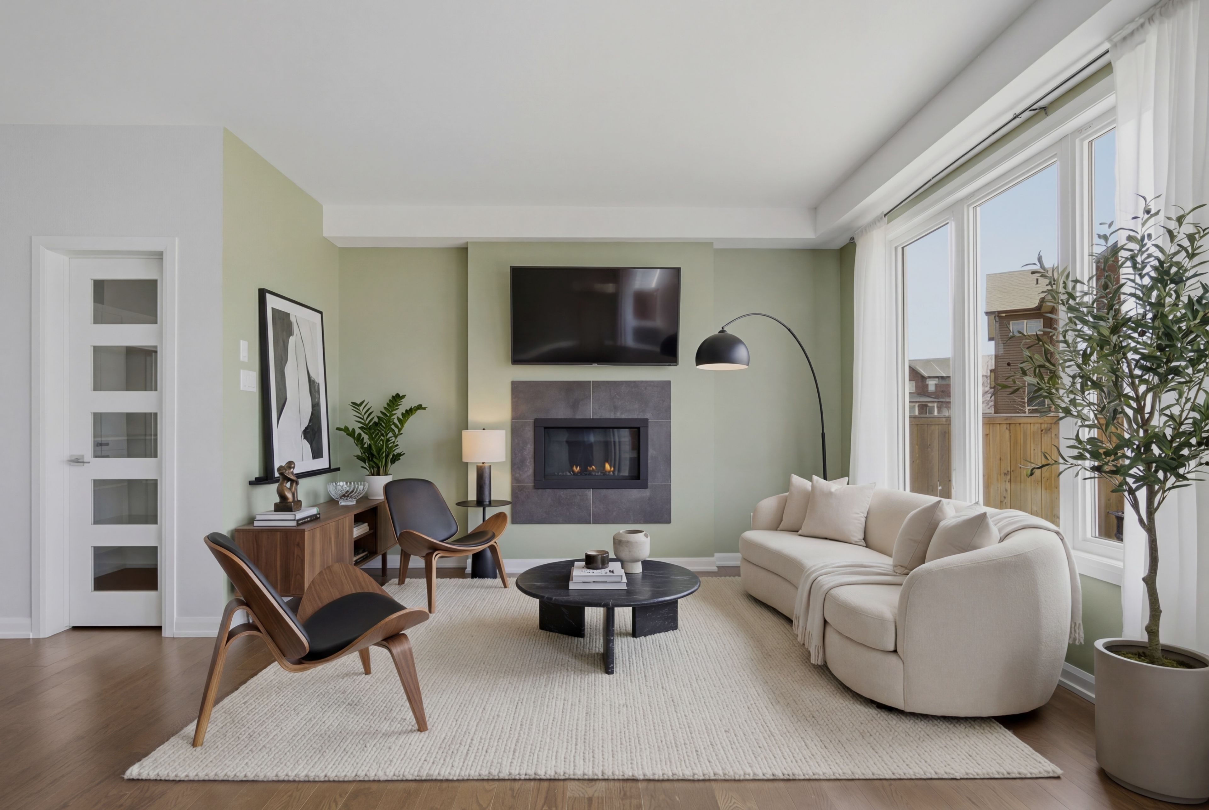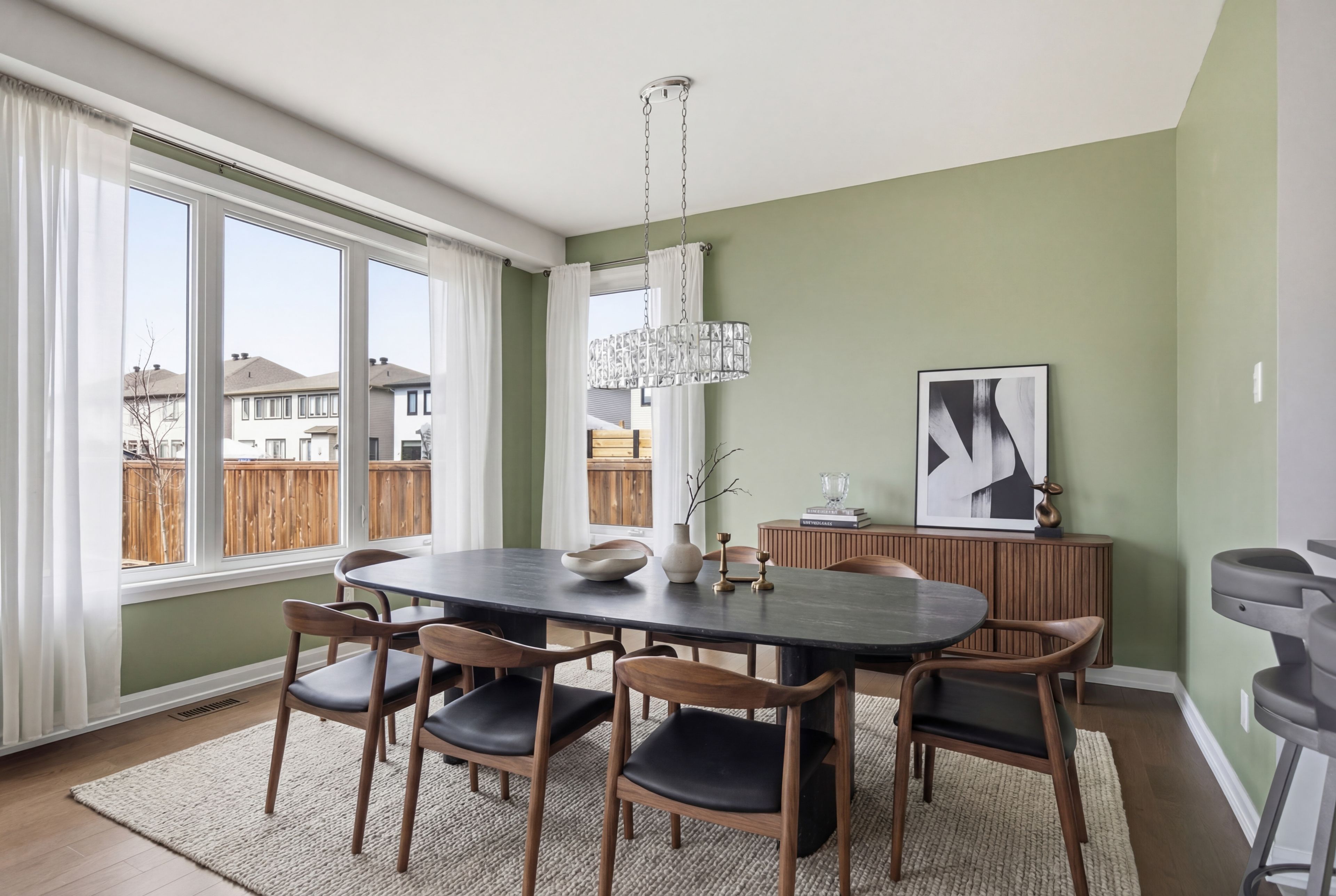 • Soaring ceilings and expansive windows fill the home with natural light.