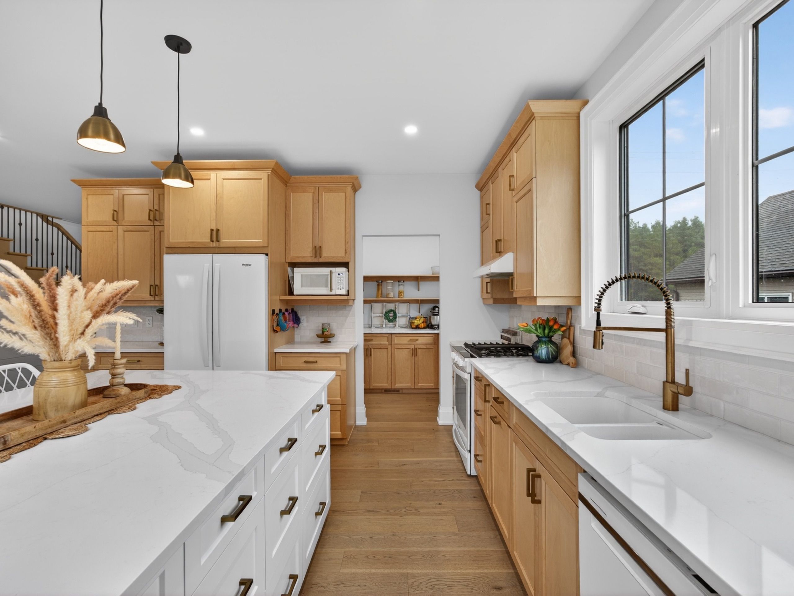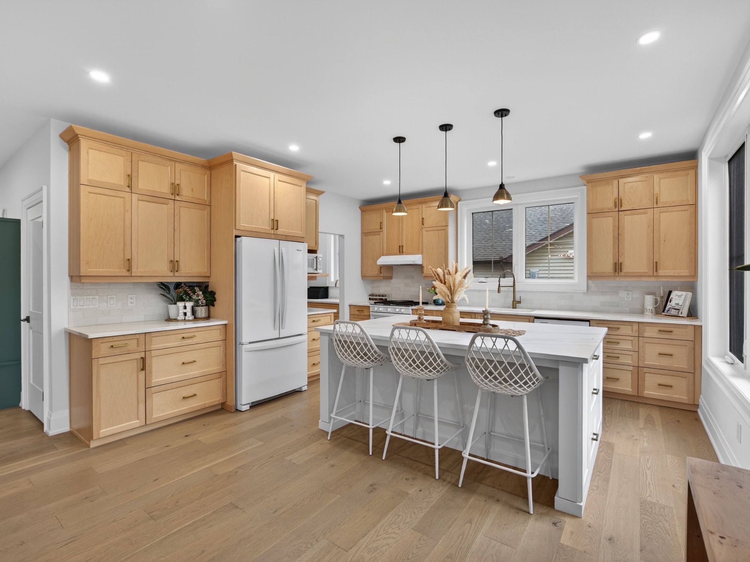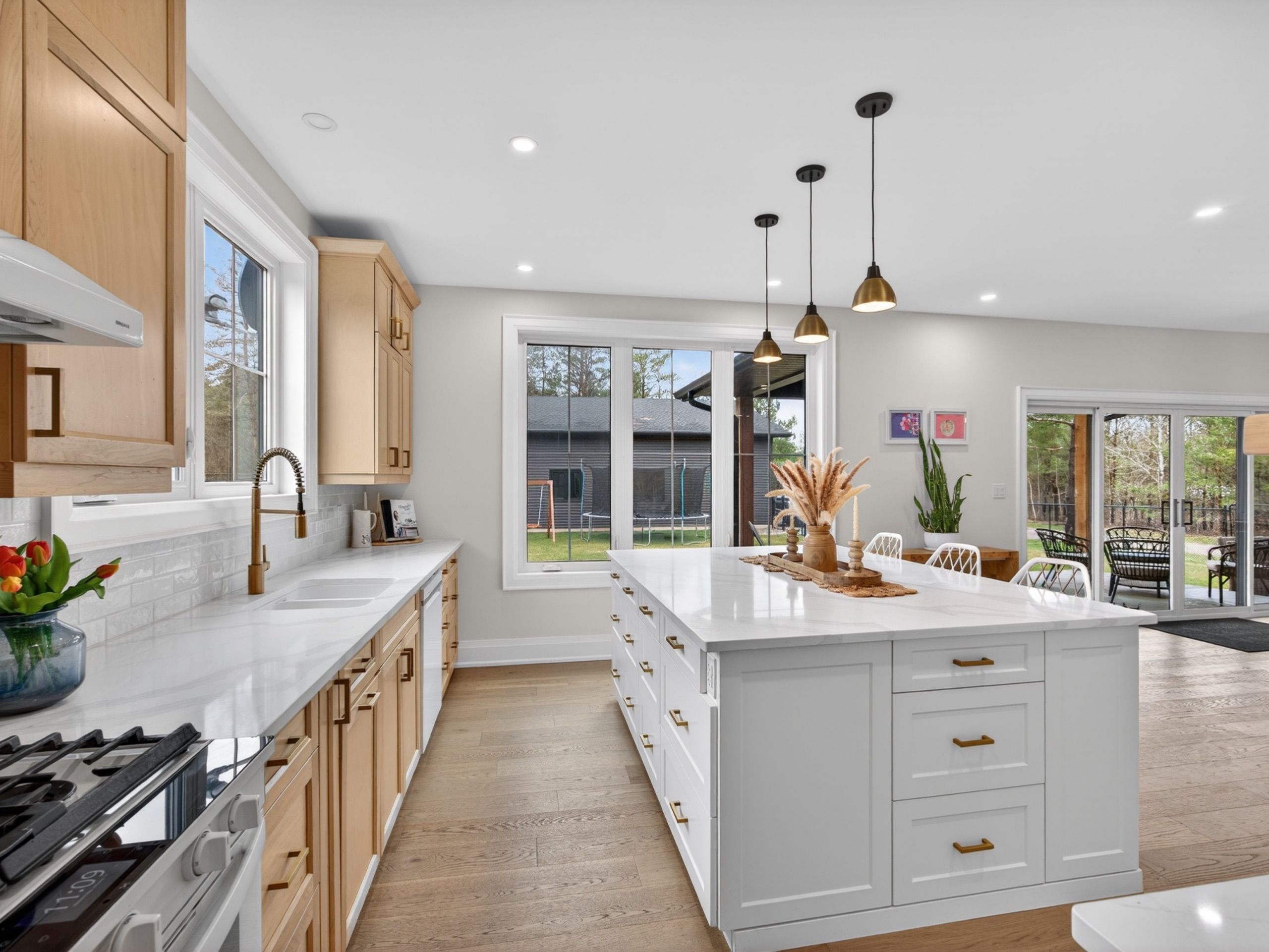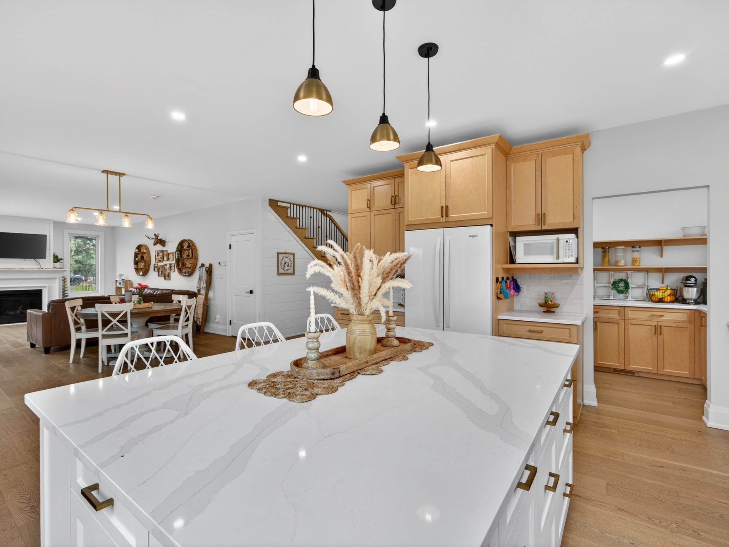 • Bright open layout with a large island for gatherings and meals.