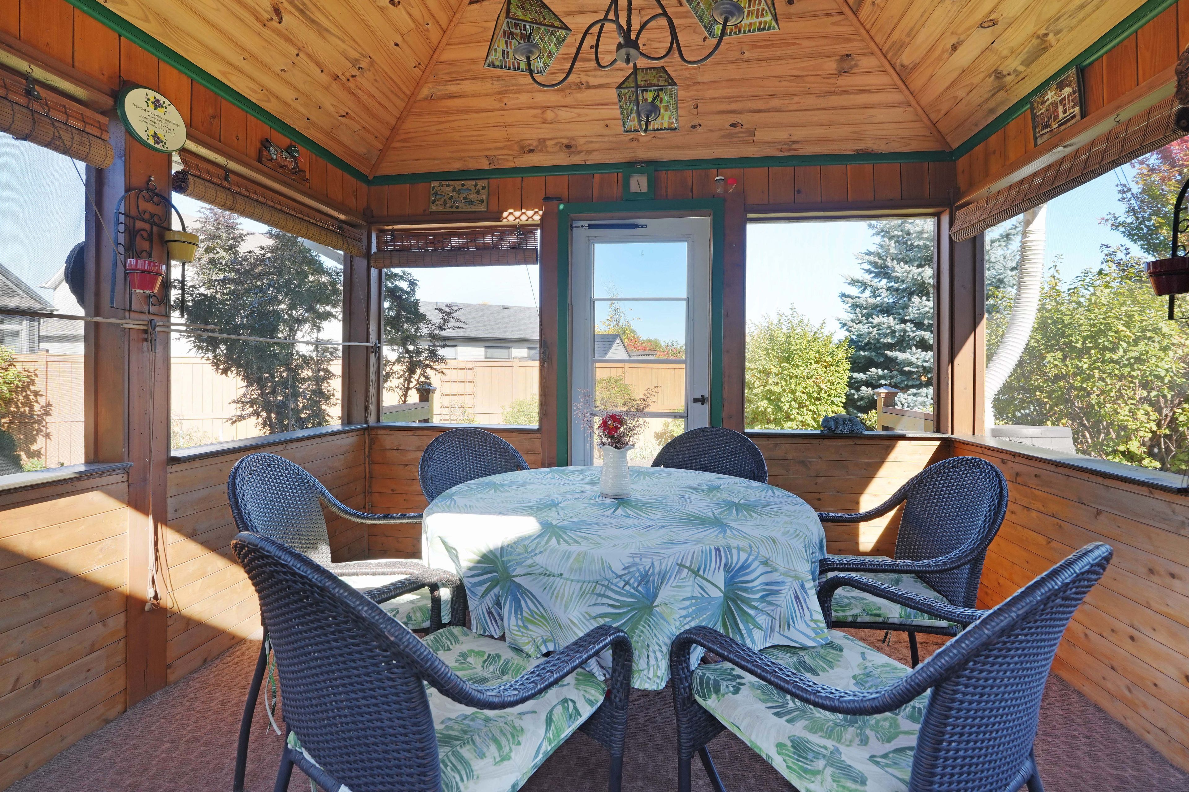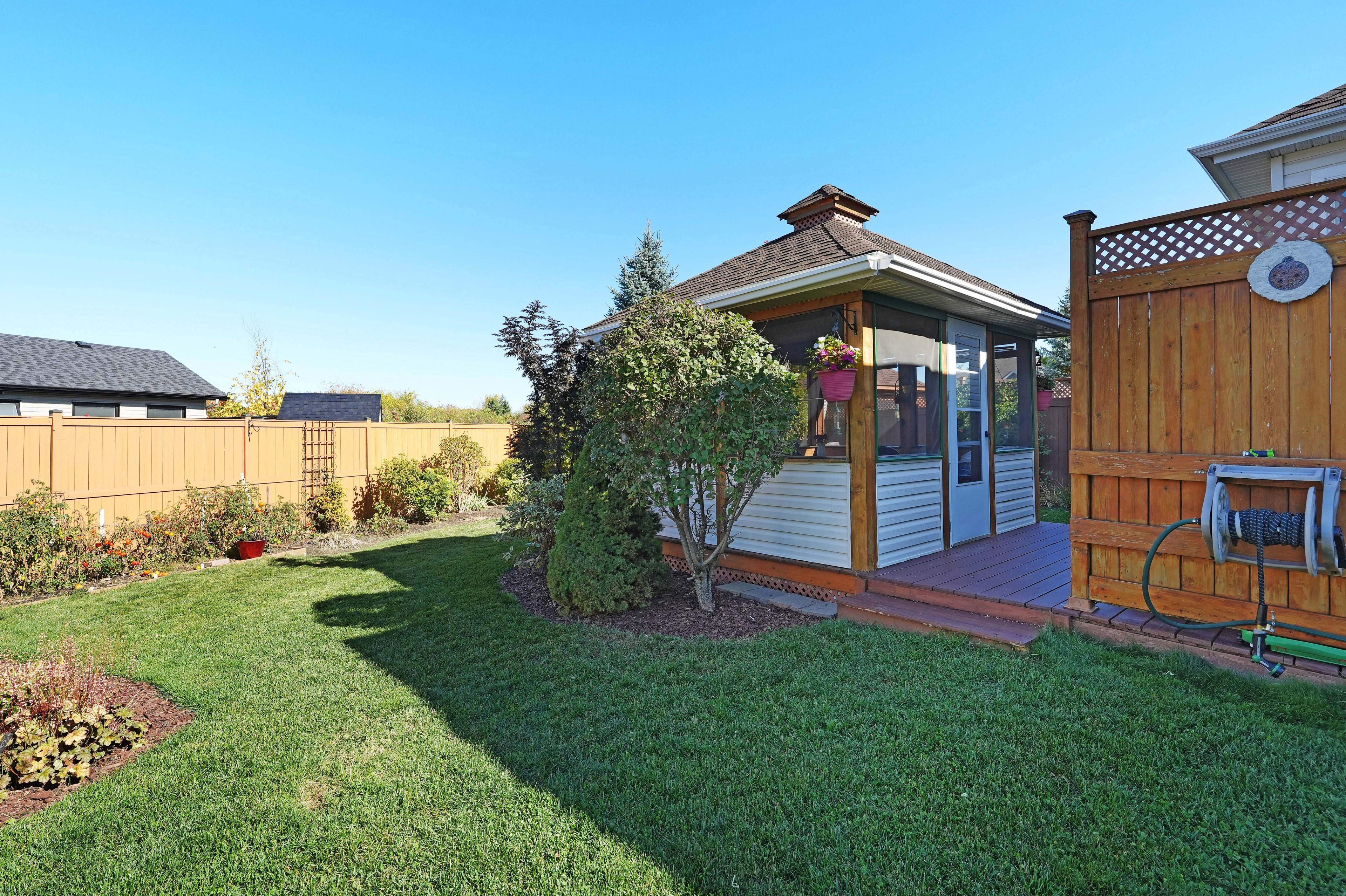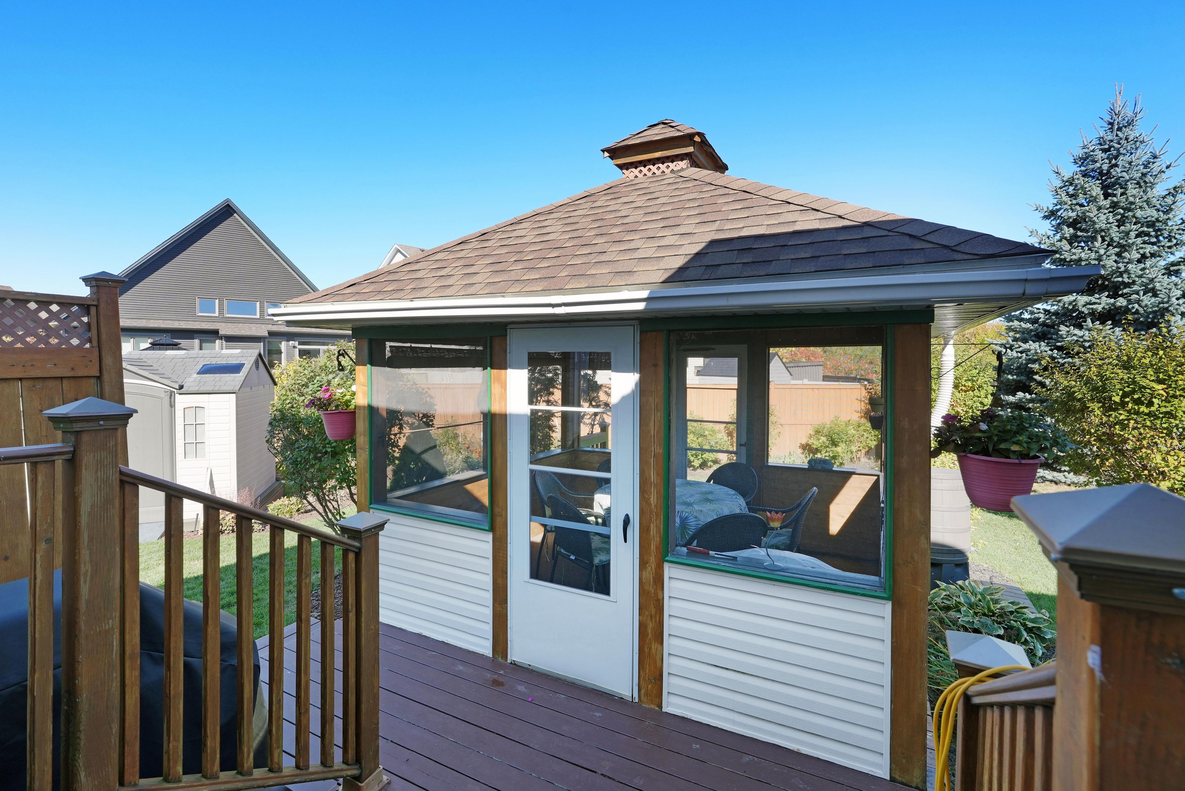 • Charming gazebo in the yard for bug-free outdoor relaxation.