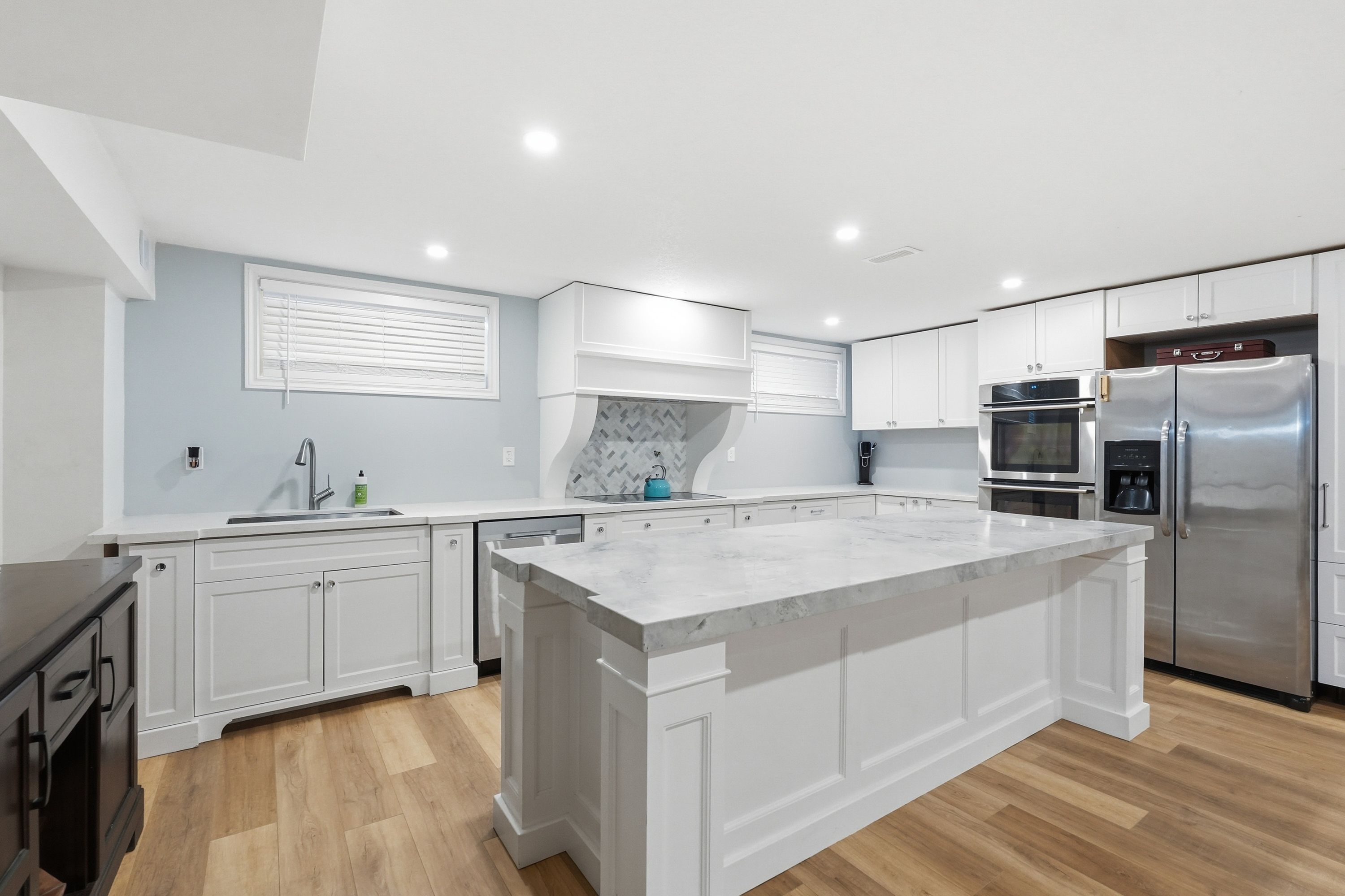 • Fully finished basement ideal for guests, with a second kitchen and extra bedroom.