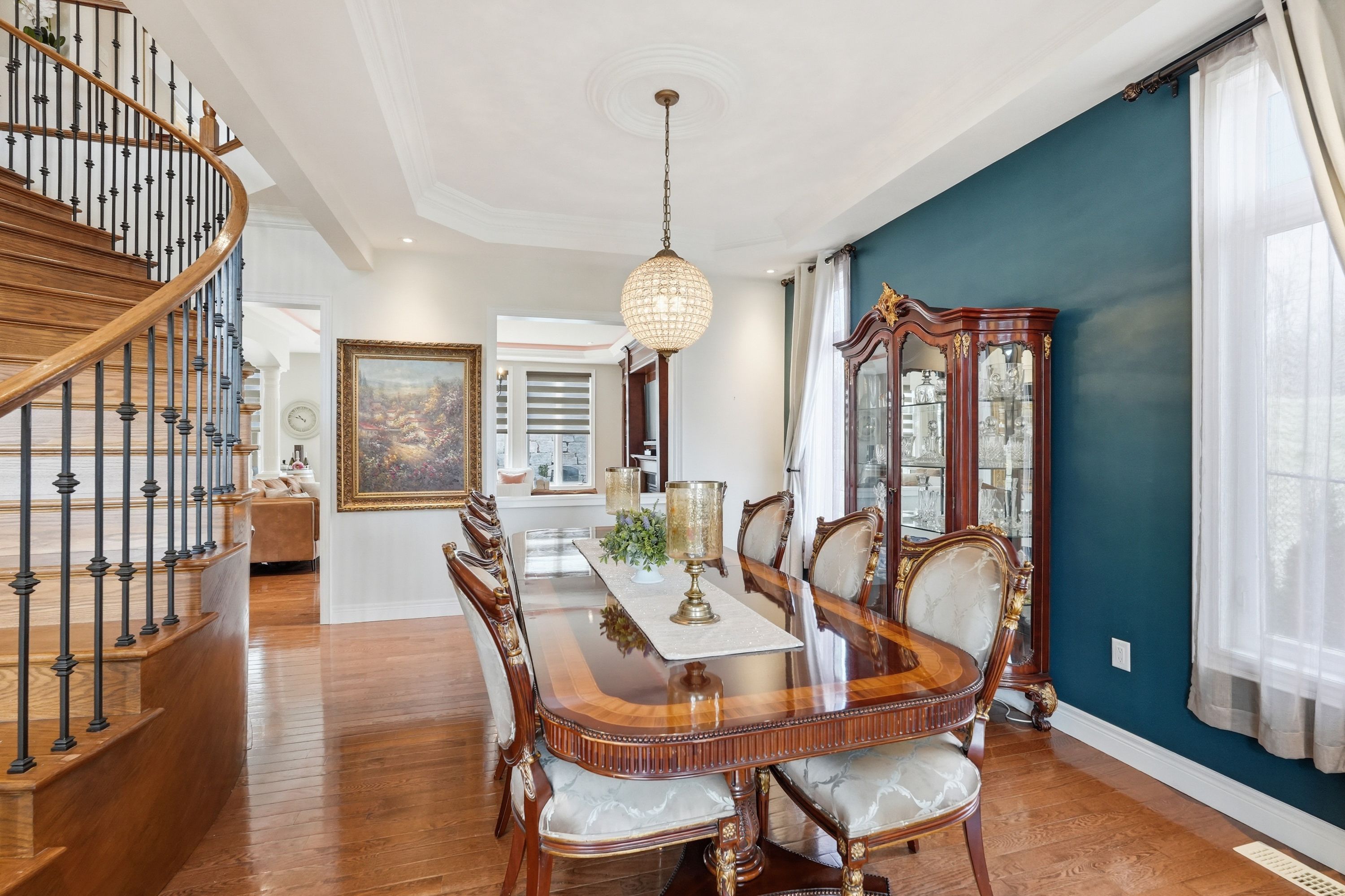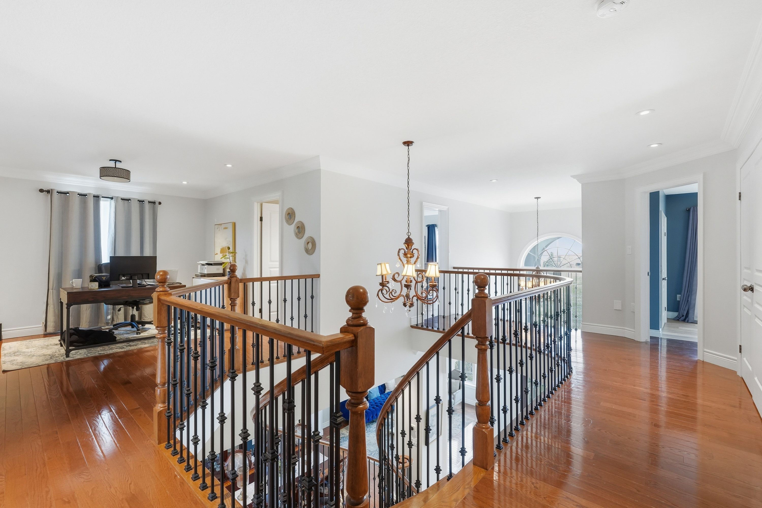 Welcome to 240 cloverleaf drive in ancaster, a custom-built executive model home in one of the meadowlands' most prestigious streets. The home boasts 3,524 sq ft above grade and a fully finished 1,630 sq ft basement. Sitting on a premium conservation lot with no rear or side neighbours, it offers an unmatched privacy and a serene setting where local wildlife can be enjoyed. A 20-foot grand entrance and spiral staircase with wrought iron spindles welcome you. Travelling through the rest of the home you will enjoy 10-foot ceilings, oversized windows, and an open-concept layout featuring formal living, dining, and family rooms. Throughout the house you will also find coffered ceilings, enhanced by custom millwork, built-ins, and high-end cabinetry. The chef-inspired kitchen boasts granite countertops, stainless steel appliances, and an oversized island. The home offers 4+1 bedrooms and 5 bathrooms, including a primary retreat with his-and-hers sinks, a large glass shower, and double jacuzzi tub. The finished basement features a second kitchen (2024), family room, additional bedroom, and 3-piece bathroom, ideal for extended family or guests. Step outside to a resort-style backyard with a heated saltwater pool (17 x 30 ft, 5 ft deep, 2021), hot tub (2021), dining and lounging areas, cabana-style pool house with bathroom (2022), shed (2022), stamped concrete and landscaping (2023), geo-grid retaining wall (2023), and a new sliding door (2023), all set against a tranquil natural backdrop. Additional upgrades include updated bedroom flooring (2024), main floor pot lights (2024), 200 amp service, carpet-free interiors with hardwood, tile, and luxury vinyl plank, and custom crown moulding. Move-in ready, this home combines elegance, modern upgrades, and exceptional craftsmanship in one of ancaster's most coveted neighbourhoods.