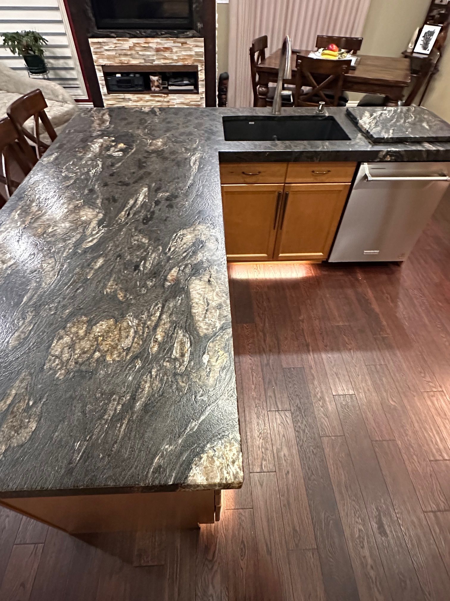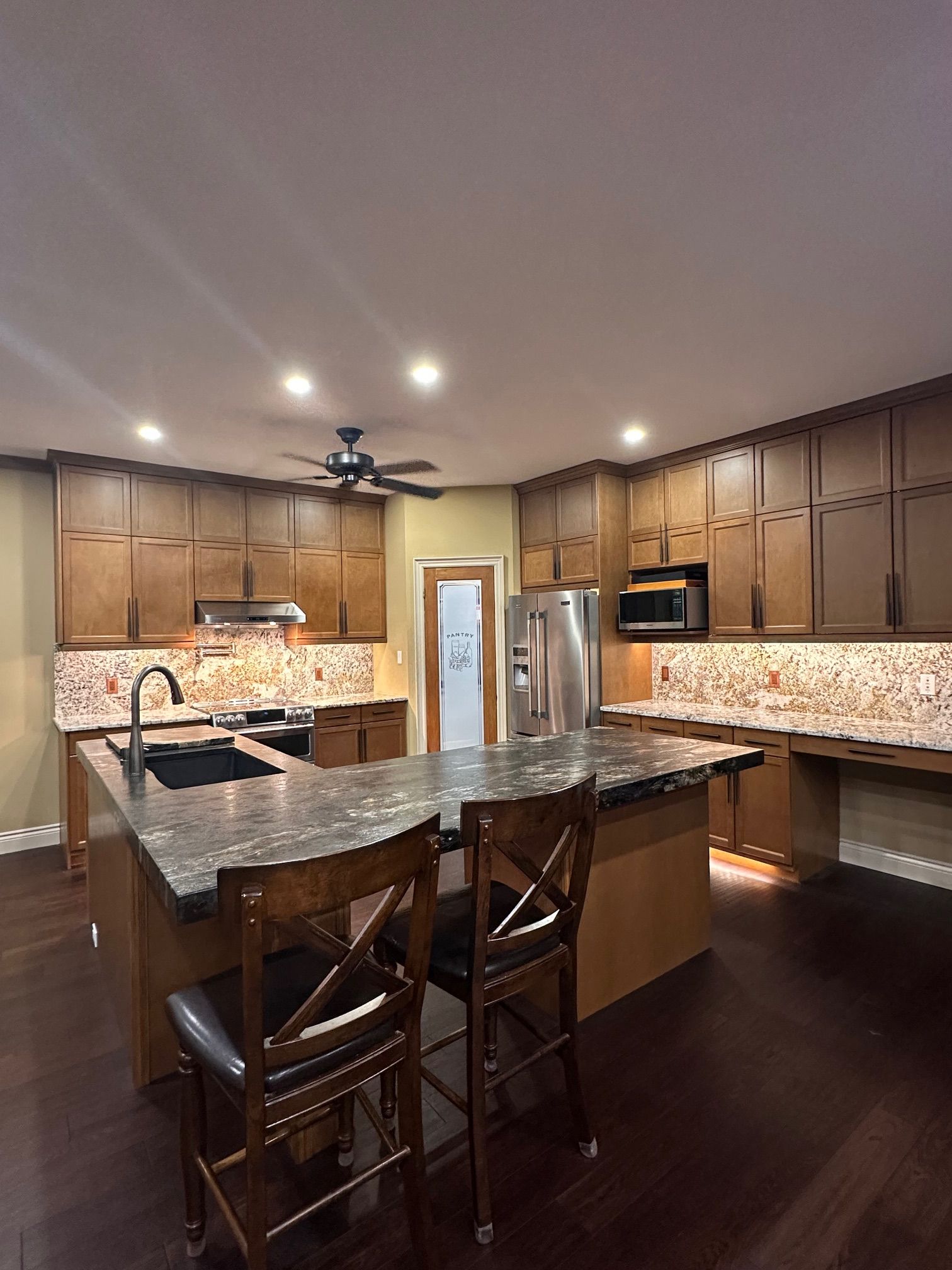 • Stunning kitchen with oversized island, granite countertops, and walk-in pantry.