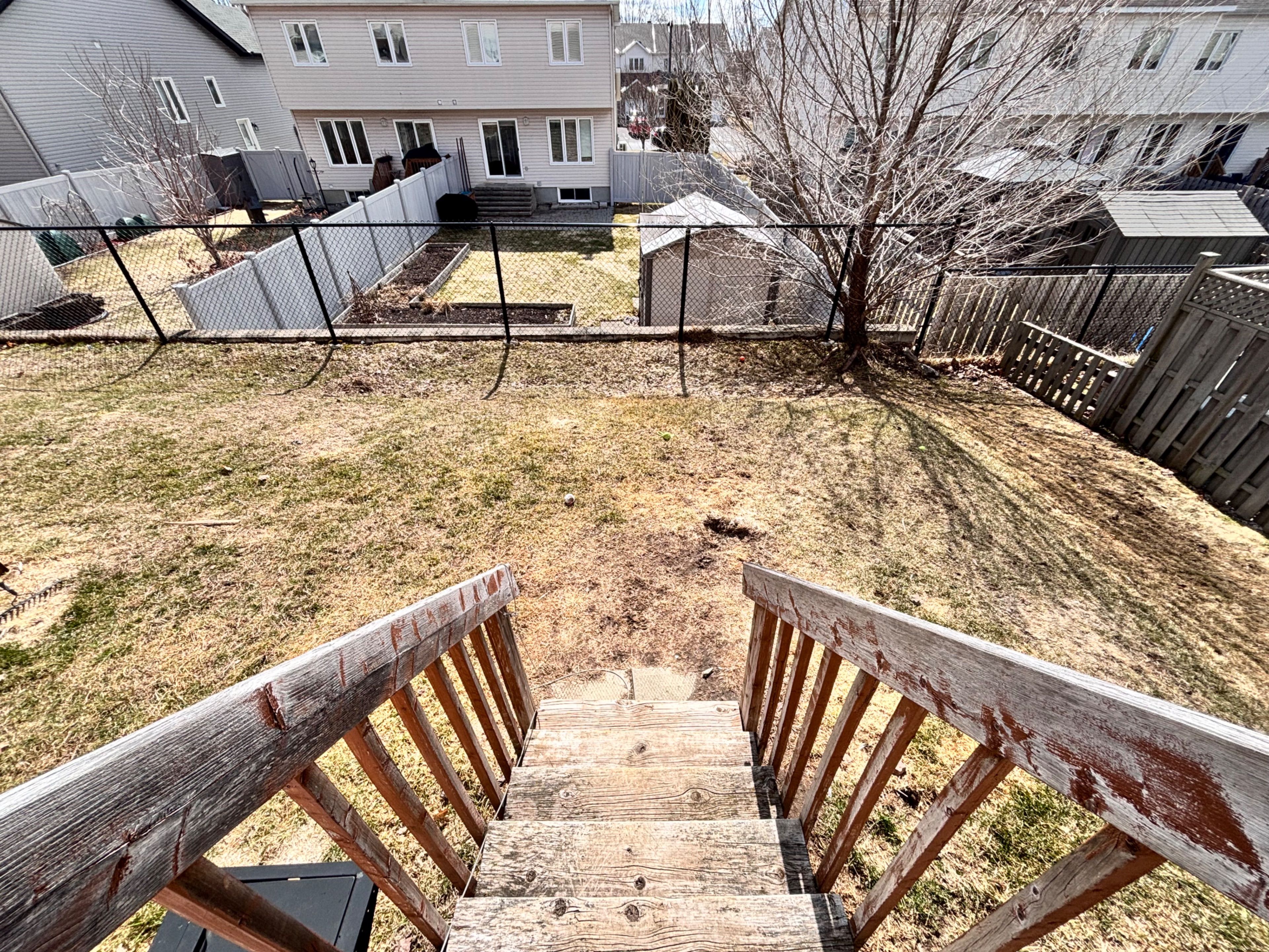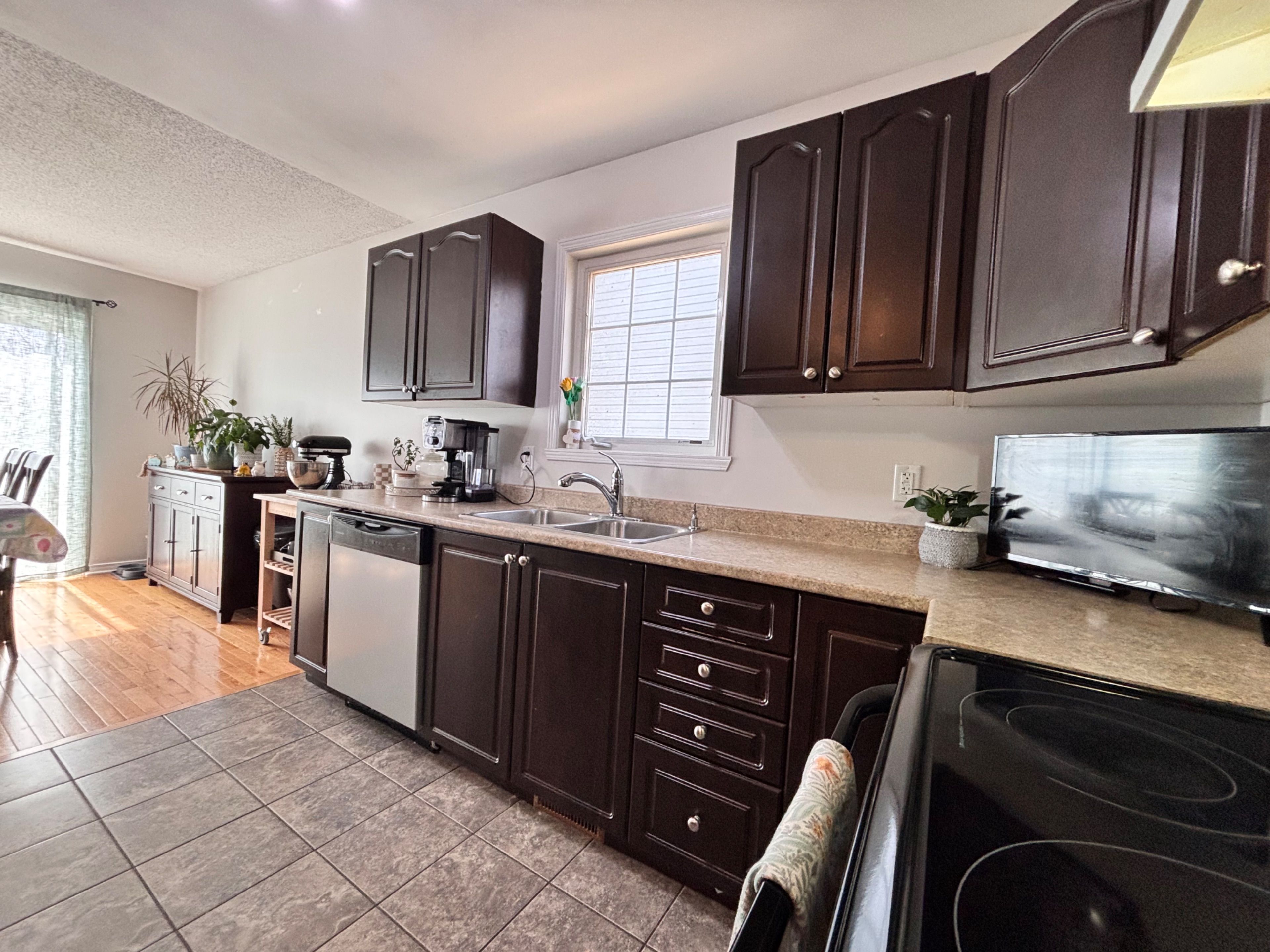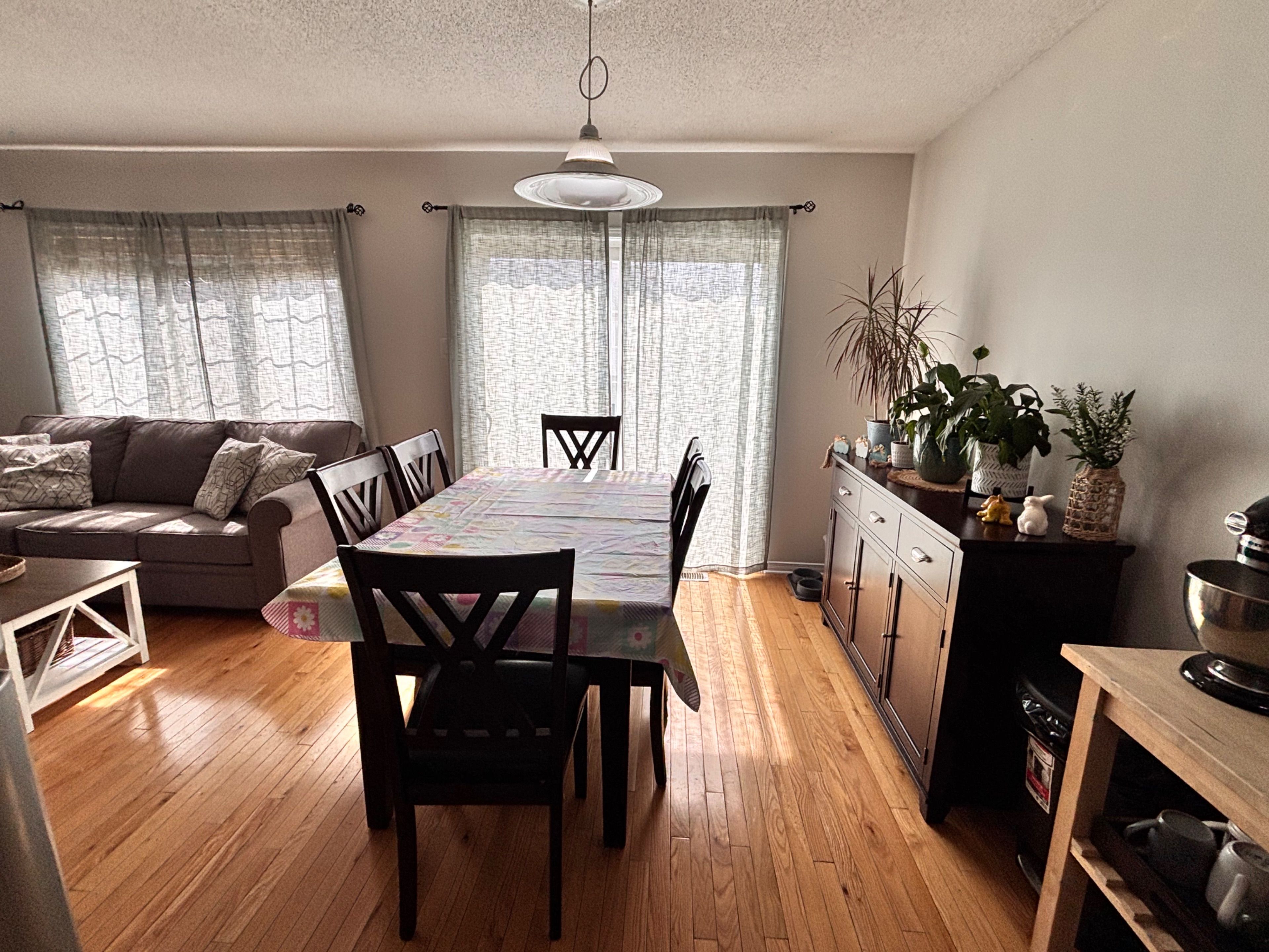 This welcoming end-unit townhouse is a wonderful fit for families, offering plenty of space and a warm, comfortable layout. The bright foyer with a roomy closet and handy powder room plus convenient access to the garage. With hardwood floors throughout the main and second levels, ceramic tile in high-traffic areas, and a location close to schools, parks, and shopping, this home is designed to make everyday family life easier and more enjoyable. Step into a functional kitchen with lots of cupboard space, perfect for busy mornings and family meals. The open-concept living and dining area features hardwood floors and patio doors that open to a partially fenced backyard, giving kids room to play and adults space to relax. Upstairs, you'll find three generous bedrooms, including a primary bedroom with a walk-in closet and convenient cheater access to a large family-friendly bathroom with a separate tub and shower. The fully finished basement adds even more room for a play area, movie nights, or a cozy family hangout. Come and see today!