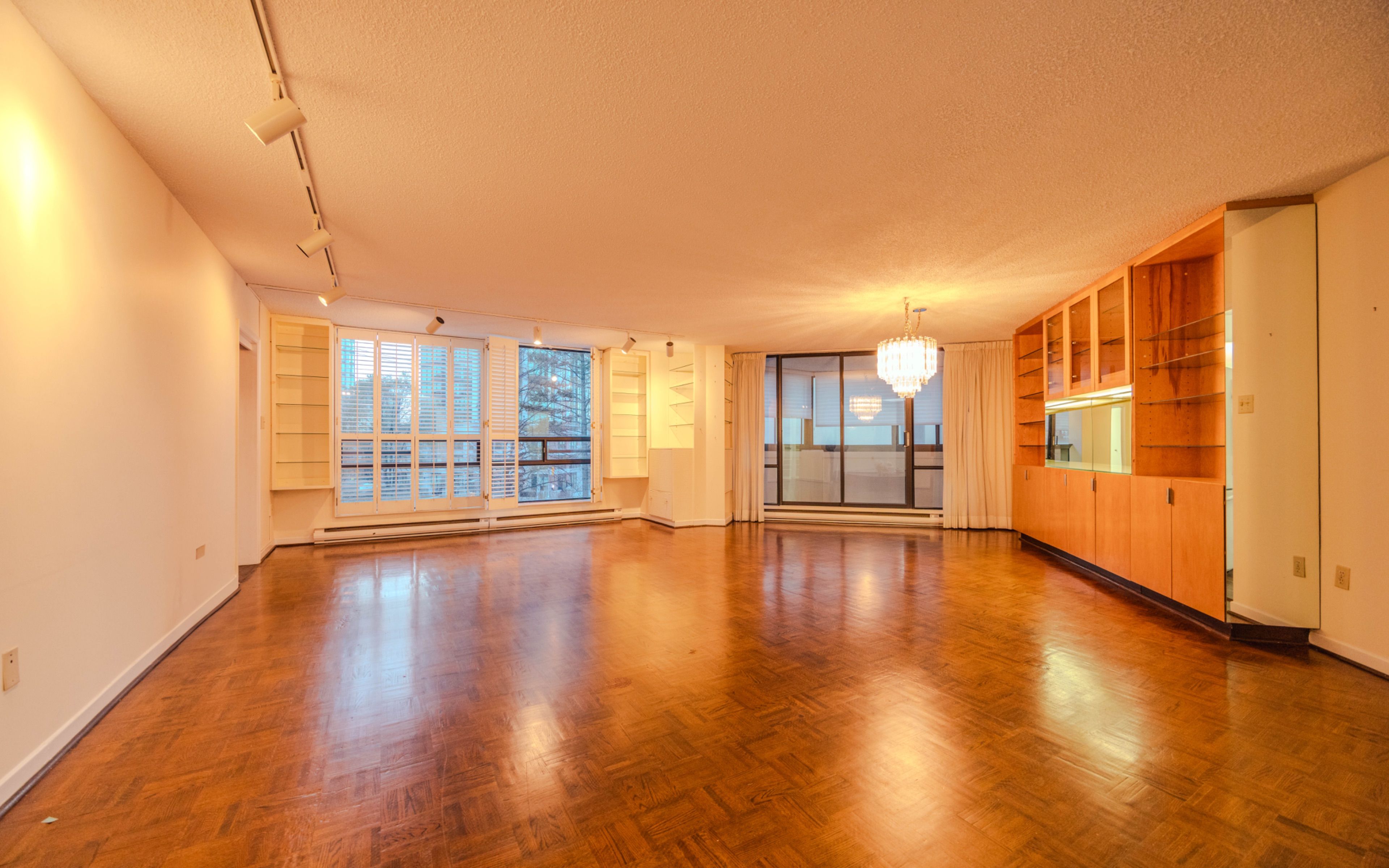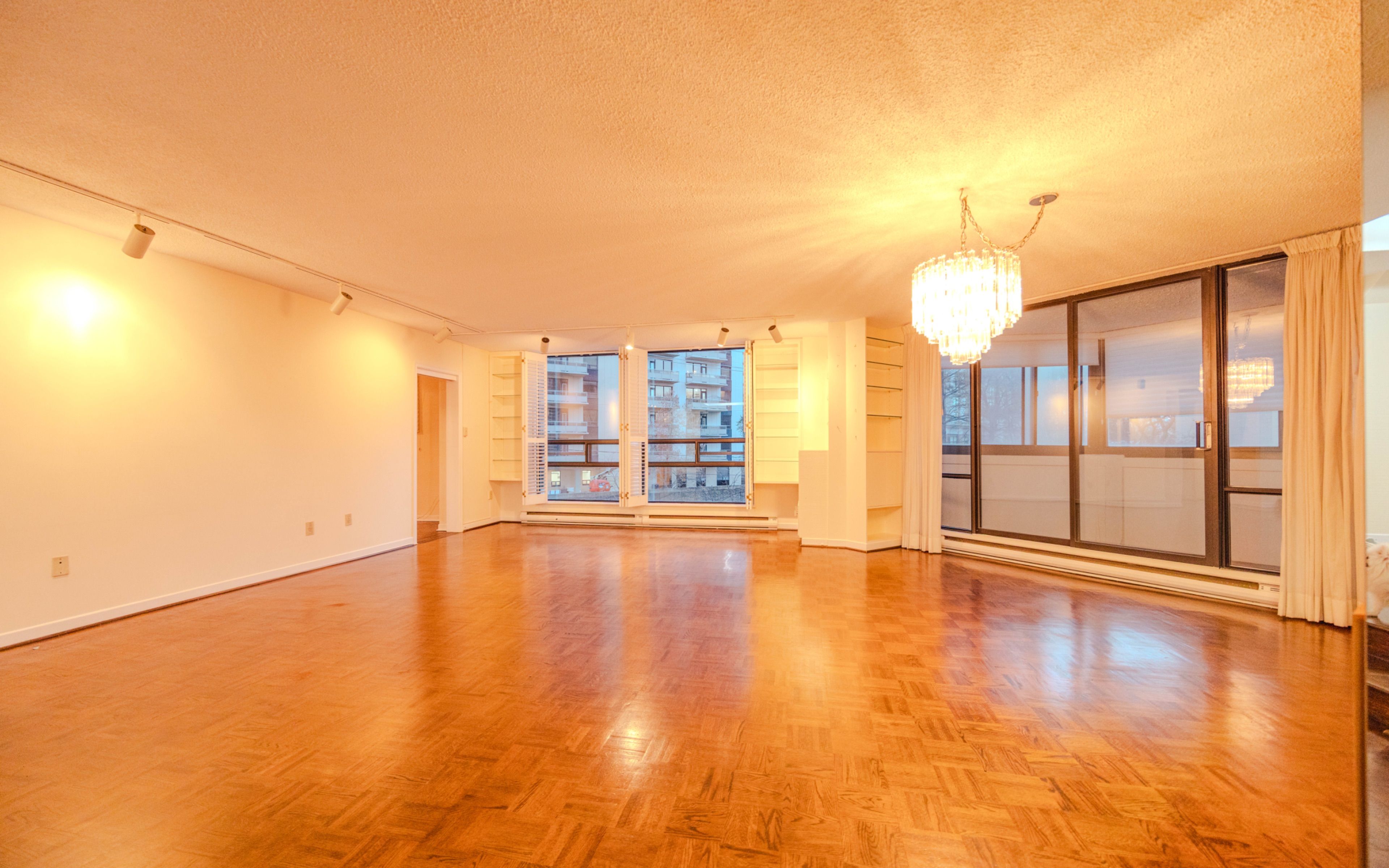 • Open-concept living area with floor-to-ceiling windows and balcony access.