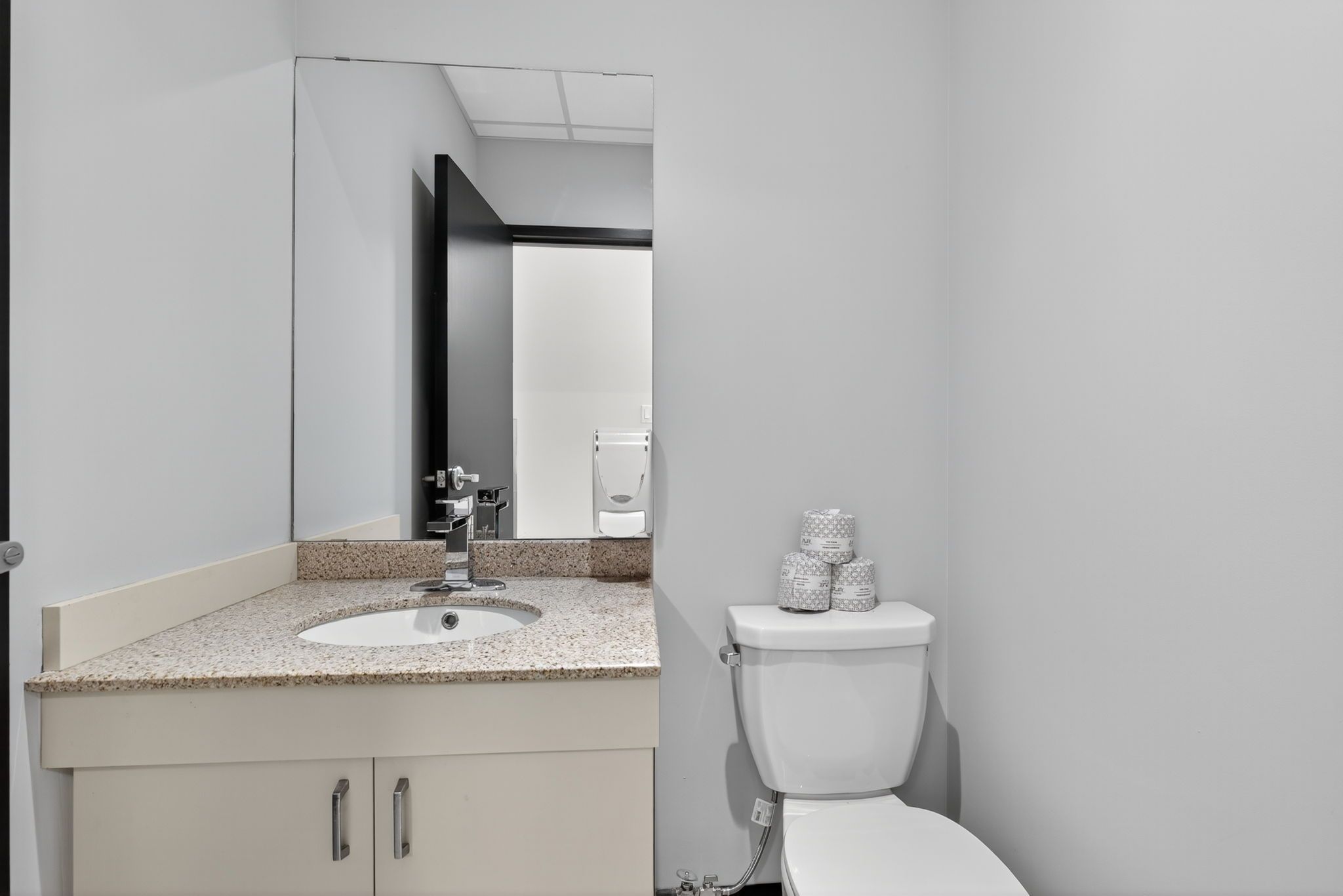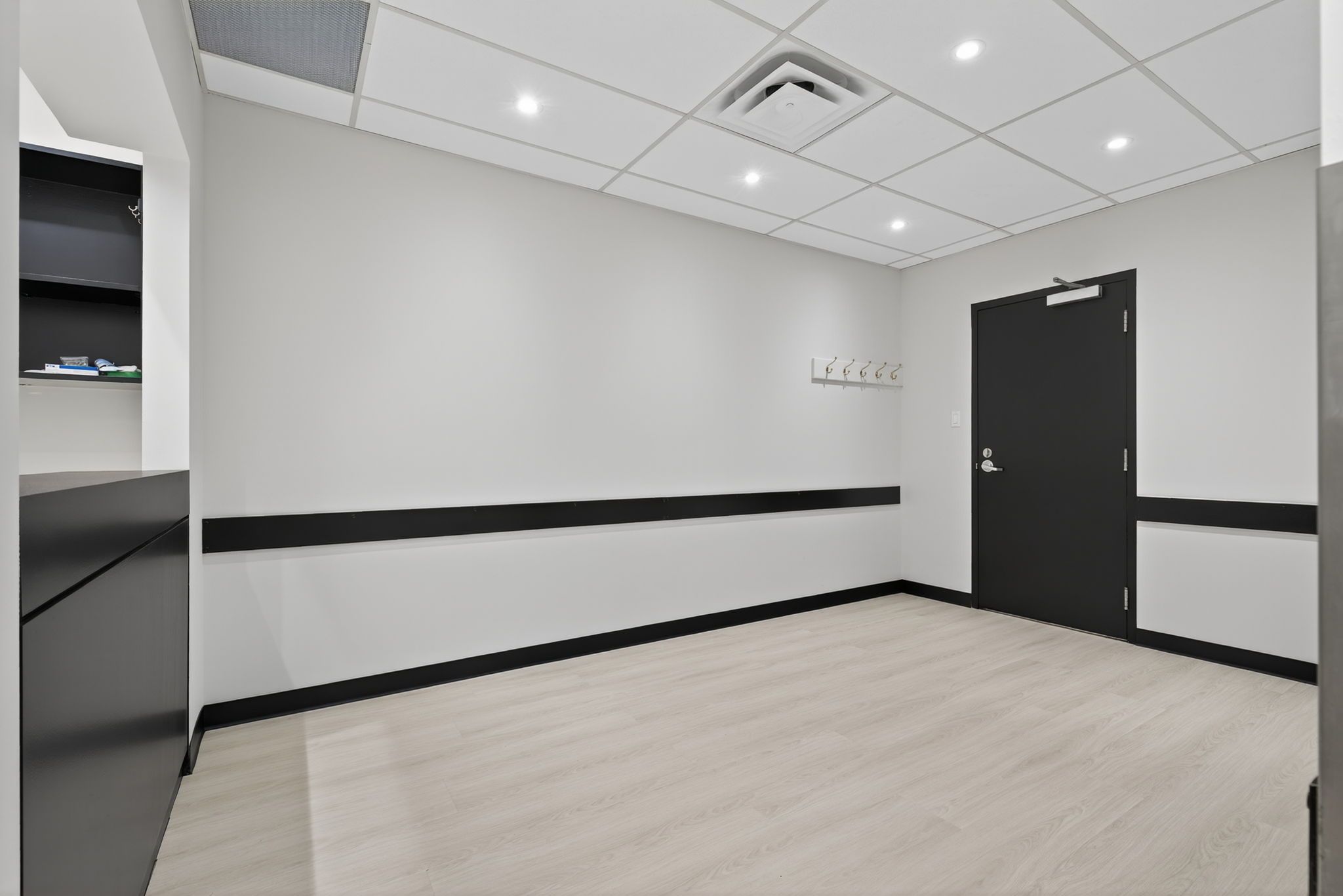 • Large lobby with elevator and public washrooms for accessibility.