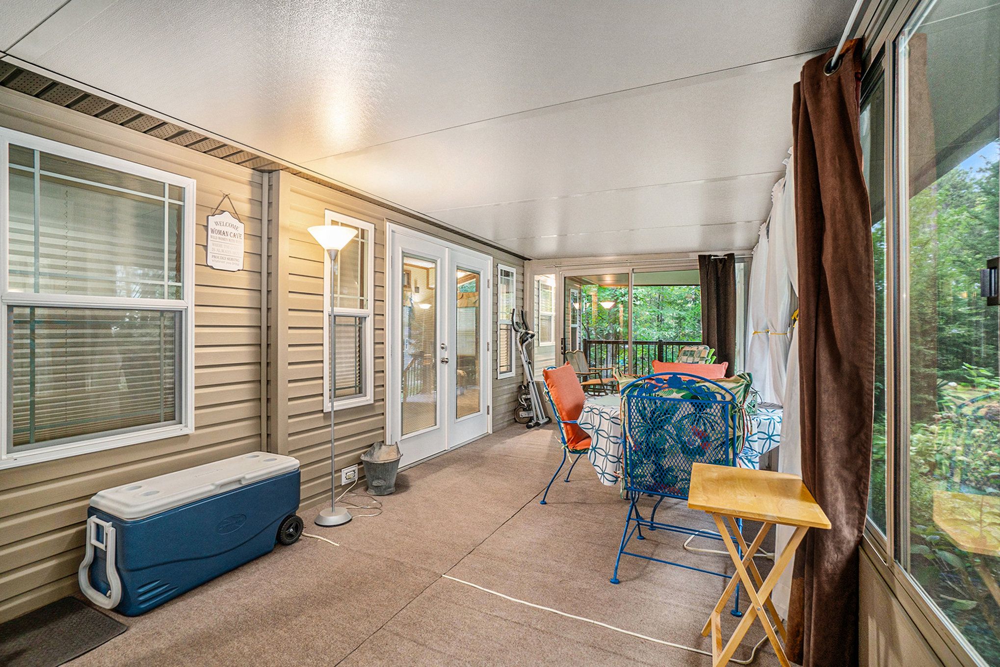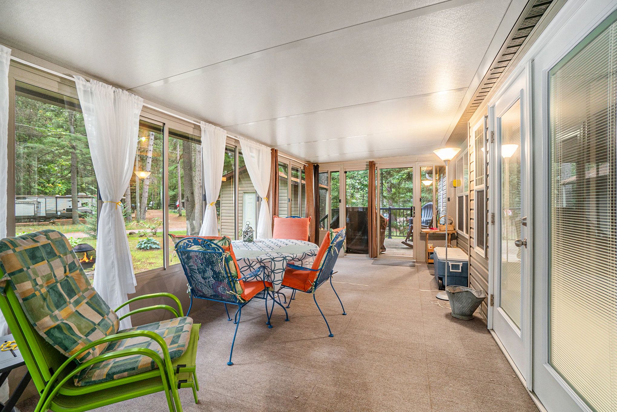 • Large sunroom provides outdoor enjoyment without the bugs.