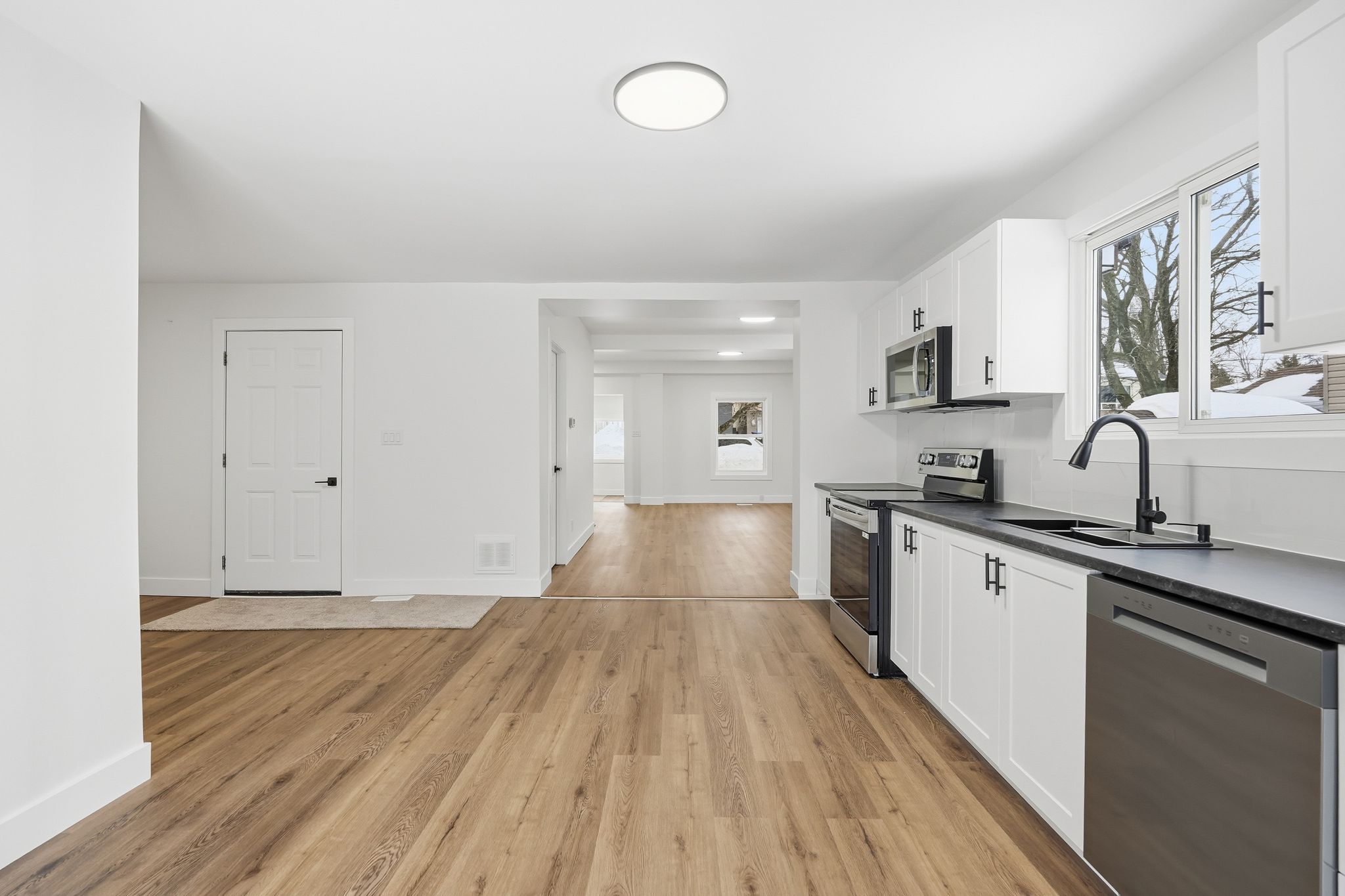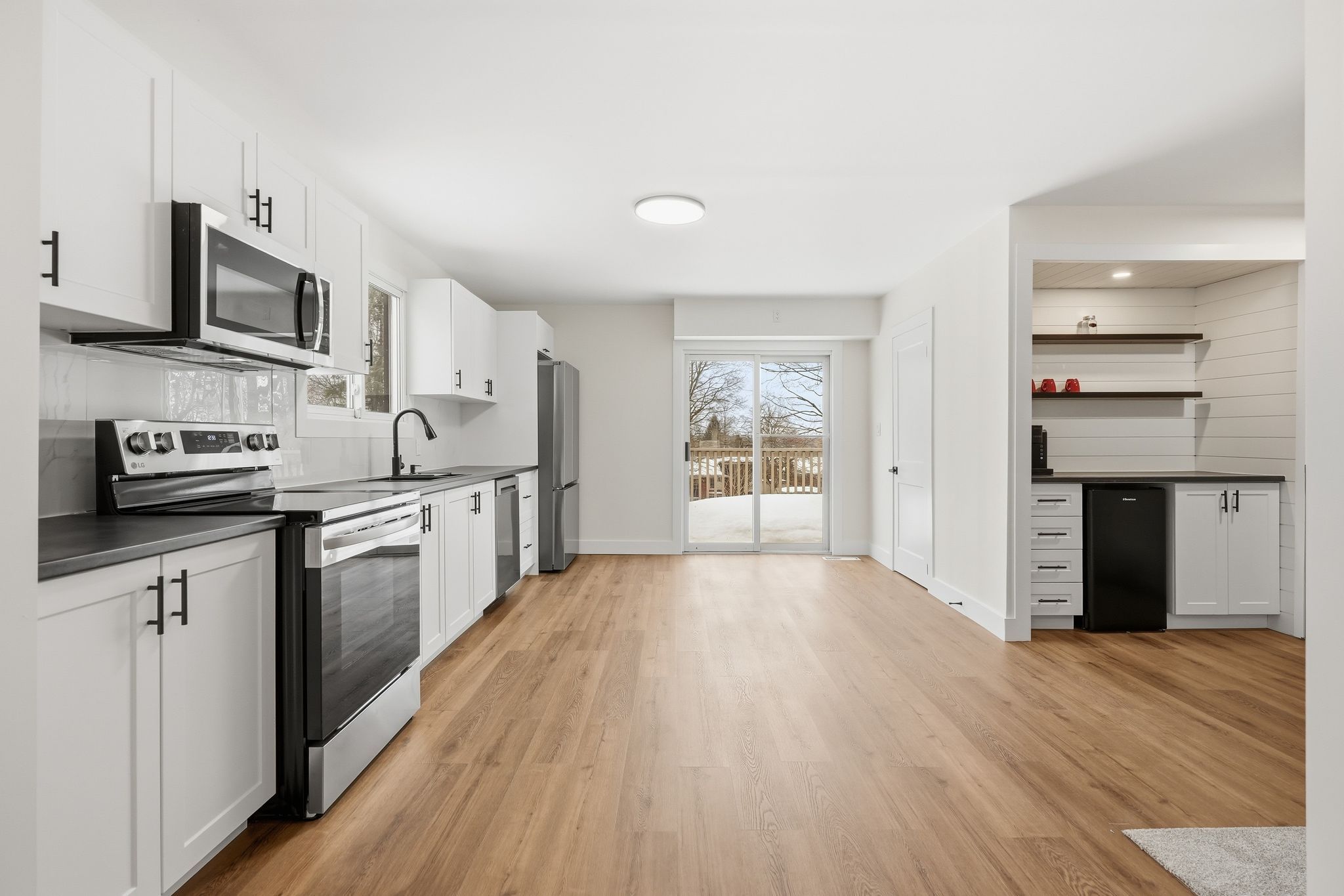 Welcome to 240 ruby street in the charming town of midland, where you'll find this beautifully renovated family home offering almost 1900 square feet of stylish, functional living space perfectly designed for real life. Step inside and immediately feel at home in the bright, open-concept main floor, where everyday living and family gatherings come together effortlessly. The spacious living and dining areas flow seamlessly into the thoughtfully designed kitchen, complete with a stylish bar featuring a built-in bar fridge - perfect for morning routines, entertaining guests, and keeping drinks close at hand. The convenient main-floor laundry room and 2-piece bath add to the home's thoughtful, family-friendly design. Just off the kitchen and down a flight of stairs, you'll find a large recreation room - an ideal space for movie nights, watching the big game, or giving teens their own hangout while still being under the same roof. Upstairs, three generously sized bedrooms and a fresh 5-piece family bathroom provide comfortable, private retreats for everyone. Outside, enjoy a large, partially fenced backyard surrounded by mature trees - a safe and peaceful space for kids to play, pets to roam, and summer gatherings with friends. The back deck is perfect for enjoying morning coffee, hosting family barbecues, or unwinding in the evening. A newly constructed shed offers storage for bikes, toys, and outdoor gear. Every inch of this home has been carefully updated, blending modern finishes with warm, welcoming character. Ideally located just steps from the trails and green space of tiffin park, and public transit only a short walk away, this home offers the perfect balance of nature, convenience, and community. Move-in ready, affordably priced, and filled with space, style, and heart - this is a rare opportunity to plant roots in one of midland's most welcoming neighbourhoods.