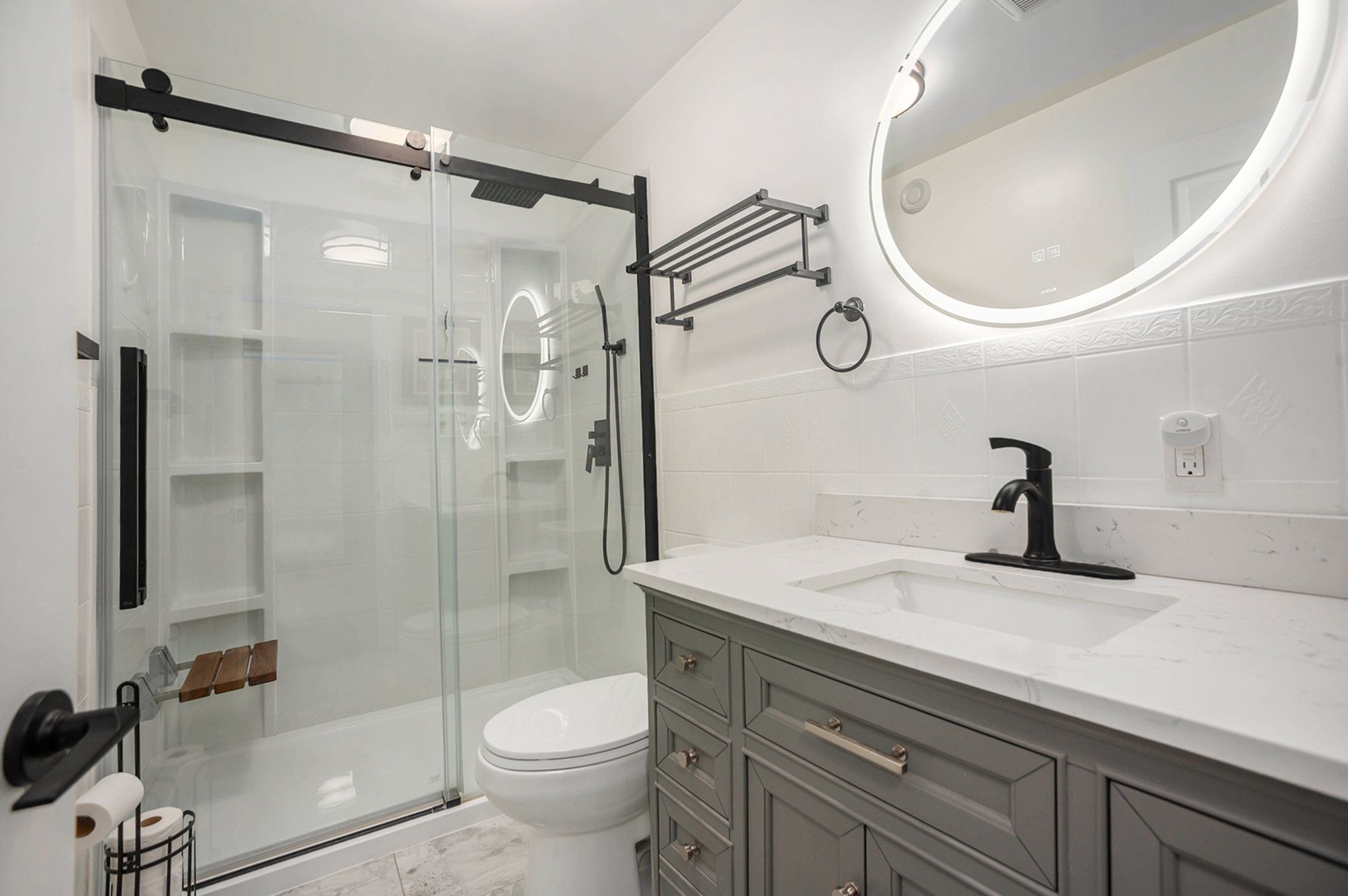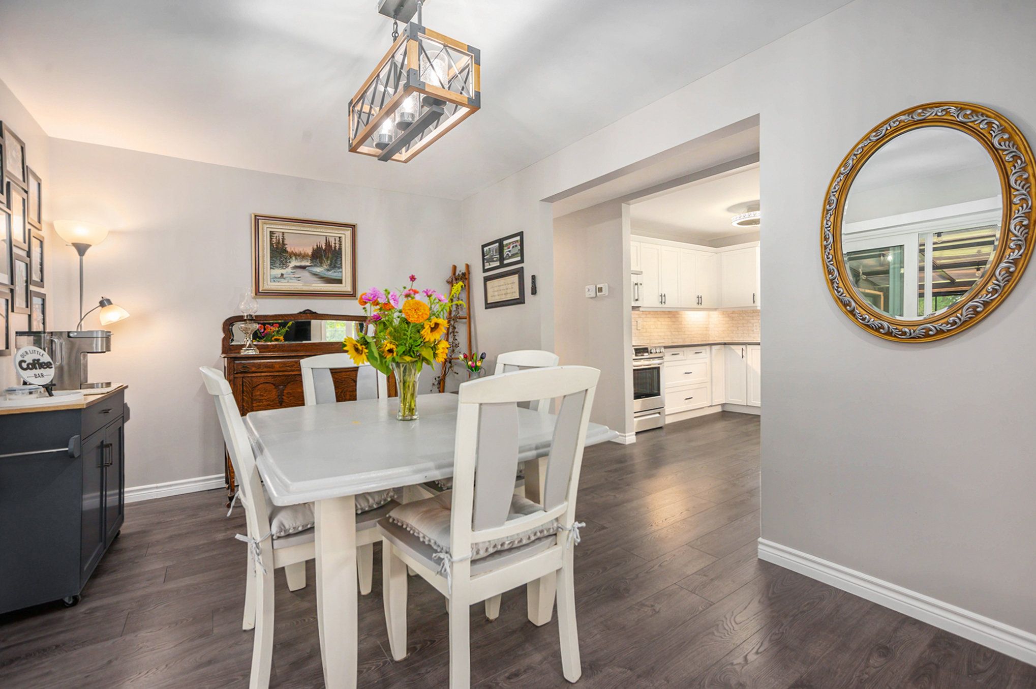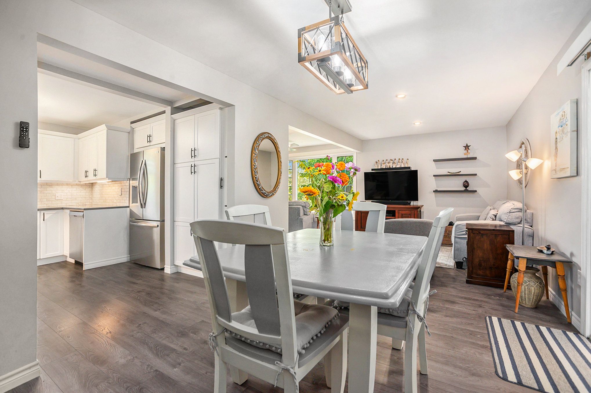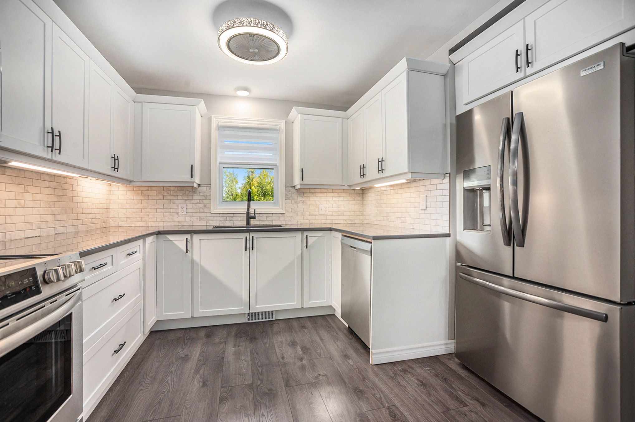 • Fully renovated kitchen with quartz countertops and stainless steel appliances.