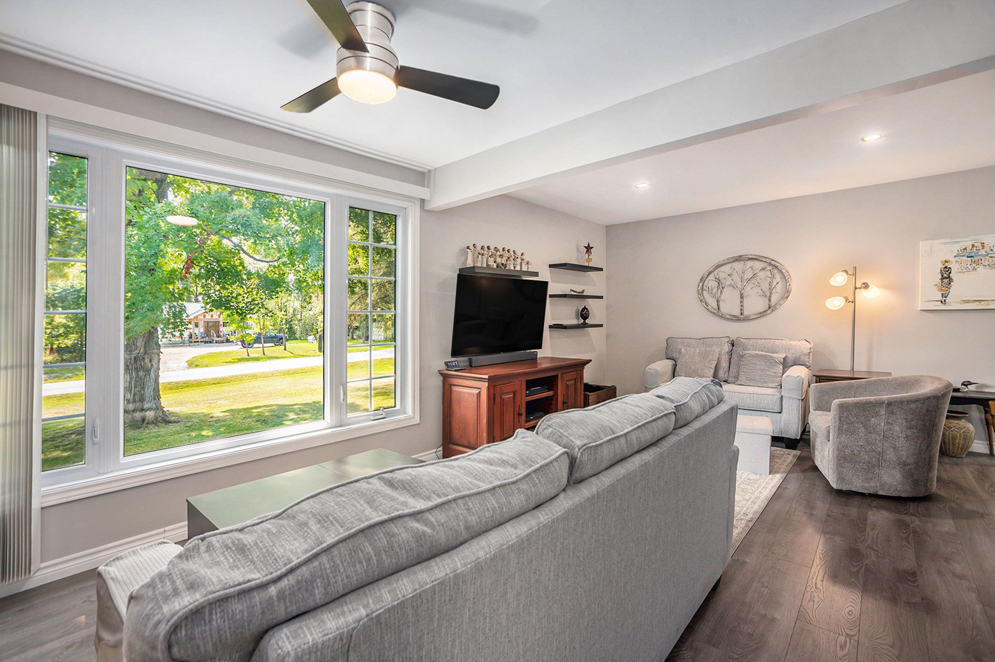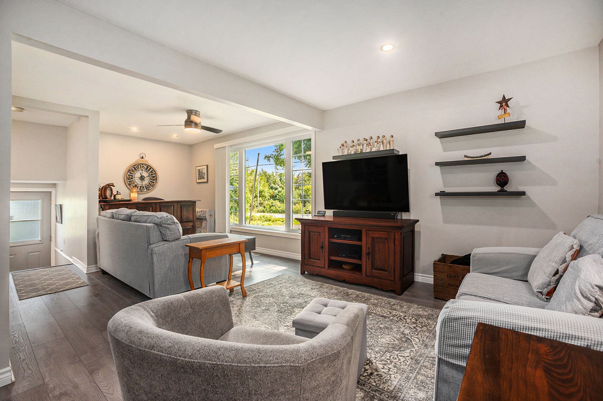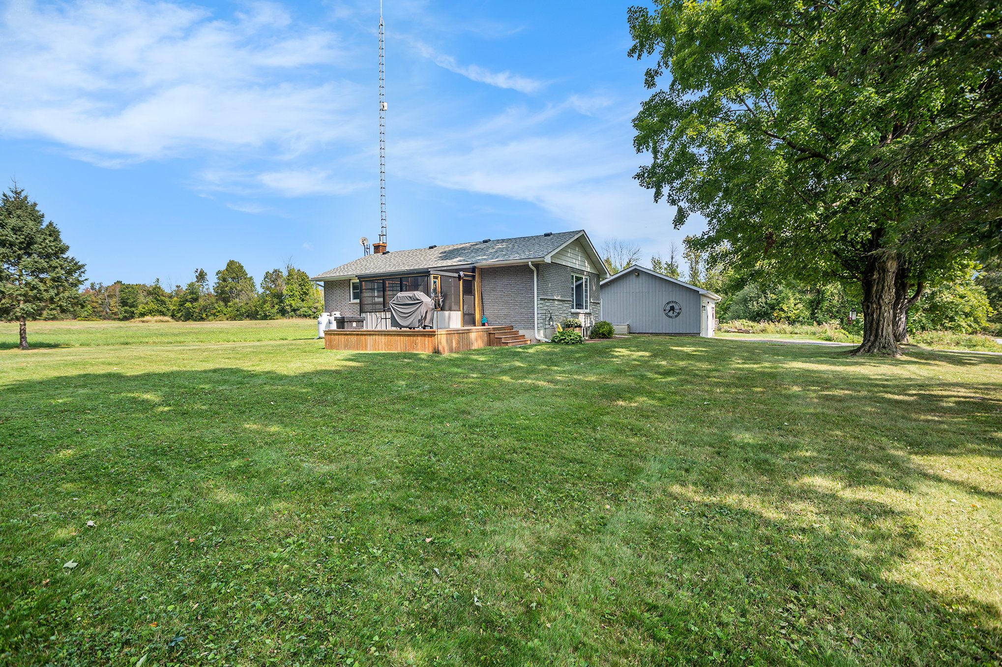 Welcome to your private oasis just minutes from perth! This beautifully upgraded bungalow is set on a picturesque 2. 5 acre lot (+/-) with no rear neighbours and stunning open field views. The main level features a fully renovated custom kitchen with quartz countertops and newer stainless steel appliances (2022), a beautifully updated bathroom, and two spacious bedrooms. A versatile third bedroom/office on the lower level offers flexible living space, with additional lower-level space ready to be transformed into a finished family room or extended living area. Enjoy seamless indoor-outdoor living with a new patio door leading to a bright enclosed sun porch (2025). The detached two-car garage is a standout feature-immaculate and functional, featuring oversized 8' x 9' doors (2023), ideal for larger vehicles, along with additional space for storage and workbench. Recent upgrades include new forced air furnace (2022), shingle roofing, eaves trough on house and garage (2024), updated appliances (2022), full kitchen renovation (2022) and bathroom renovations (2025), patio door and sun porch (2025), and interlock walkway (2025). The home is also equipped with a backup generator connected directly to the house for added peace of mind. A perfect blend of country charm, modern upgrades, and practical living-just minutes to all of perth's amenities.