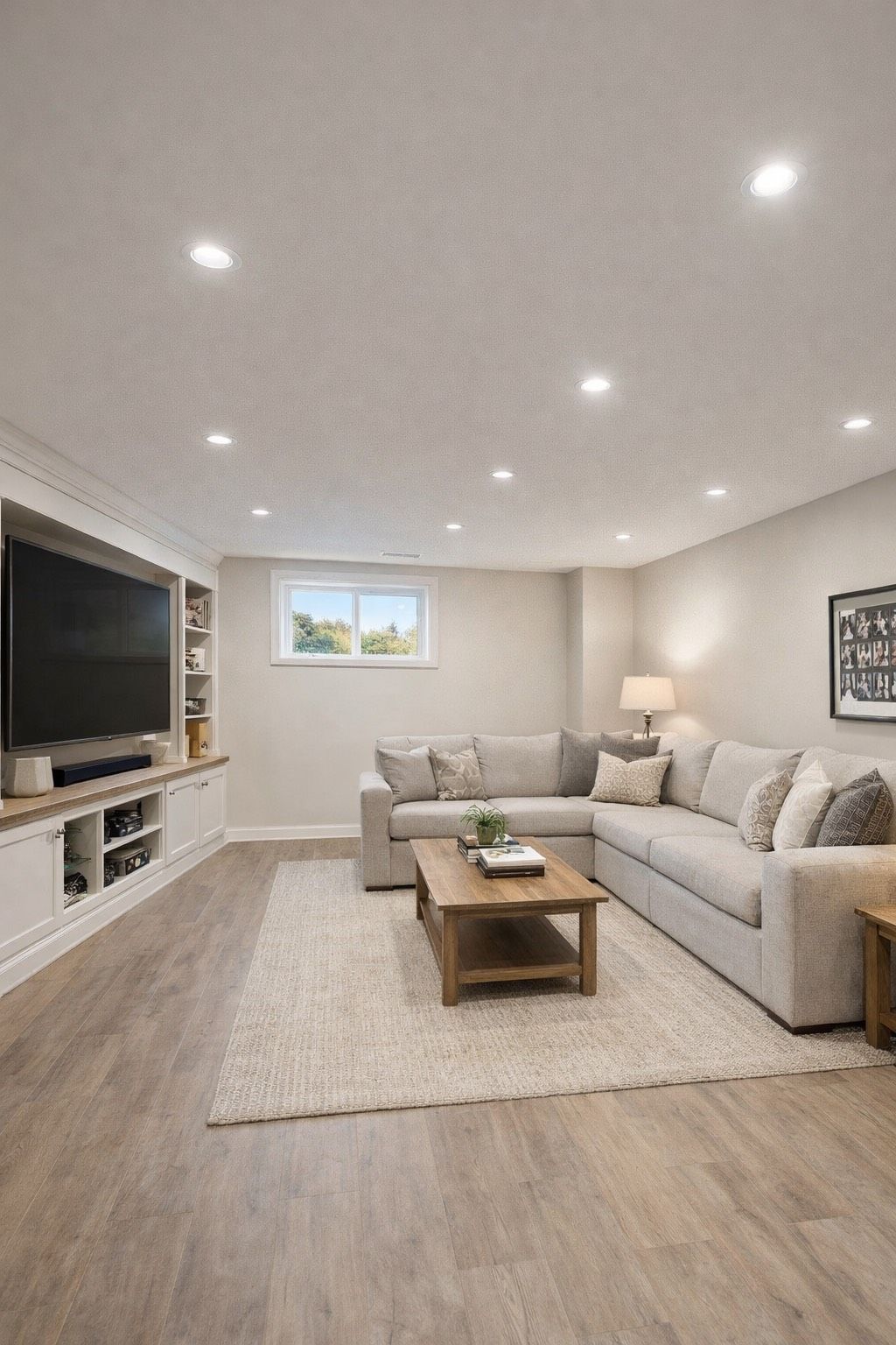 • Versatile lower-level space for a family room or office.