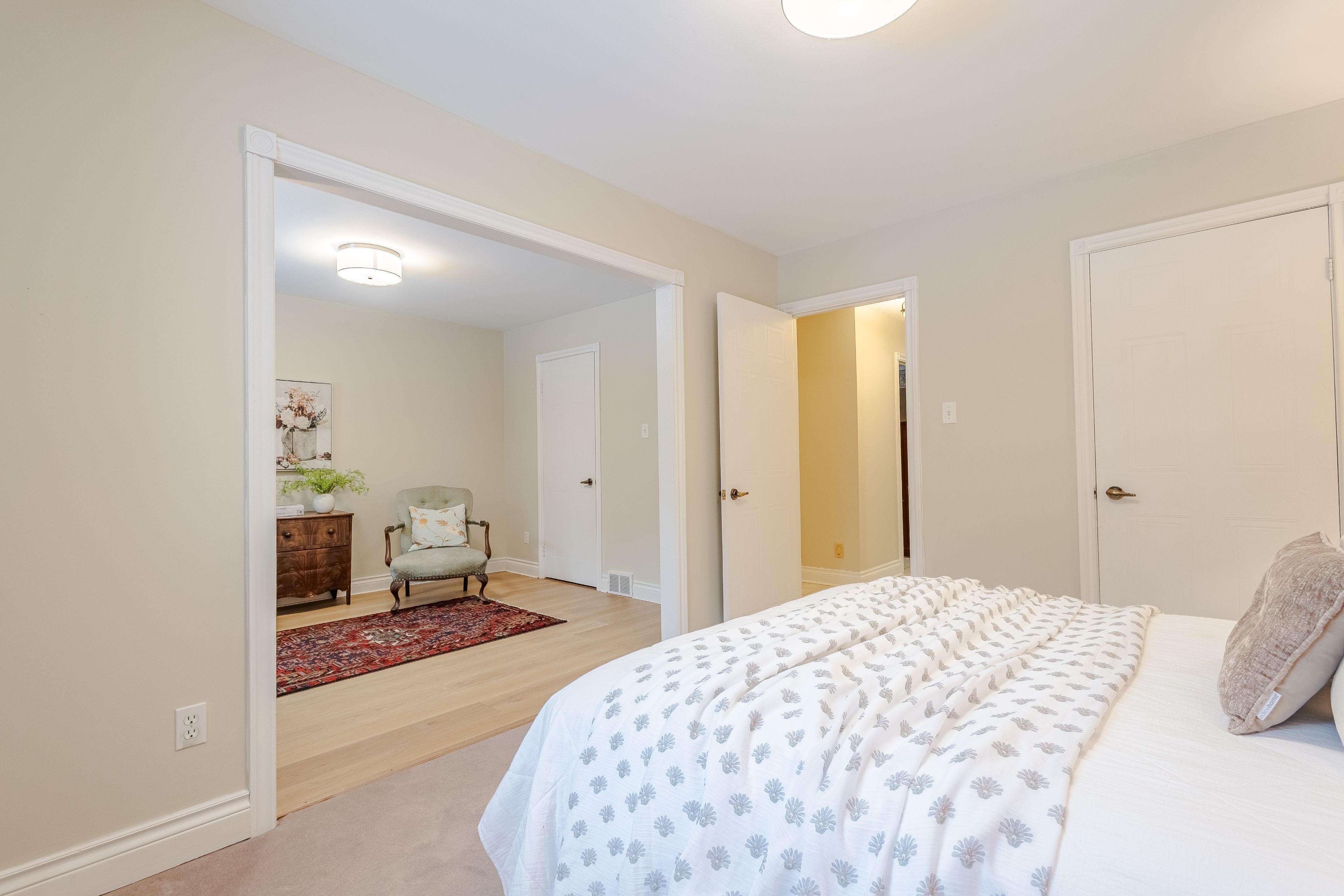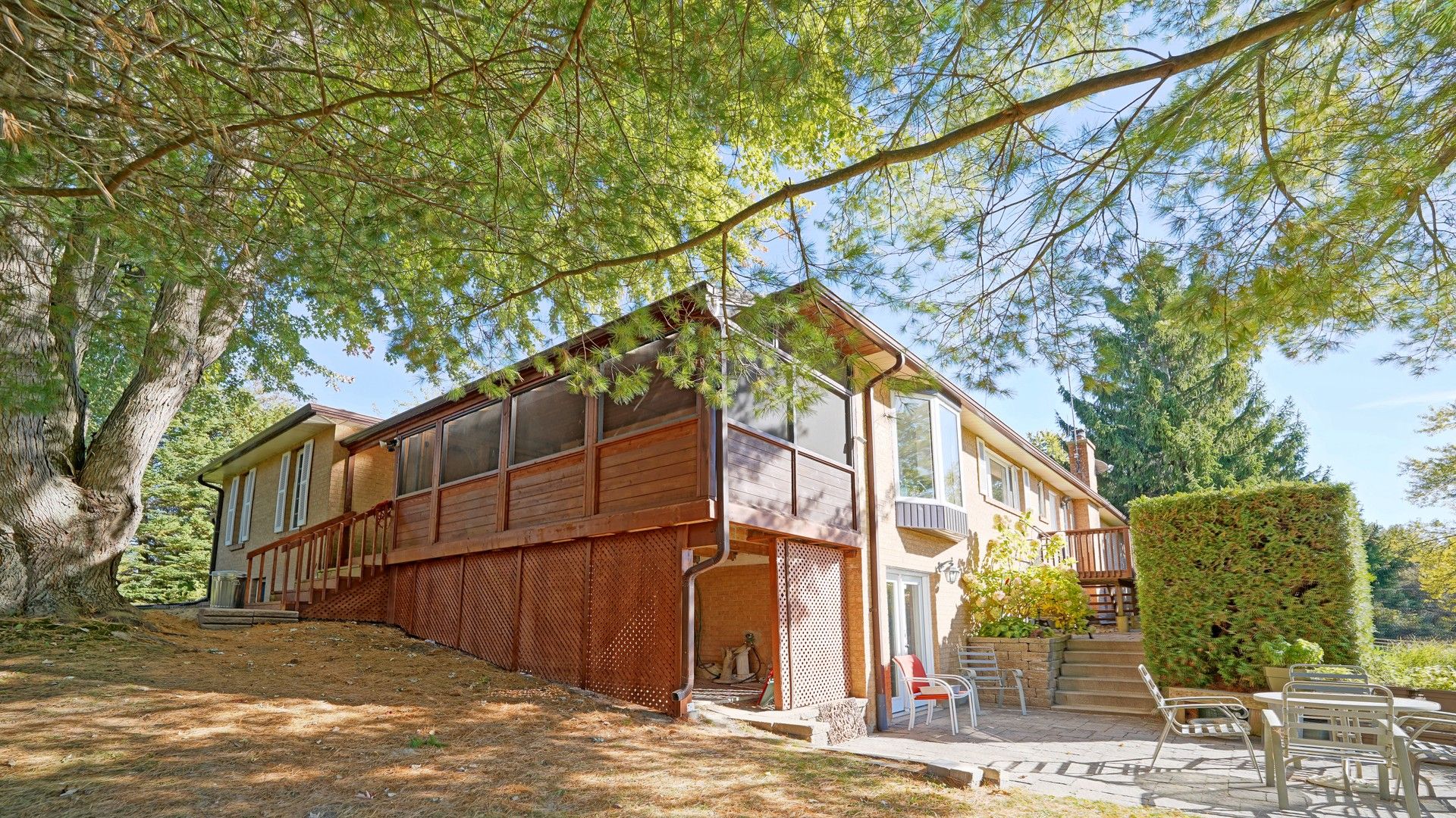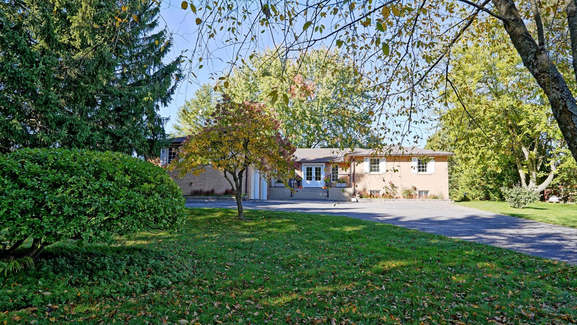 Enjoy the tranquility of country living while being minutes to everyday conveniences. Set on nearly 2 acres of private, picturesque land, this meticulously maintained bungalow offers over 6,000 sq ft of finished living space. The layout is exceptionally well-suited for multi-generational living or those looking for space, privacy, and room to breathe. The main level features a sunlit foyer, renovated main-floor laundry room, huge formal living spaces and four spacious bedrooms. At the heart of the home is a beautifully renovated kitchen with quartz countertops, stainless steel appliances, abundant pantry and storage space, and an impressive 8' x 5' cherrywood island, perfect for everyday living and entertaining. A west-facing bay window frames postcard-worthy views of the manicured lawn and gardens, and the breakfast area offers walkout access to the three-season screened-in deck, ideal for slow mornings and family dinners. The fully finished walk-out basement adds approximately 3,000 sq ft of additional living space with incredible flexibility. It includes a full kitchen, a spacious open-concept living area, a renovated 3-piece bathroom, a second laundry room, and two bedrooms - one currently used as an exercise room with an attached sauna, plus a dedicated craft workshop and a separate general workshop. The property is framed with perennial gardens, easy to maintain thanks to the vast irrigation system, illuminated at night with landscape lighting. The circular driveway leaves room for ample parking. Just 5 minutes to old elm go station and main st. Stouffville, 15 minutes to markham and hwy 407, 20 mins to downtown uxbridge or hwy 404. Surrounded by scenic hiking trails, estate homes, farms, elite golf courses and equestrian centres - this is pure tranquility close to the city.