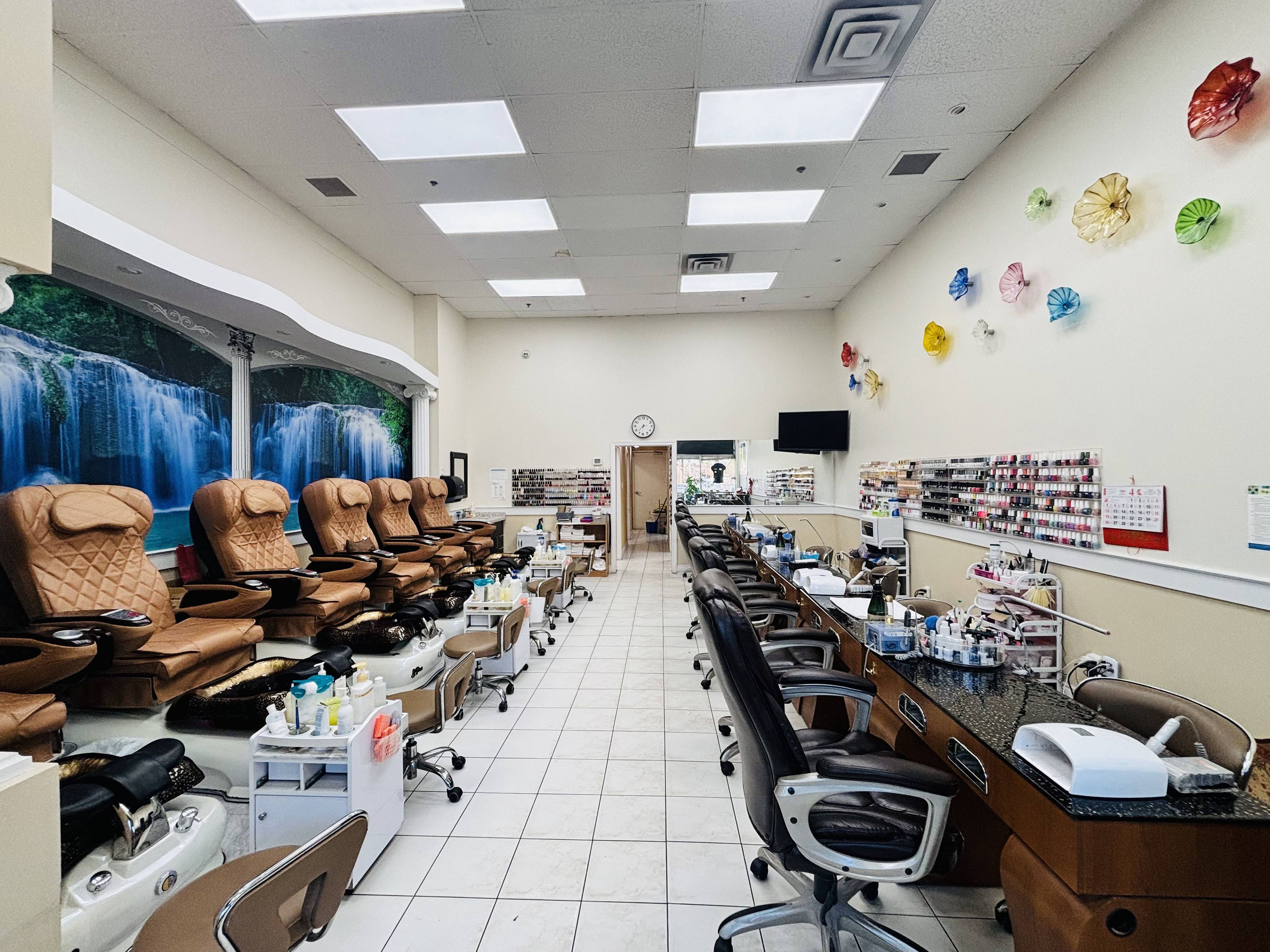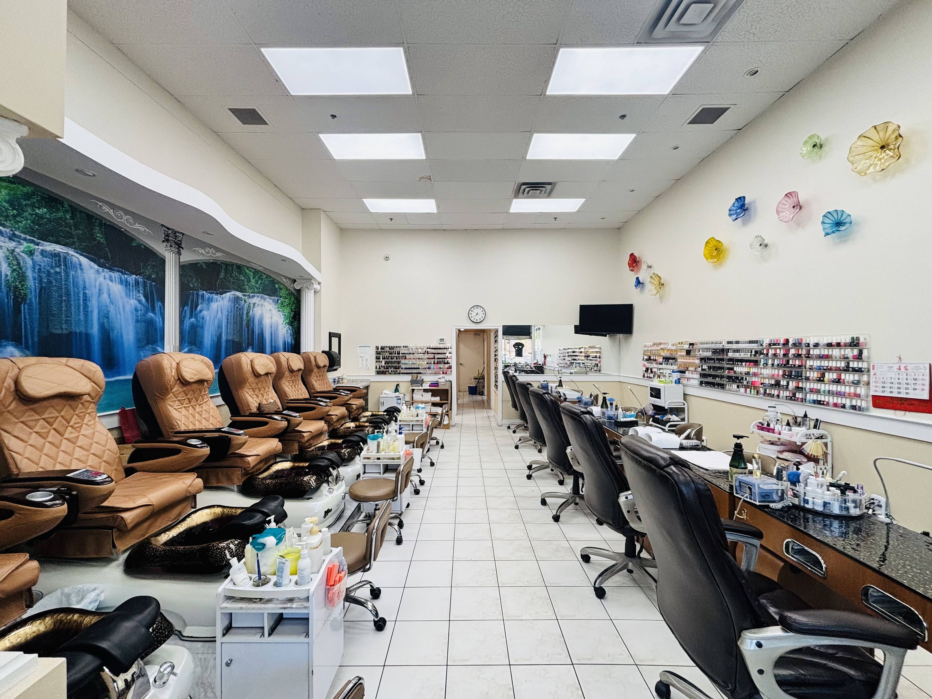 • Includes 6 manicure tables, 6 pedicure chairs, and private rooms.