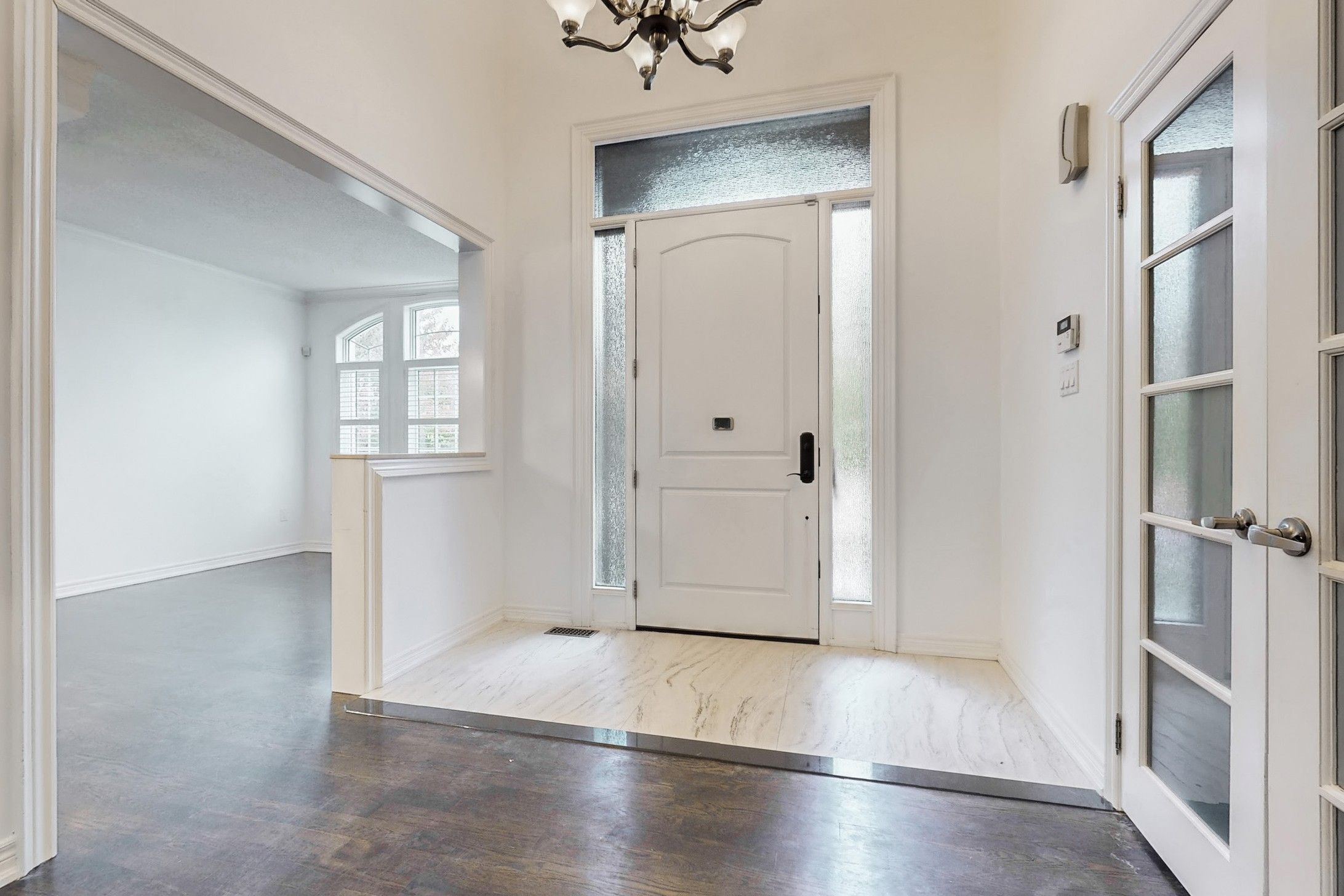 2400 tesla crescent, oakville - executive bungalow in joshua creek community, nestled on a quiet, tree-lined street in oakville. Step inside this upgraded home showcasing a custom chef's kitchen with quartz countertops, stainless steel appliances, and custom hood. The home has many upgrades including a new front door system, hardwood floors, hardwood staircase, smoked glass doors, professional new paint throughout the entire house, upgraded bathrooms, pot lights, and landscaping with exposed concrete walkways front and back. The open-concept family and dining areas flow seamlessly, offering california shutters and natural light. Downstairs, the fully finished basement expands the living space with a wet bar, two bedrooms, a private office, and a five-piece bathroom. Outside, enjoy a fully fenced backyard. Walk to schools, joshua creek trail, and parks, with access to highways 403, 407, and qew. Shopping, restaurants, and golf are nearby, with a short drive to downtown oakville and the lakefront. This property is move-in ready and well maintained.