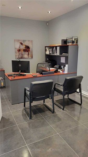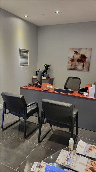 Well maintained, spacious, well lit with pot lights front office only in desirable location. Lots of possibilities, has a big window if need exposure, all utilities are included gross lease, can suit any office business (lawyer, accountant, insurance, etc.) or a showroom. Front office space only finished with ceramic tile flooring and 2pc bathroom exclusive use of a modern clean washroom.