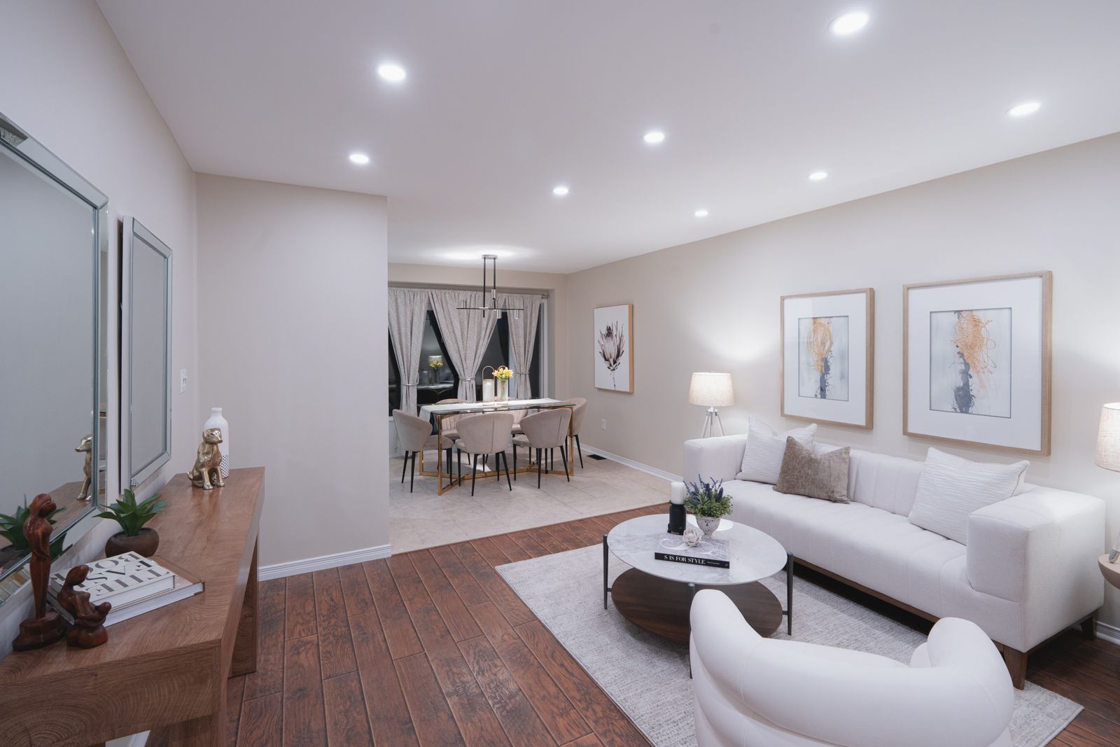 Experience the rare privacy of a "garage-link" freehold fernbrook-built in burlington'sdesirable orchard community, where the garage is the only point of attachment to the adjacent unit. The unique main floor layout offers a seamless flow between the living and dining areas, maximizing every square inch of usable space. Extensively upgraded kitchen with quartz countertop, new fridge and s/s appliances. The sleek pot lights newly installed on main level and basement; home is freshly painted. Brand-new broadloom throughout the second floor. Retreat to an oversized primary suite with private ensuite, plus two additional generous bedrooms. The fully finished basement adds versatile living space, while the rare garage-to- backyard man-door provides effortless convenience. A detached feel at a townhome price in a premier location! The highlightsdetached-style privacy: attached only at the garage with no shared living walls. Seamless open concept: a unique main floor layout where the living and dining areas flow together on a single level-no stairs breaking up your living space. Finished living space: a fully finished basement adds valuable square footage for a gym,office, or media room. Enjoy the rare "man-door" from the garage directly to the backyard-perfect for easy outdoor maintenance and pet owners. List of updates: new fridge, new second floor high quality broadloom, new quartz counter-top and sink in all bathrooms. New quartz countertop and s/s sink in the kitchen. Roof shingles 4 years old. Furnace and ac 3 years old. Ready to move in!