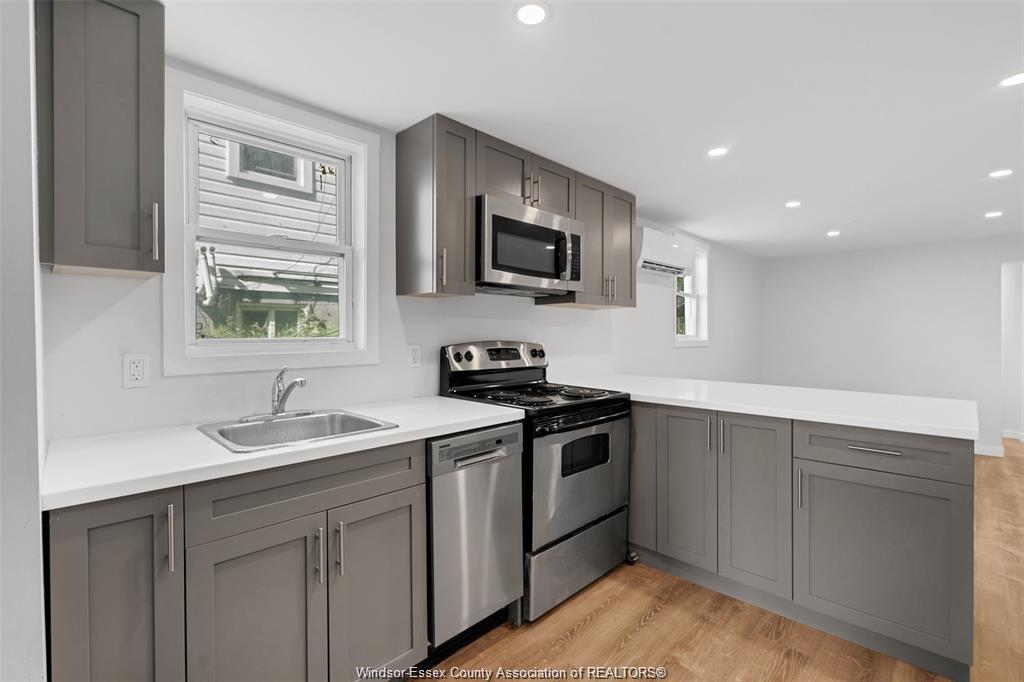 Welcome to this fully renovated 2-storey triplex in east windsor, offering exceptional income potential. All three units are completely renovated top to bottom and fully vacant, allowing buyers to set their own rents and tenants. The main level features a 1-bedroom unit, the upper level offers a spacious 2-bedroom unit, and the lower level includes a rare 3-bedroom unit. The generous lot provides a future opportunity to build an adu in the backyard, creating a potential 4-unit investment (buyer to verify). Property includes three separate gas and hydro meters. Hot water tanks for the upper and lower units are owned, while the main level tank is rented through reliance. Ideally located close to shopping, schools, transit, and minutes from the new battery plant.