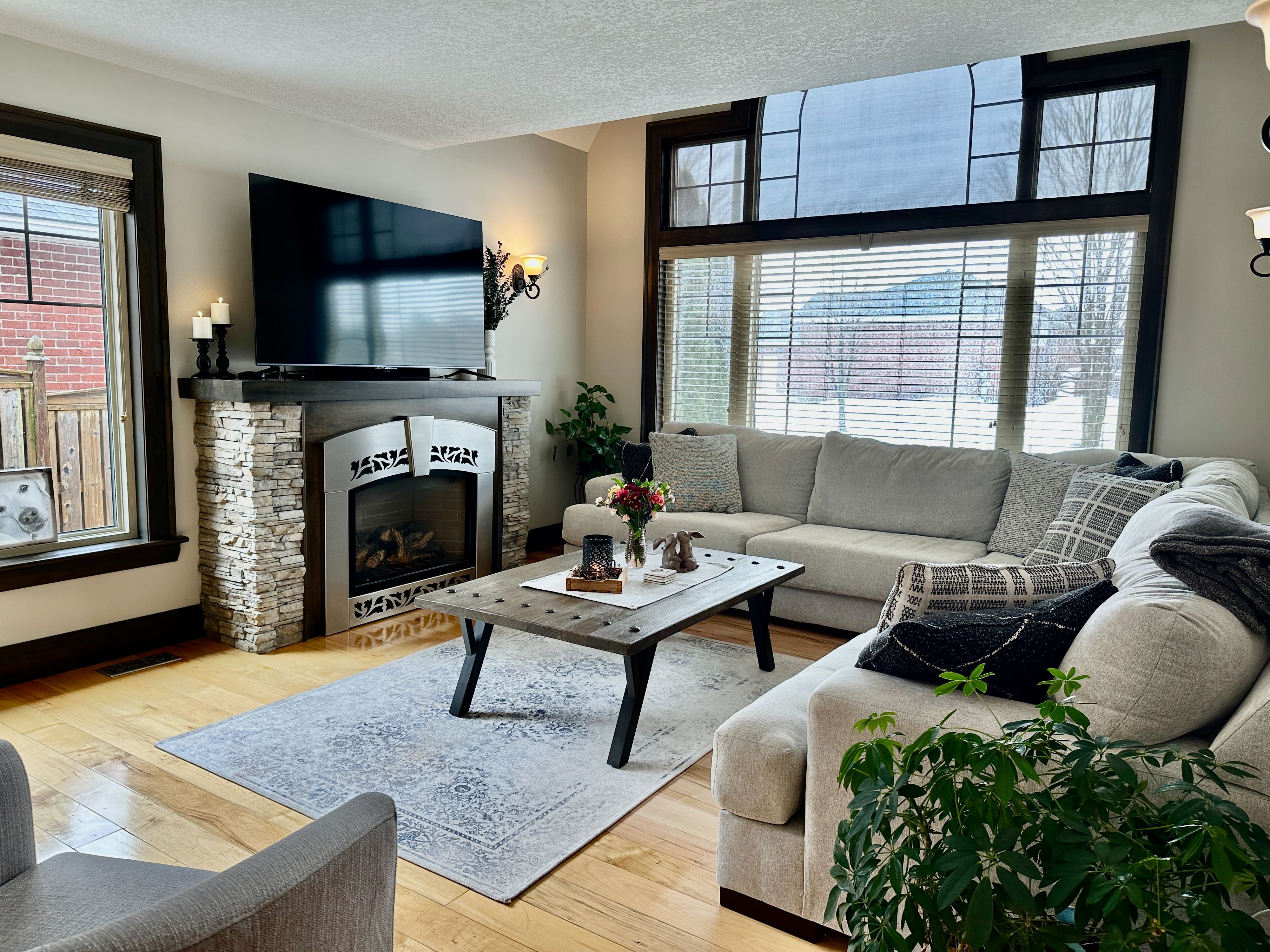 Welcome to this stunning custom-built two-storey home nestled in one of the area's most desirable neighbourhoods offering 4 bedrooms and 3. 5 bathrooms. The main floor features a large foyer with plenty of closet space, extra privacy door, a living room with vaulted ceiling and natural gas fireplace, a large bright eat-in kitchen with stainless steel appliances, rear covered deck access via french doors, gas bbq hookup, laundry, and a 2-piece bath. Upstairs includes a primary suite with double doors, built-in cabinetry, and 4pc ensuite. Two more generous sized bedrooms and a 5-piece bath complete the upper level. The finished basement provides a cozy rec room, an office area that could work nicely for your basement bar, a fourth bedroom, 3-piece bath, and utility room with walk up access to the garage. Outside, enjoy a fully fenced, landscaped backyard ready for you to make the best memories on those warm summer nights. With its quality craftsmanship, ideal layout, and fantastic location, this home truly has it all. Contact your realtor for your private showing today!