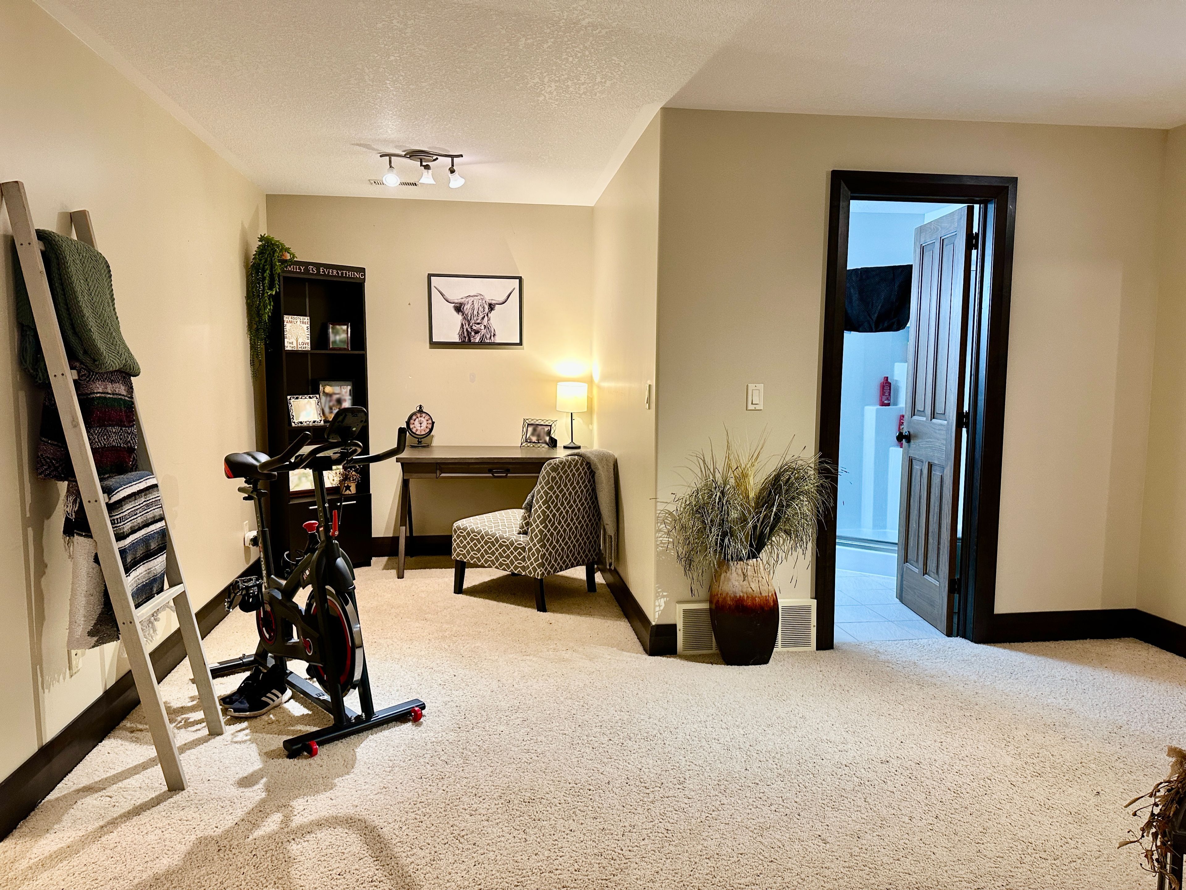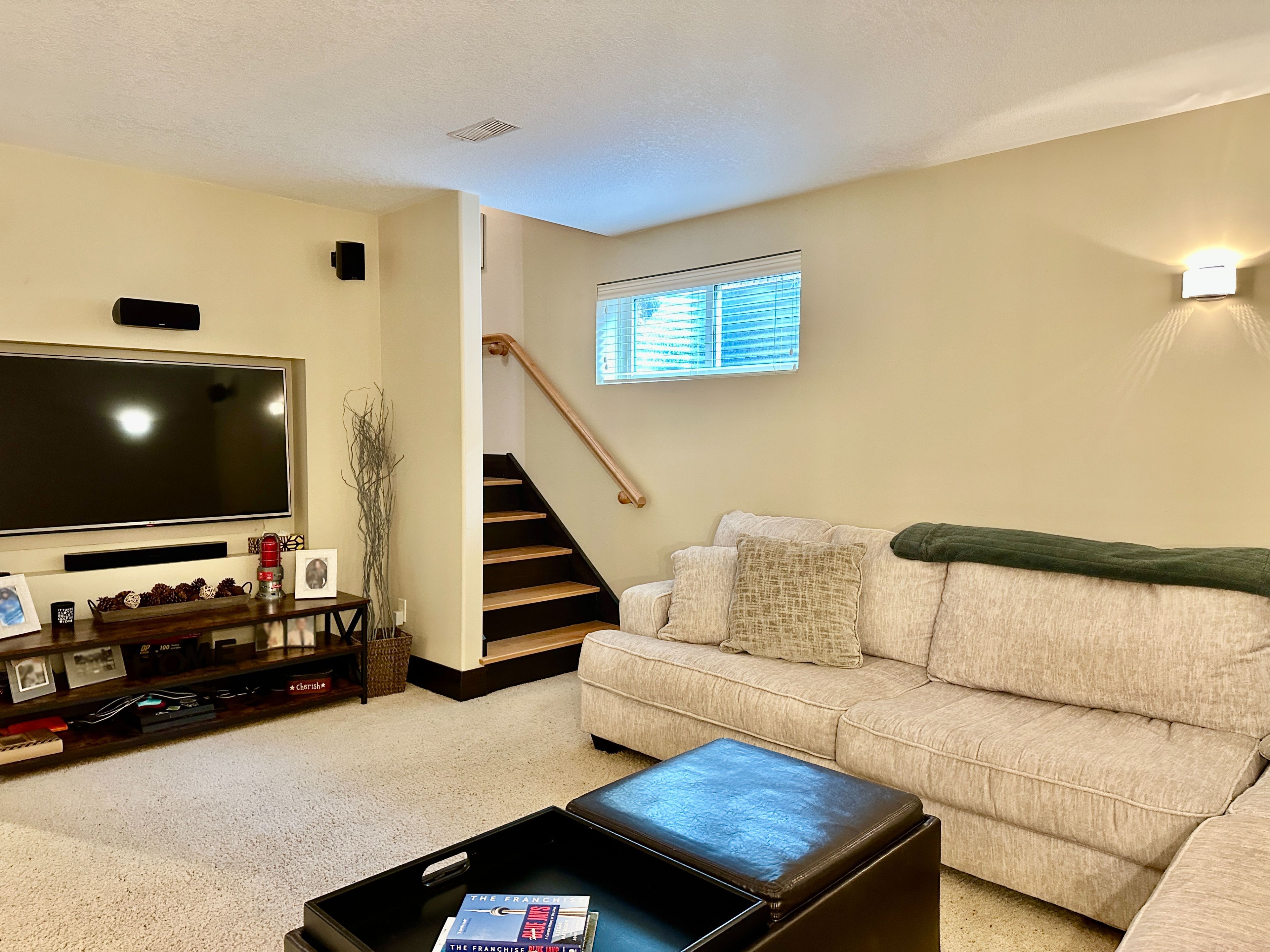 • Finished basement includes a cozy rec room and office area for flexibility.