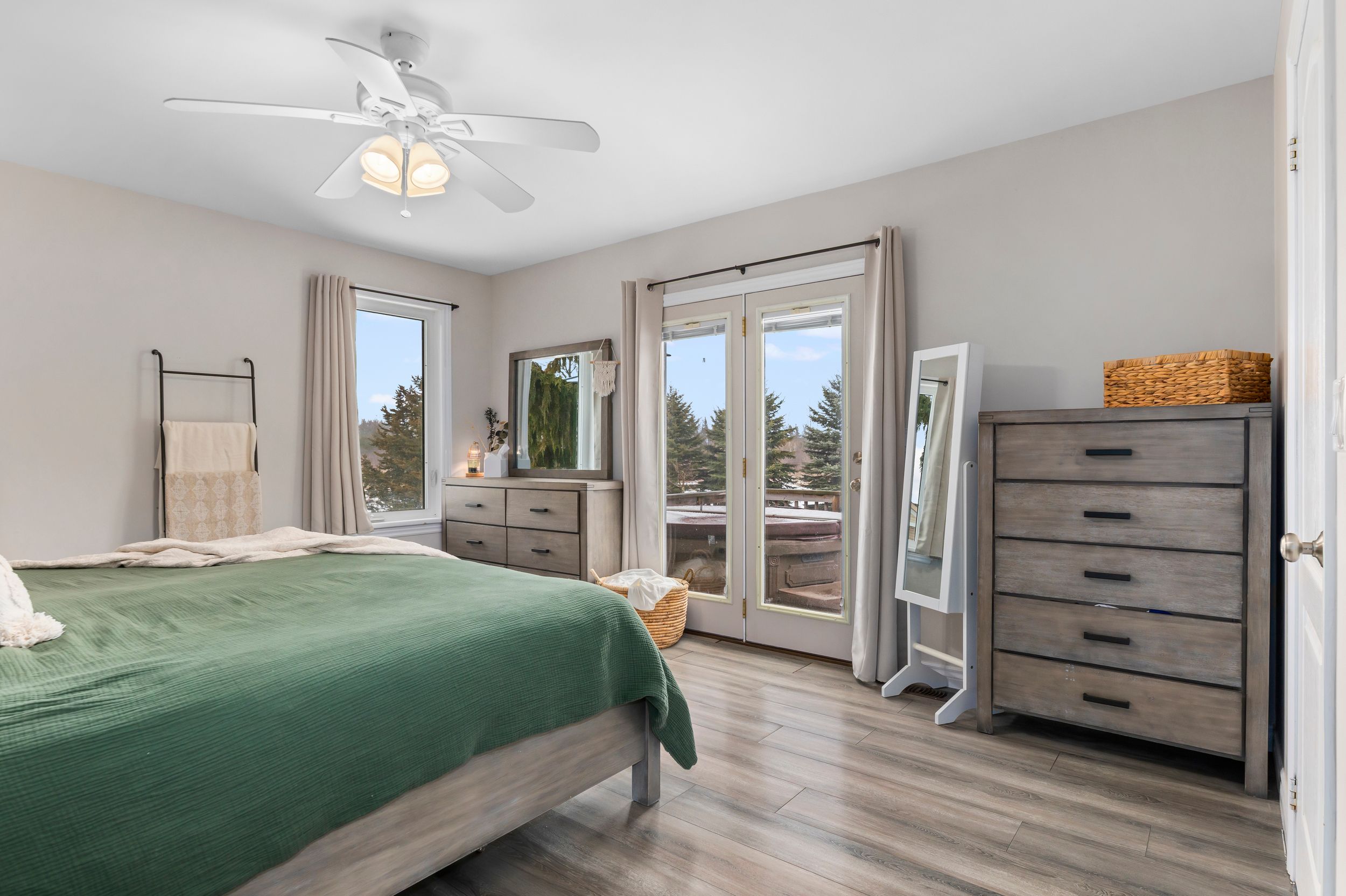 • Spacious 5 acre property with custom built home surrounded by trees.