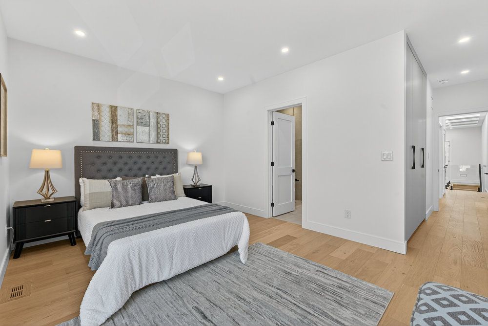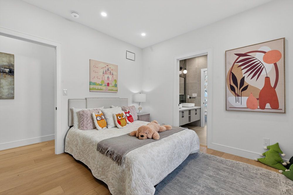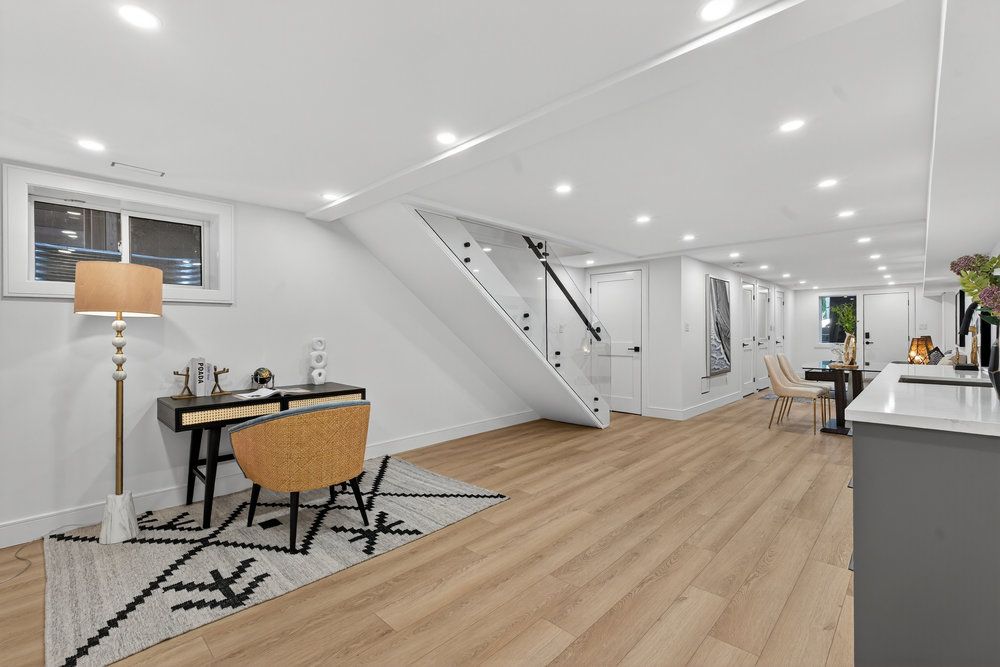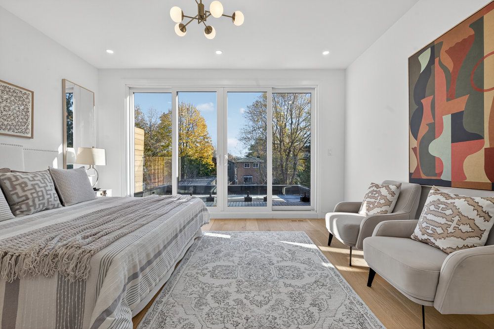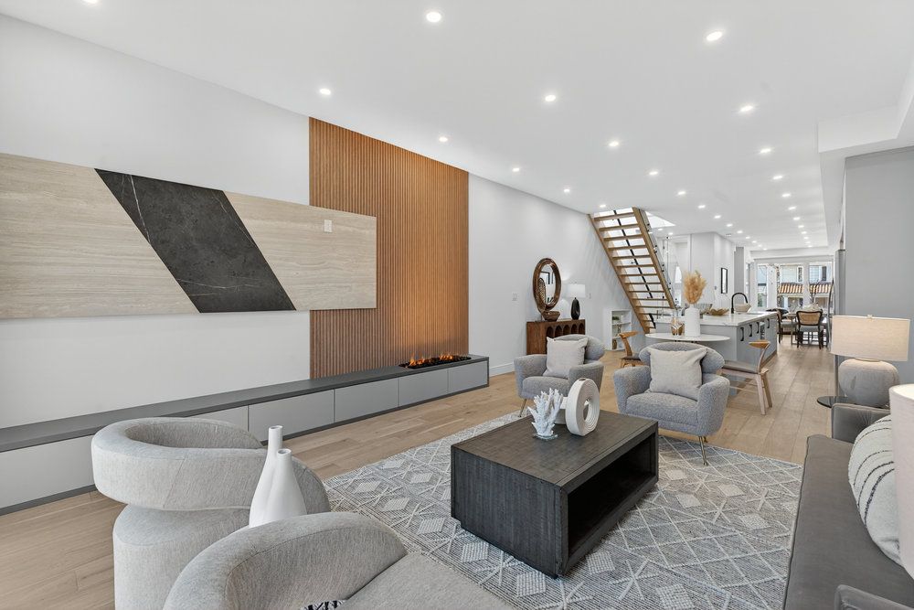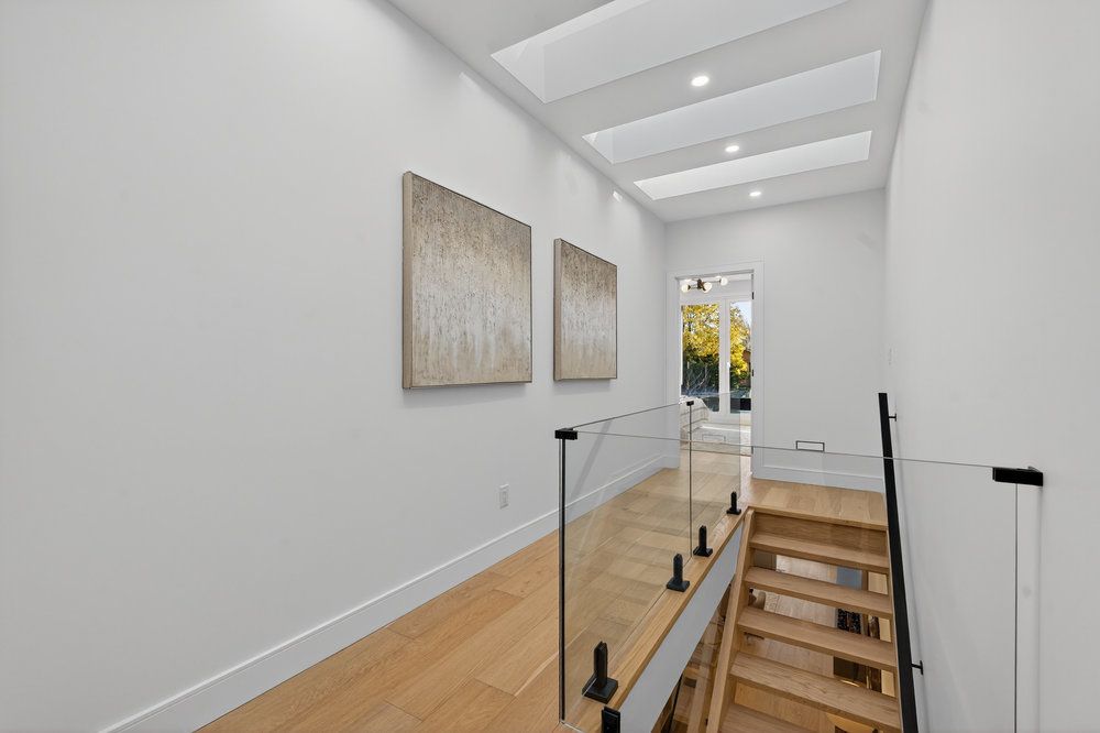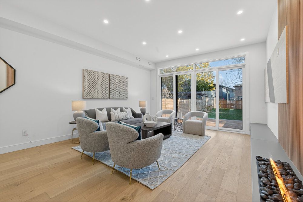 Step into a world of refined elegance in this custom-built showpiece, perfectly positioned on an extraordinary 160-ft deep lot. Designed with sophistication and functionality in mind, this home boasts over 3,100 sq ft of meticulously finished space, flooded with natural light through floor-to-ceiling windows and soaring ceilings. The open-concept main floor is anchored by a chef's dream kitchen, featuring a massive 16-ft island, extensive drawer storage, and ultra-durable porcelain counters and backsplash. The adjoining family room is both chic and inviting, highlighted by a bespoke feature wall, elegant built-ins, and a mesmerizing water-vapour fireplace. Double doors flow seamlessly onto a stylish deck overlooking the private, deep, fully fenced backyard, offering endless possibilities for outdoor living and entertaining. Architectural open-riser stairs ascend to a breathtaking upper level illuminated by four skylights. The luxurious primary suite offers a custom walk-through dressing area with built-in closets and skylight, along with a fully tiled, spa-worthy ensuite complete with a custom double vanity, curbless glass shower, and a freestanding tub. The second bedroom includes built-in closets, a floor-to-ceiling window, and access to a semi-ensuite with double vanity, separate water closet, and a glass-enclosed shower. The third bedroom shares the semi-ensuite and includes built-in closets and large window. The impressive lower level is bright and versatile, featuring a front walkout entrance, open-concept living space with kitchenette, a spacious bedroom, and two full washrooms, ideal for in-laws, guests, or multi-generational living. A rare blend of style, craftsmanship, and modern amenities-this home is a true standout for the most discerning buyer. The exterior continues the theme of custom craftsmanship with the front styled with a blend of wood composite, porcelain slabs, acm panels and an interlocked driveway.