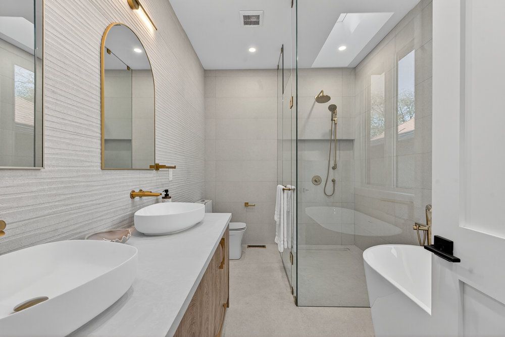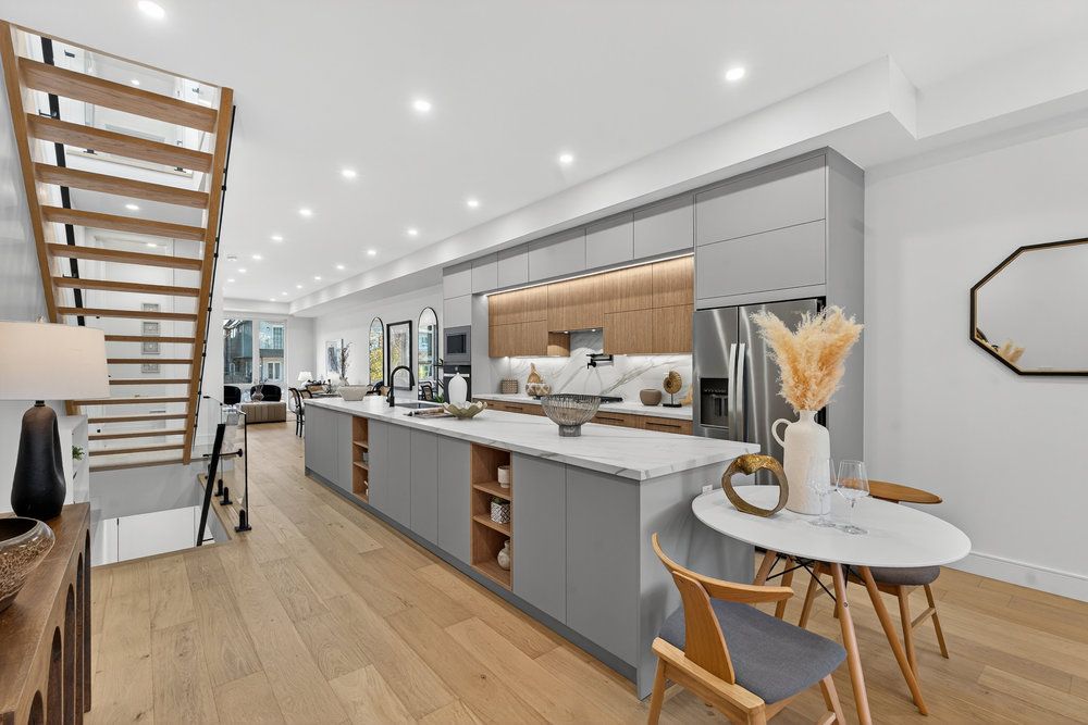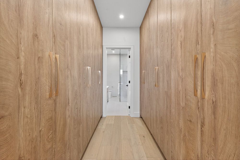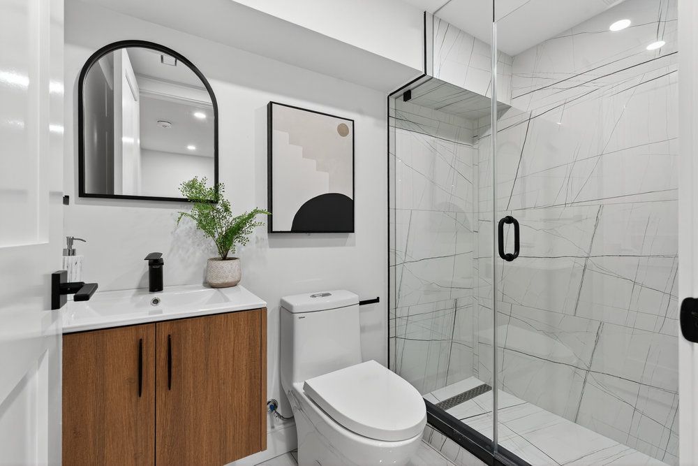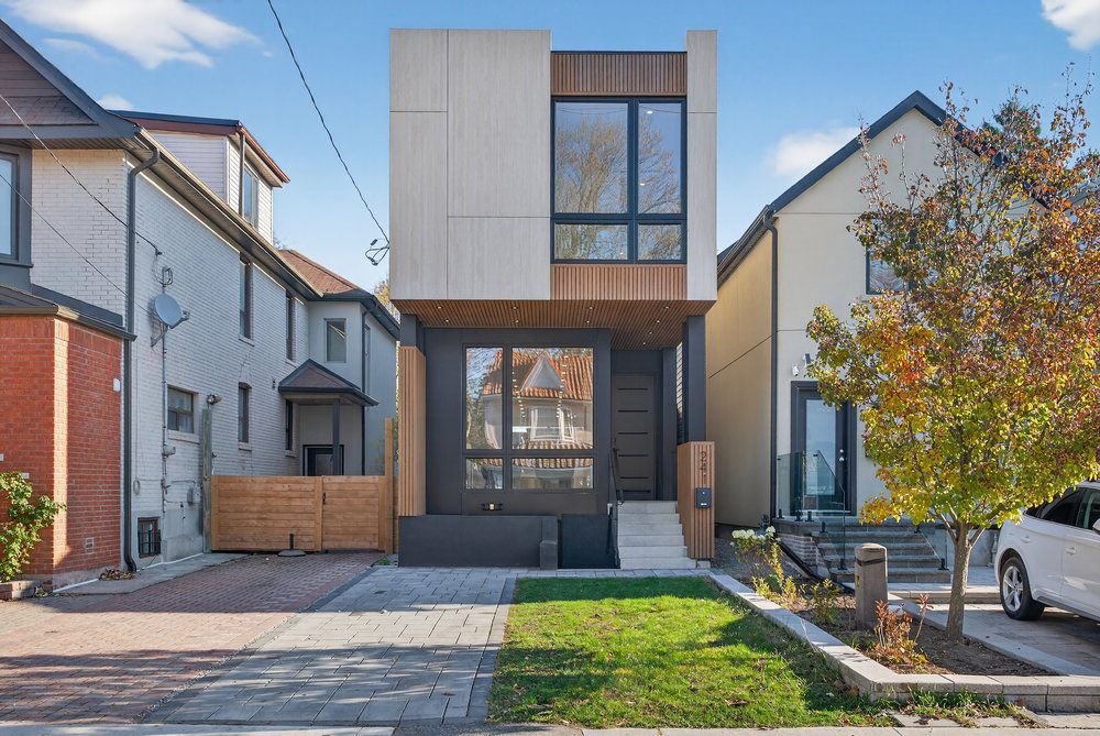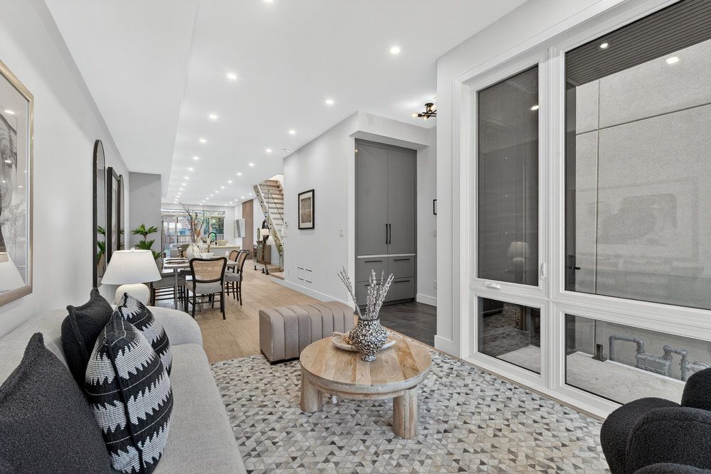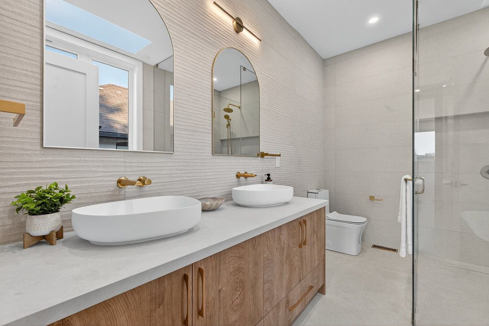 Step into a world of refined elegance in this custom-built showpiece, perfectly positioned on an extraordinary 160-ft deep lot. Designed with sophistication and functionality in mind, this home boasts over 3,100 sq ft of meticulously finished space, flooded with natural light through floor-to-ceiling windows and soaring ceilings. The open-concept main floor is anchored by a chef's dream kitchen, featuring a massive 16-ft island, extensive drawer storage, and ultra-durable porcelain counters and backsplash. The adjoining family room is both chic and inviting, highlighted by a bespoke feature wall, elegant built-ins, and a mesmerizing water-vapour fireplace. Double doors flow seamlessly onto a stylish deck overlooking the private, deep, fully fenced backyard, offering endless possibilities for outdoor living and entertaining. Architectural open-riser stairs ascend to a breathtaking upper level illuminated by four skylights. The luxurious primary suite offers a custom walk-through dressing area with built-in closets and skylight, along with a fully tiled, spa-worthy ensuite complete with a custom double vanity, curbless glass shower, and a freestanding tub. The second bedroom includes built-in closets, a floor-to-ceiling window, and access to a semi-ensuite with double vanity, separate water closet, and a glass-enclosed shower. The third bedroom shares the semi-ensuite and includes built-in closets and large window. The impressive lower level is bright and versatile, featuring a front walkout entrance, open-concept living space with kitchenette, a spacious bedroom, and two full washrooms, ideal for in-laws, guests, or multi-generational living. A rare blend of style, craftsmanship, and modern amenities-this home is a true standout for the most discerning buyer. The exterior continues the theme of custom craftsmanship with the front styled with a blend of wood composite, porcelain slabs, acm panels and an interlocked driveway.