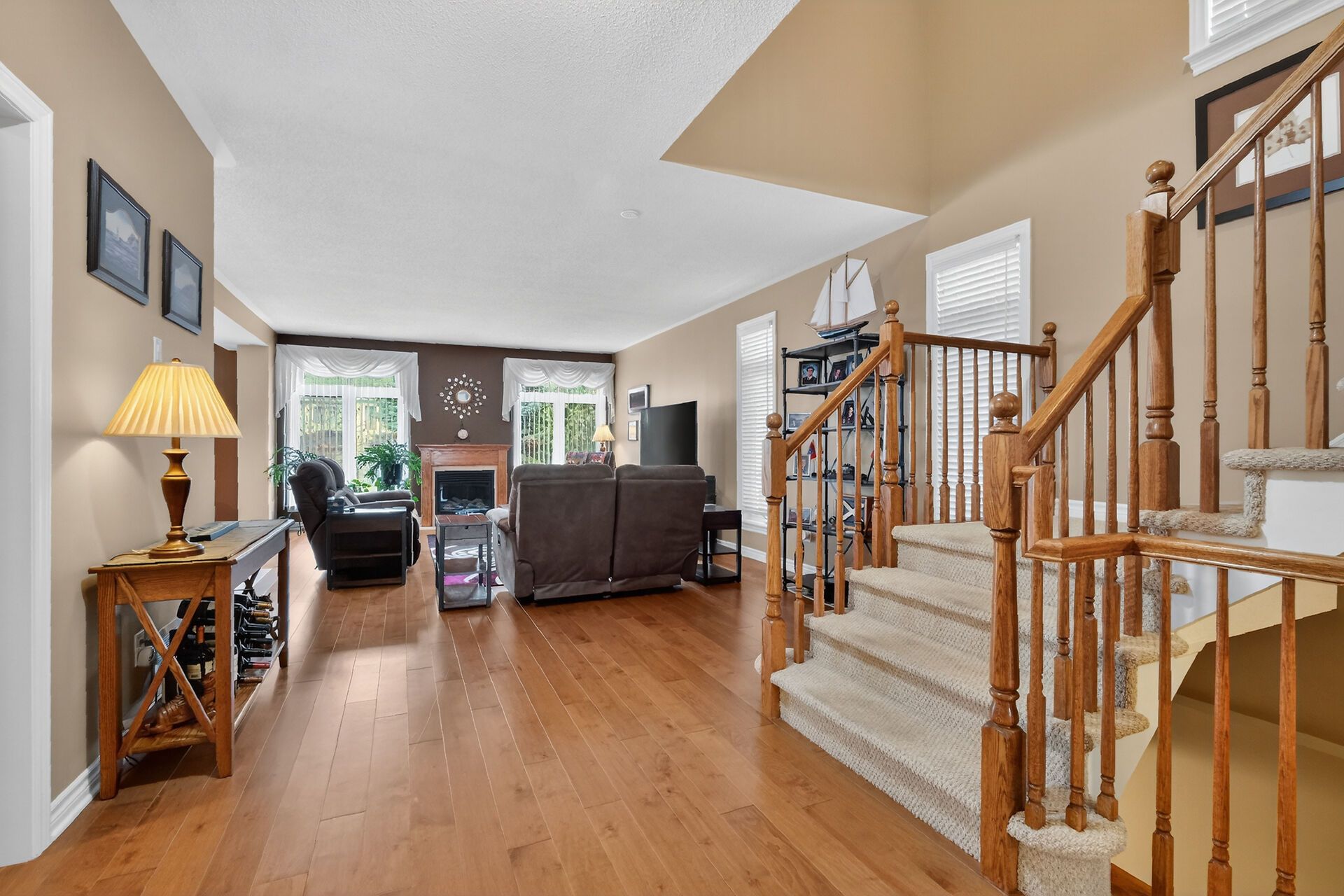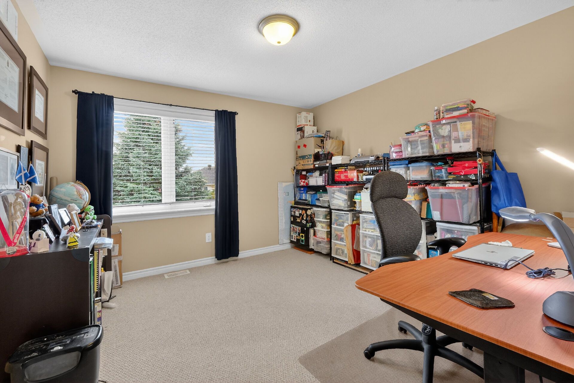 Welcome to the sought-after bristol model by tamarack homes, ideally located in the desirable jackson trails community of stittsville. This family-friendly neighborhood offers exceptional convenience just minutes to dnd carling campus, tanger outlets, canadian tire centre, stittsville main street, schools, parks, recreation, public transit and walking trails. Designed for modern living, the open concept main floor features 9' ceilings, hardwood flooring and an inviting layout ideal for both everyday living and entertaining. A main floor den provides an excellent home office or flex space, the (schrank) bookcase can be included if desired. The spacious kitchen offers tile flooring, ample cabinetry and center island overlooking the living room with gas fireplace and adjoining dining area. A bright breakfast area provides direct access to the maintenance-free rear deck and fully fenced yard. The second level features a generous primary bedroom retreat complete with walk-in closet and five-piece ensuite with double sinks and separate shower. Three additional well-sized bedrooms offer double closets and large windows. Convenient second floor laundry includes upper cabinetry and laundry sink. The finished lower level expands the living space with a large family room featuring an electric fireplace, oversized windows and pot lighting, plus a fifth bedroom and full four-piece bathroom ideal for guests or extended family. Ample storage and utility space included. Furnace and air conditioner inspected and cleaned annually. Owned on-demand hot water tank and air exchanger included. Double car garage with automatic opener, interlock walkway and driveway surround. Fully fenced yard with storage shed. 24 hour irrevocable required on all offers. Offers considered between 09:00 and 21:00 hours.