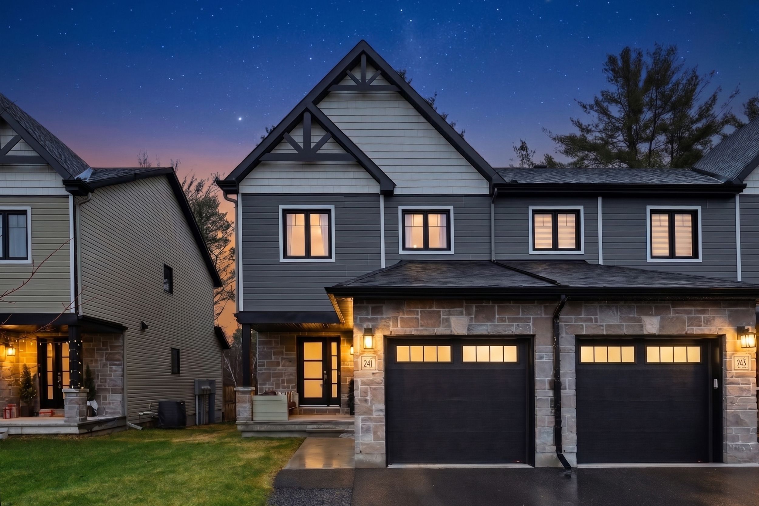 Welcome to 241 dion avenue in the growing and family-friendly town of rockland! This move-in ready, turn-key end-unit freehold townhome showcases quality upgrades throughout and is ideally located on a quiet street backing directly onto the rockland golf course - offering no rear neighbours and breathtaking open views! A rare opportunity to enjoy privacy and a peaceful golf course setting right from your own backyard! Exceptional curb appeal greets you as you arrive, with a driveway long enough for two vehicles leading to a welcoming foyer featuring a large closet, convenient garage access and a partial bathroom. The main level boasts a bright, open-concept layout highlighted by gleaming hardwood flooring. The stylish kitchen is sure to impress with light-coloured cabinetry, quartz countertops, a beautiful herringbone backsplash, stainless steel appliances, and a large island with an overhang for seating - all overlooking the spacious living and dining areas. Patio doors from the dining room lead to the quiet backyard complete with a deck and hot tub - the perfect place to unwind after work or watch the stars at night. Upstairs, the generously sized primary bedroom offers a generous walk-in closet and a 3-piece with stunning views of the golf course. Two additional well-proportioned bedrooms and a full bathroom complete this level. The partially finished basement adds valuable living space with a recreation room and a fourth bedroom, both already framed and drywalled and awaiting only flooring and final touches. A rough-in for a future bathroom offers excellent potential for customization, while the laundry area and ample storage enhance everyday functionality. A perfect blend of comfort, style, and location - this home is a must-see!