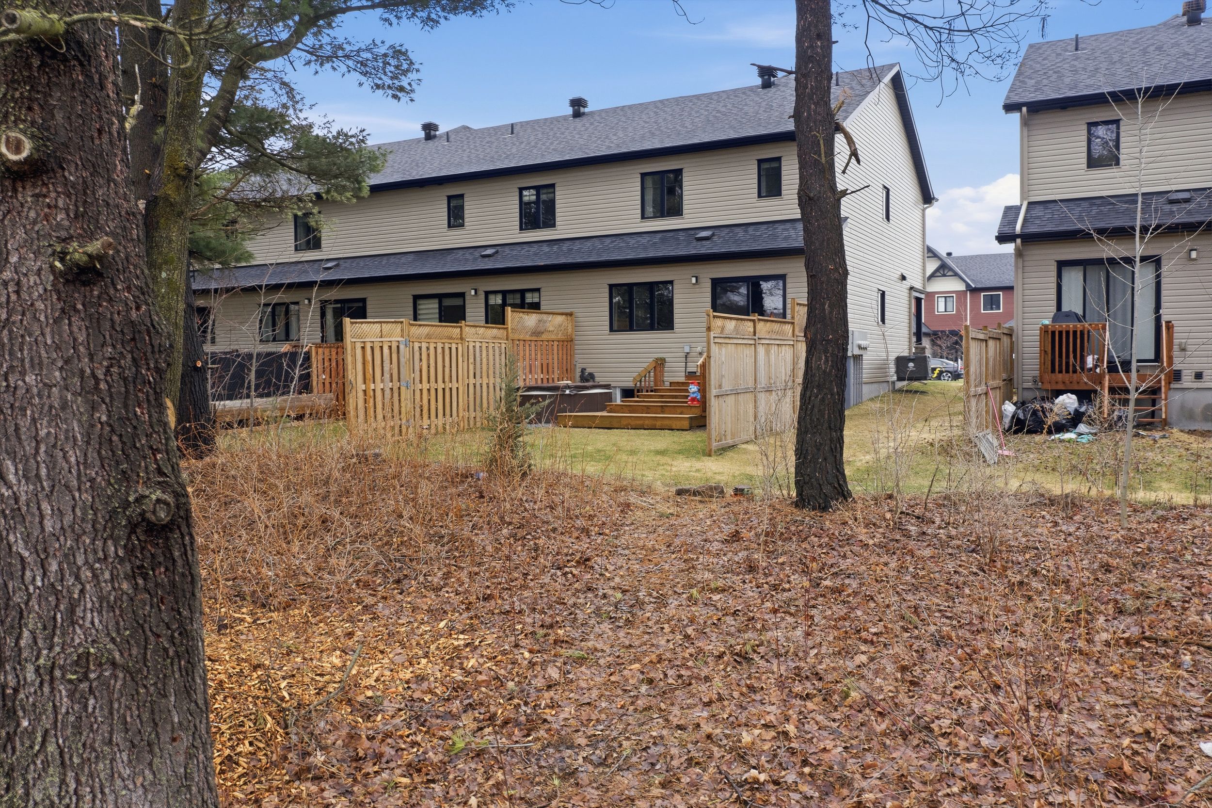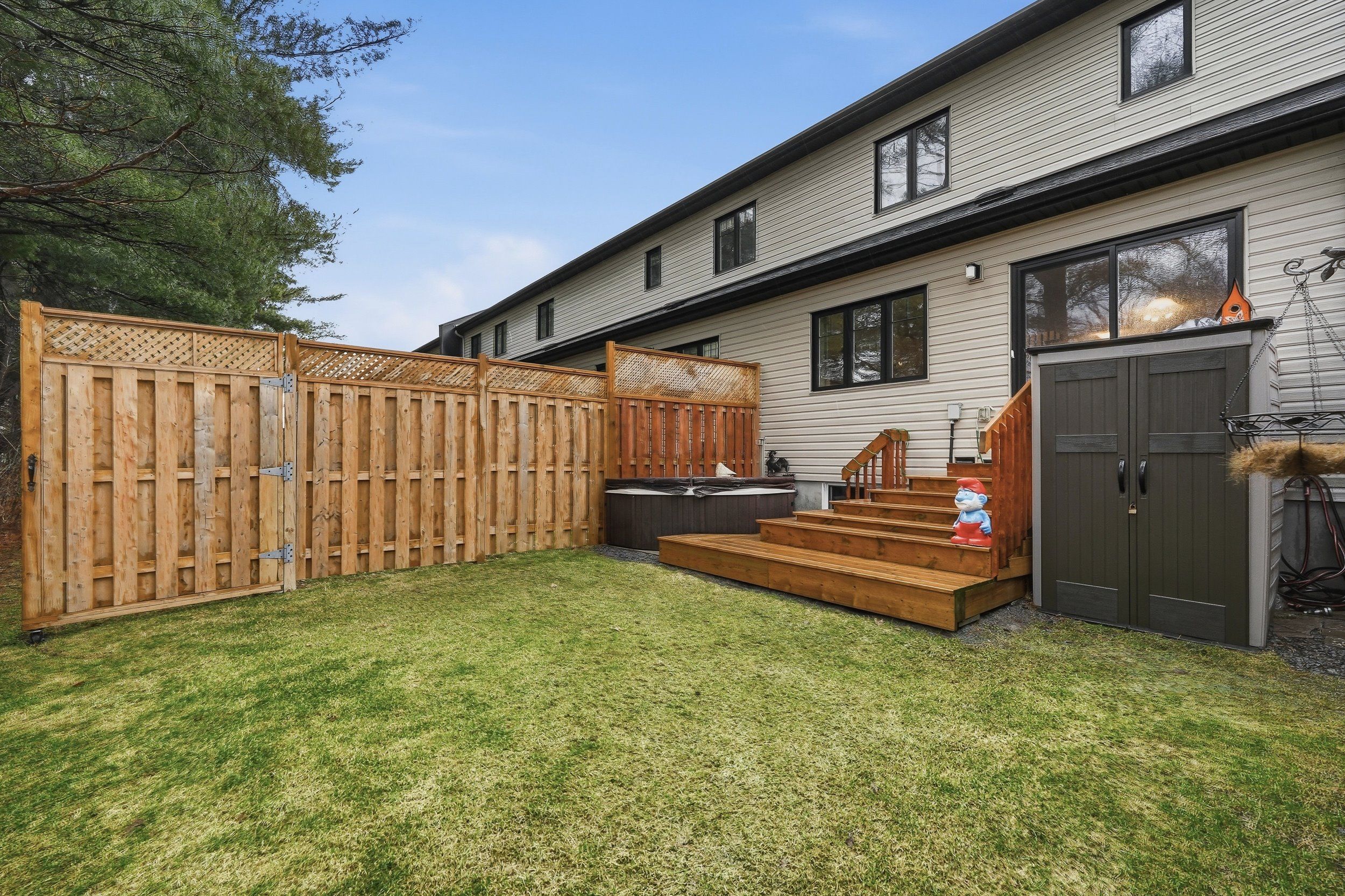 • Quiet backyard features a deck and hot tub for relaxation.