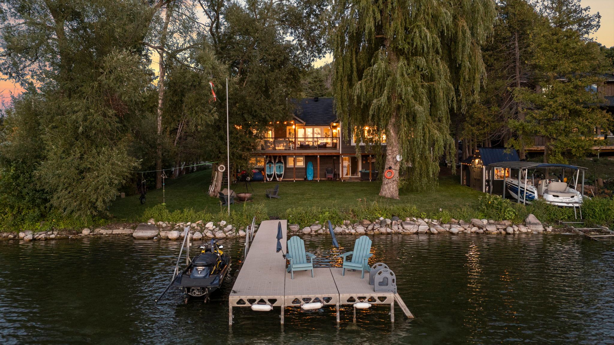 • Private lakeside retreat with stunning views of Lake Simcoe.