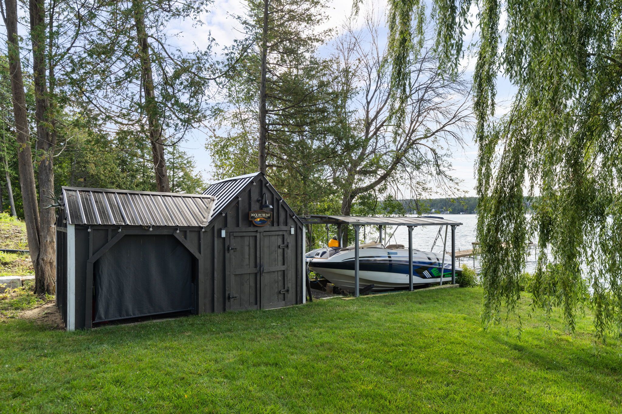 • Private dock with marine rail system for easy lake access.