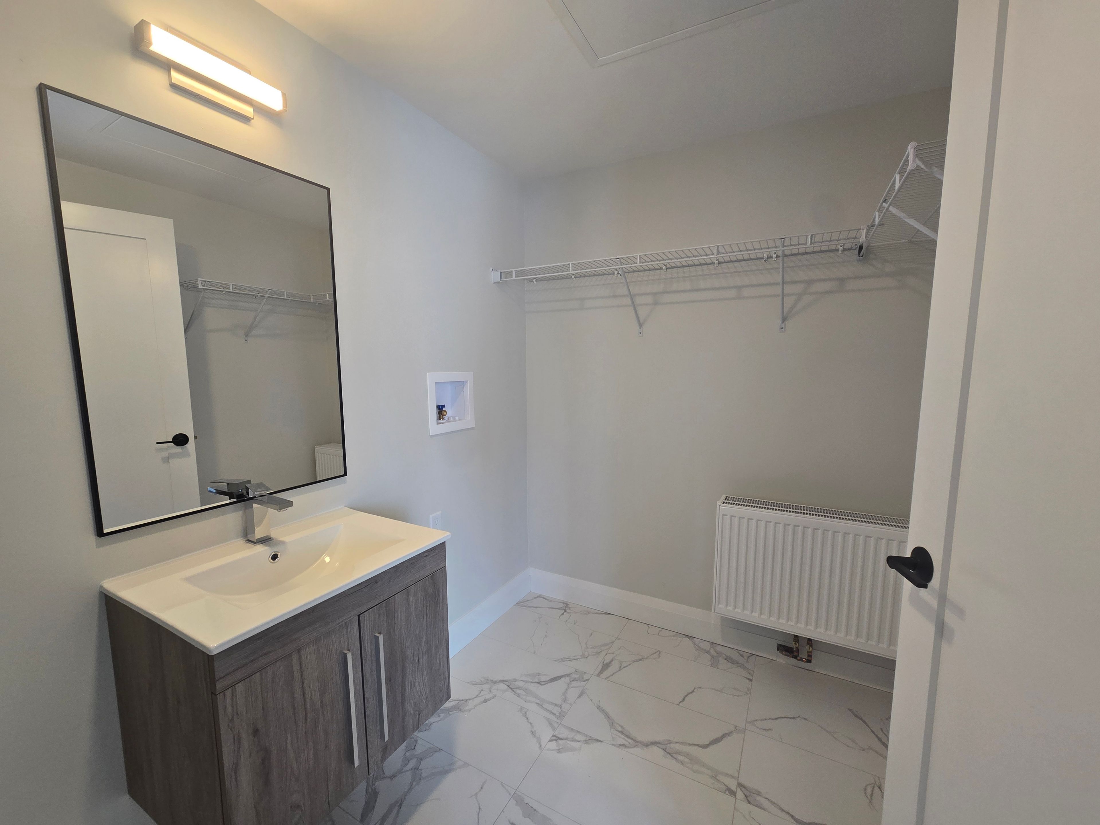 Welcome to the lofts at 241 front. This striking former bank building has been thoughtfully transformed into seven brand-new loft-style apartments that blend historic character with modern luxury. Each suite features soaring high ceilings, large windows that flood the space with natural light, and beautiful downtown views. The apartments showcase high-end finishes throughout, two bathrooms, and the convenience of in-suite laundry. With a variety of distinct floor plans ranging from approximately 500 to 1,000 square feet, these lofts offer flexible living options to suit different lifestyles. Set in a prime downtown location, 241 front street delivers a unique opportunity to live in the one-of-a-kind building where architectural charm meets contemporary urban living. Unit 201 features a combined living room and kitchen plus 2 piece bath on the second level, and a bedroom and 3 piece bath plus laundry on the loft level.
