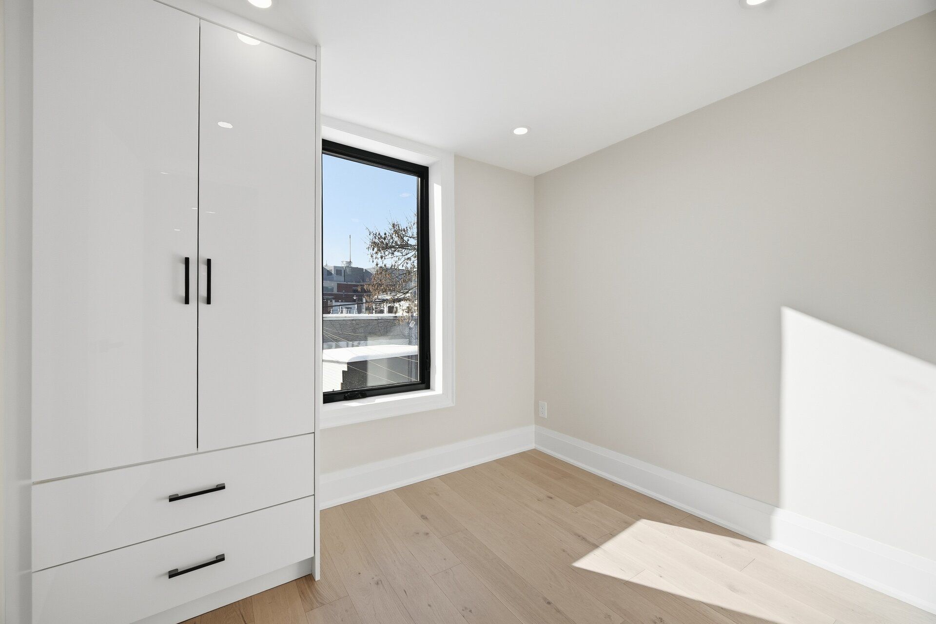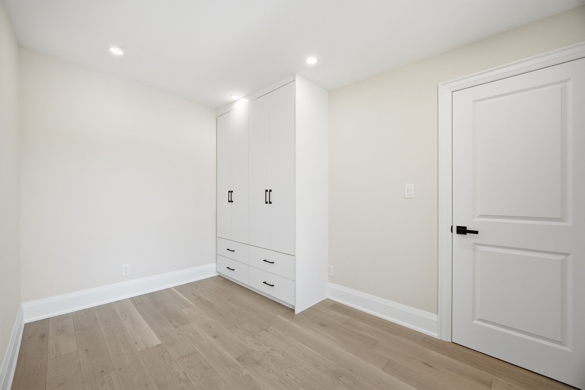 • Three spacious bedrooms with built-in closets and natural light from a skylight.