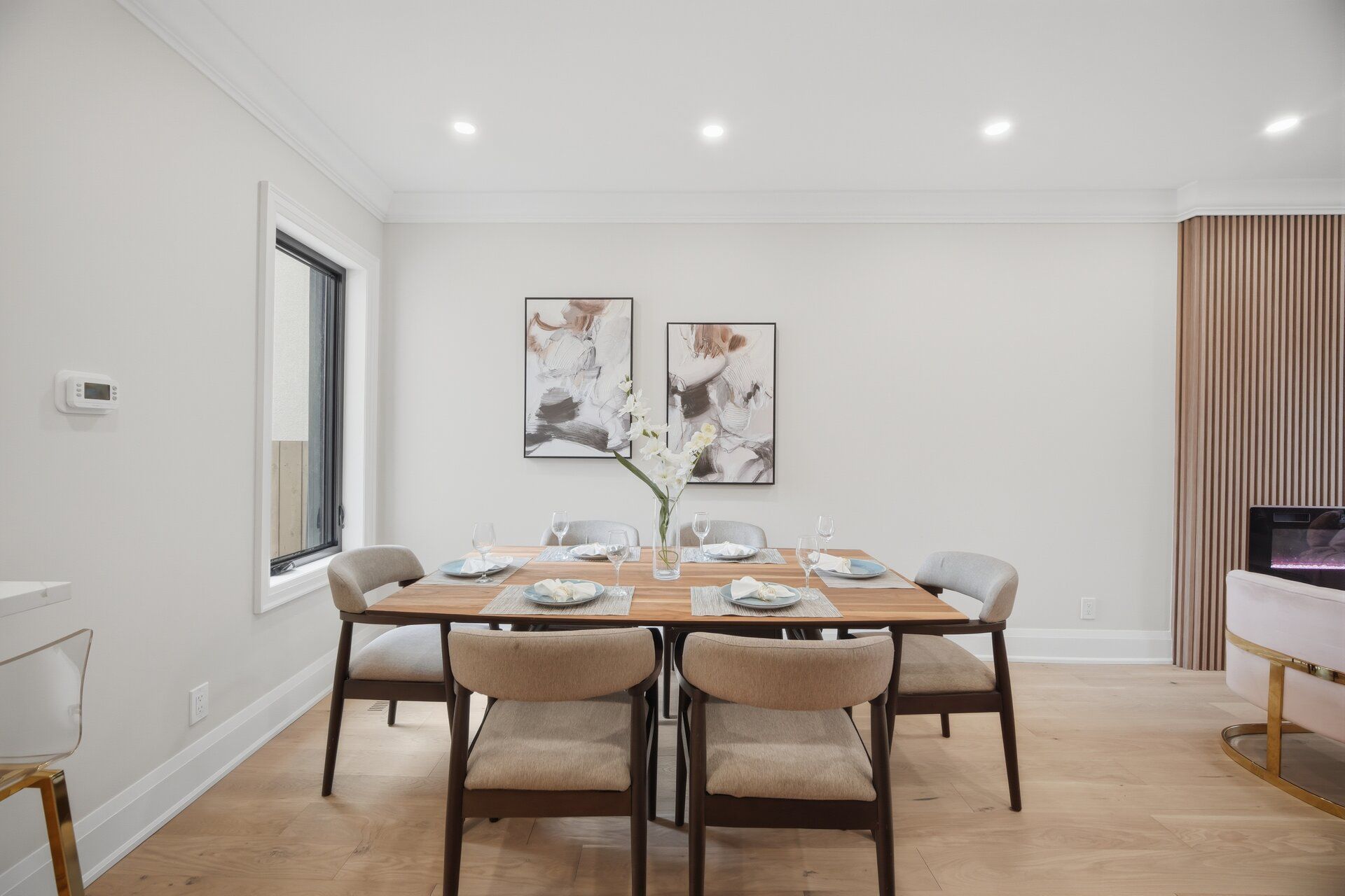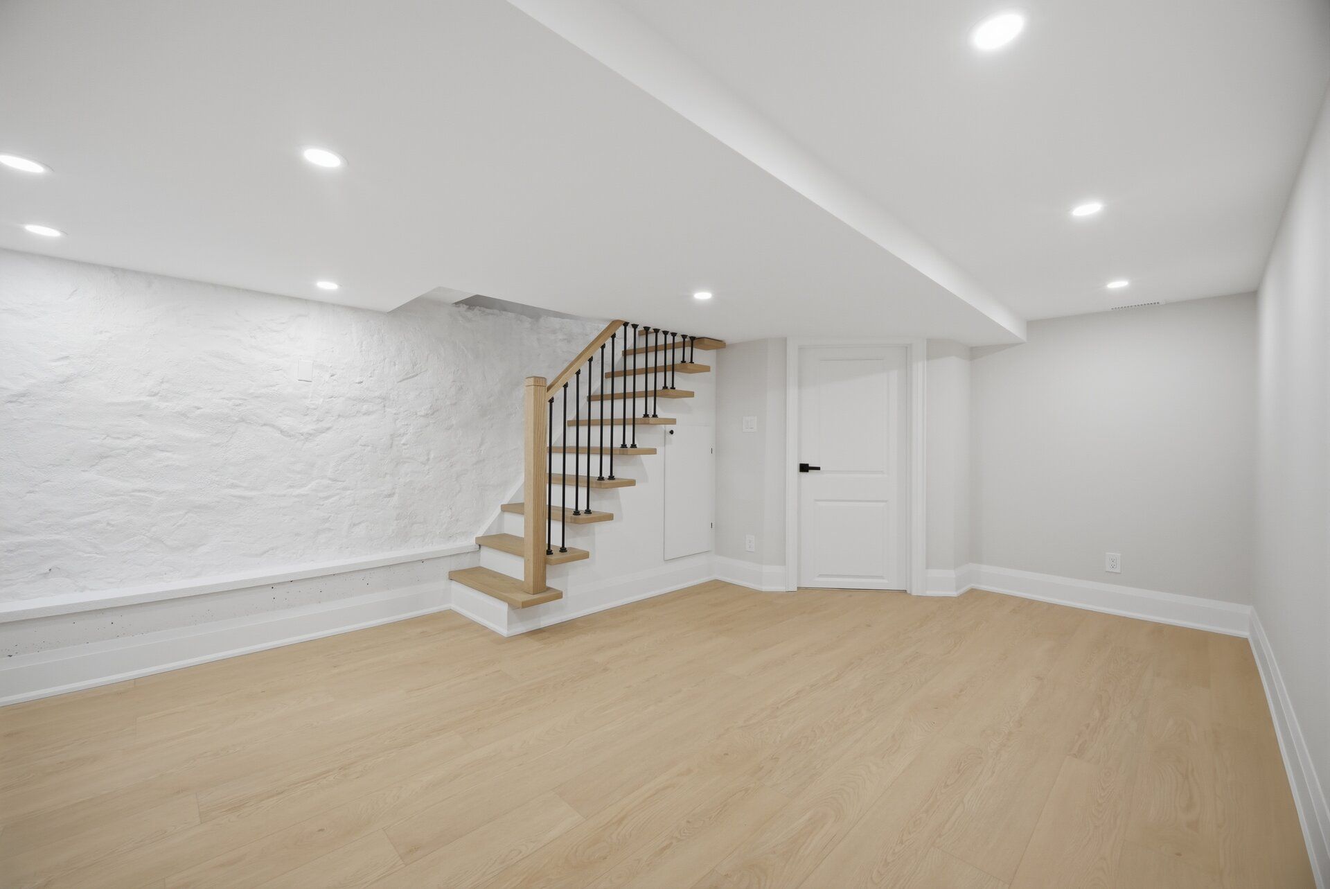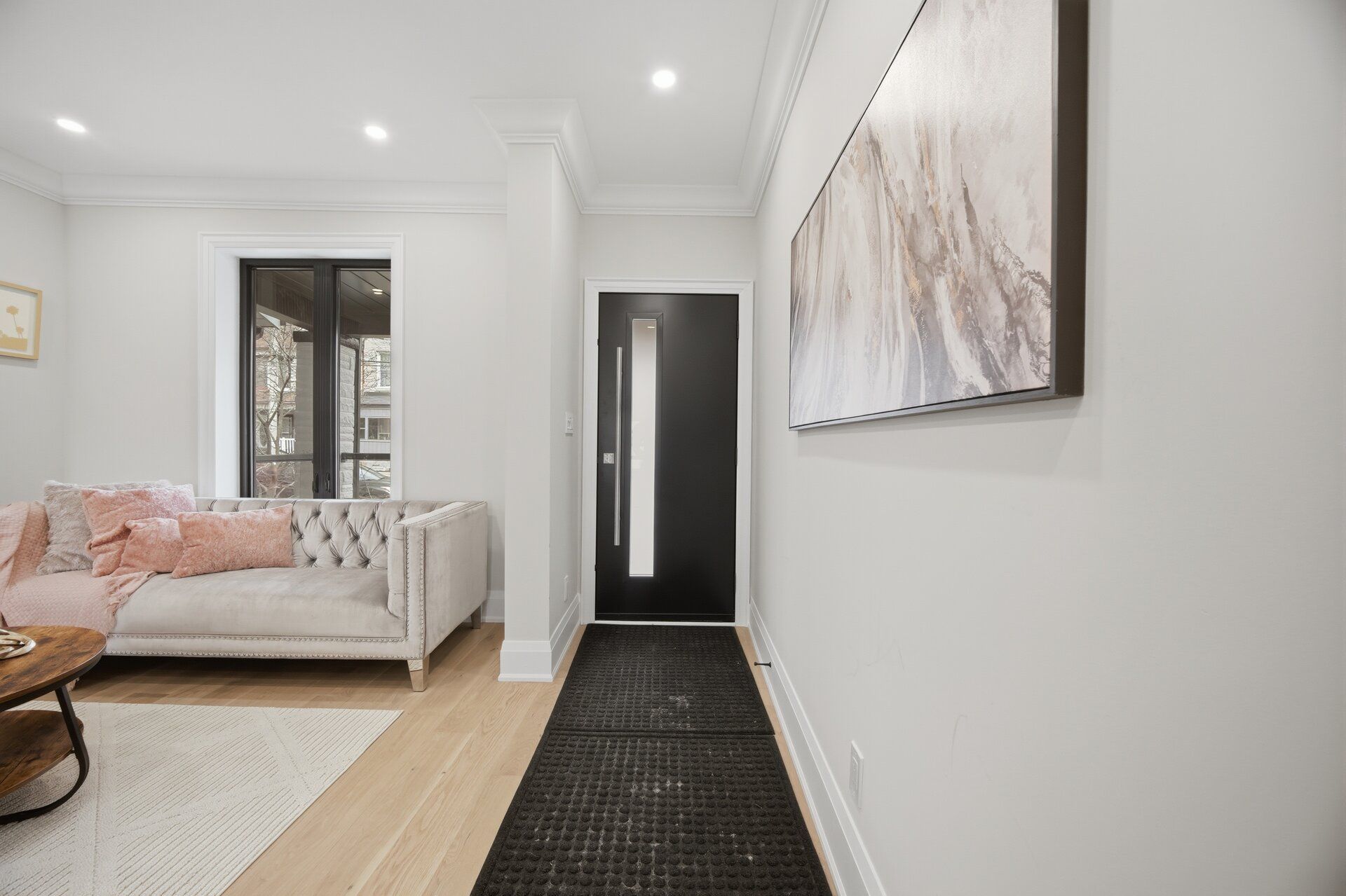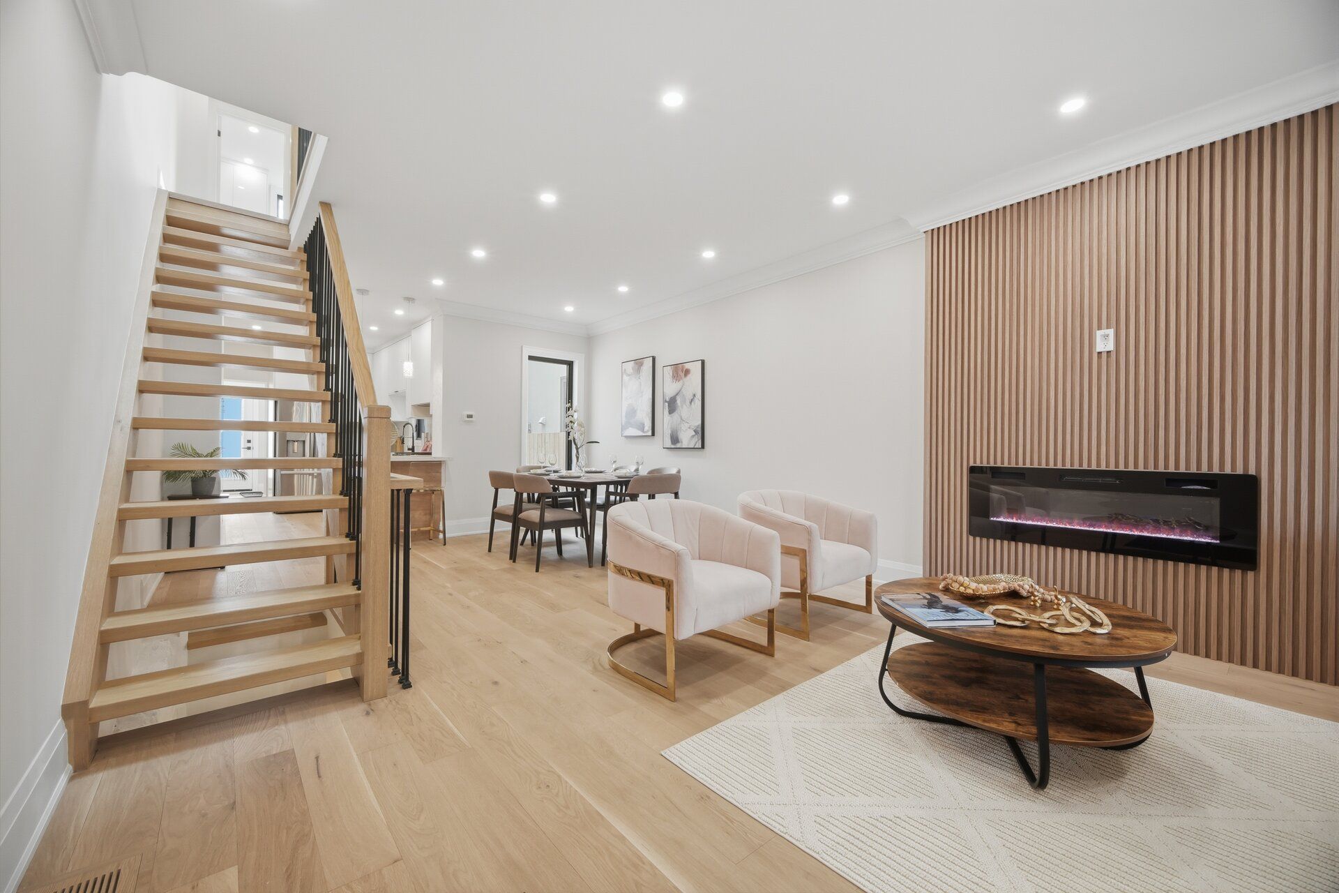 • Bright open layout with hardwood flooring and contemporary lighting.