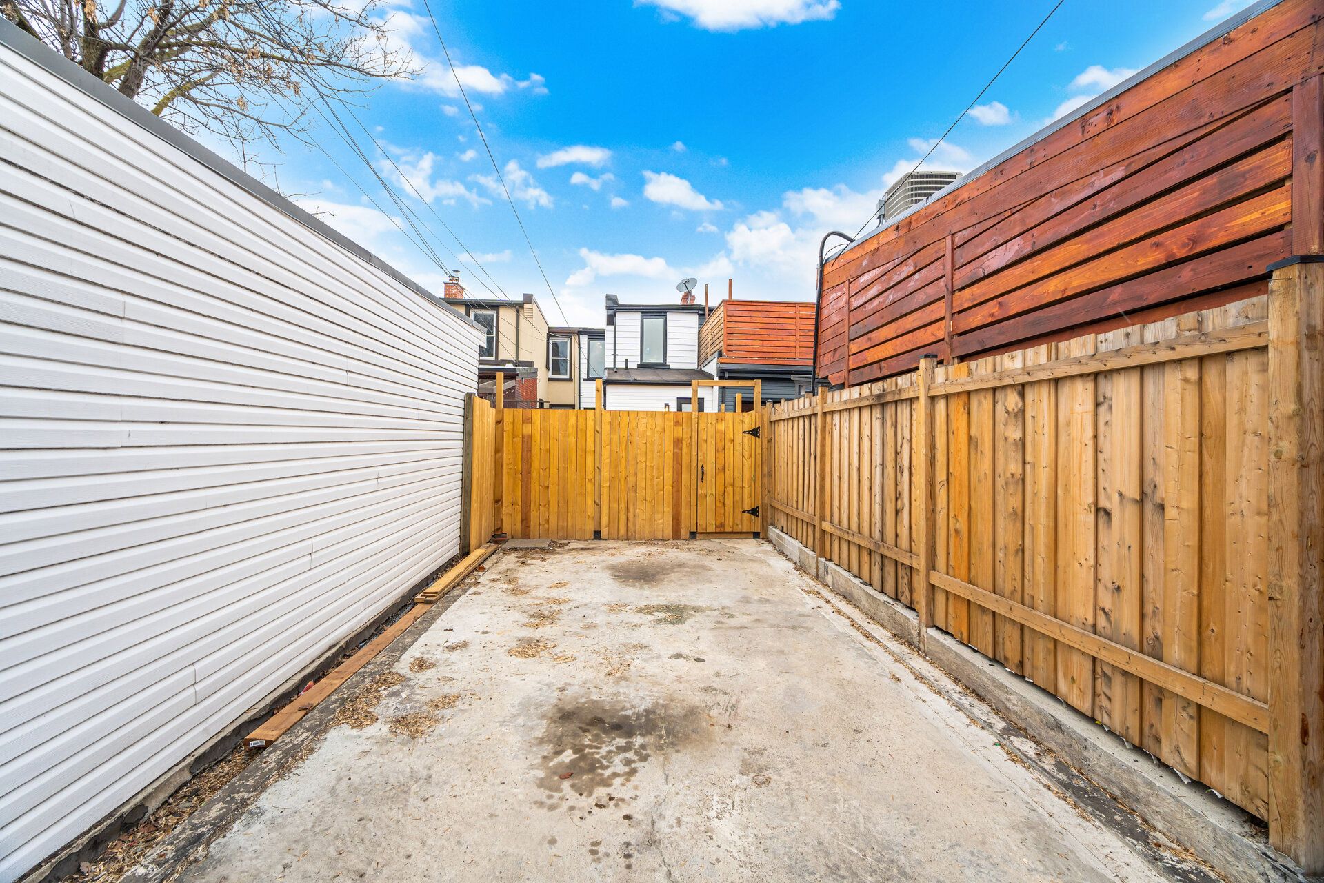 • Private backyard with gas line for barbecuing and parking access.