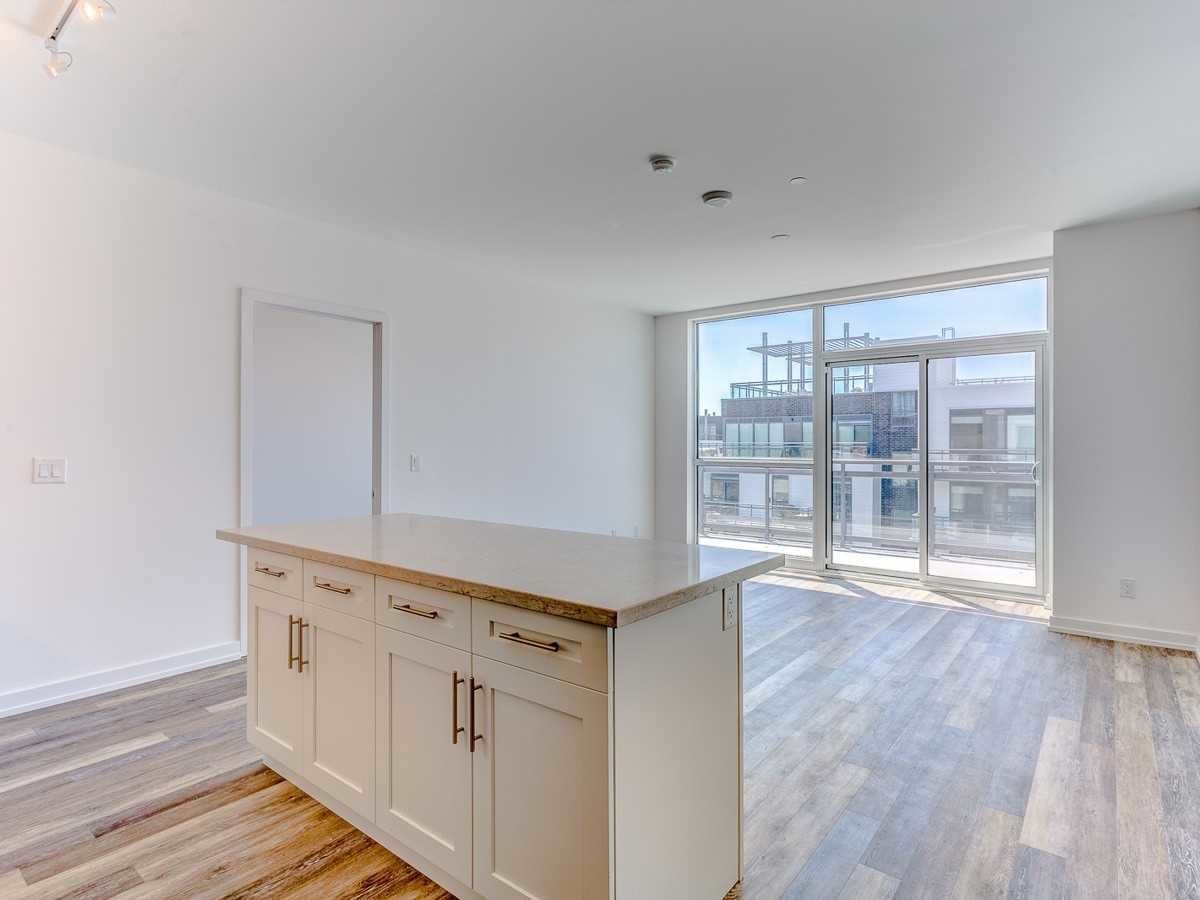 • Open-concept kitchen and living area with modern appliances and quartz countertops.