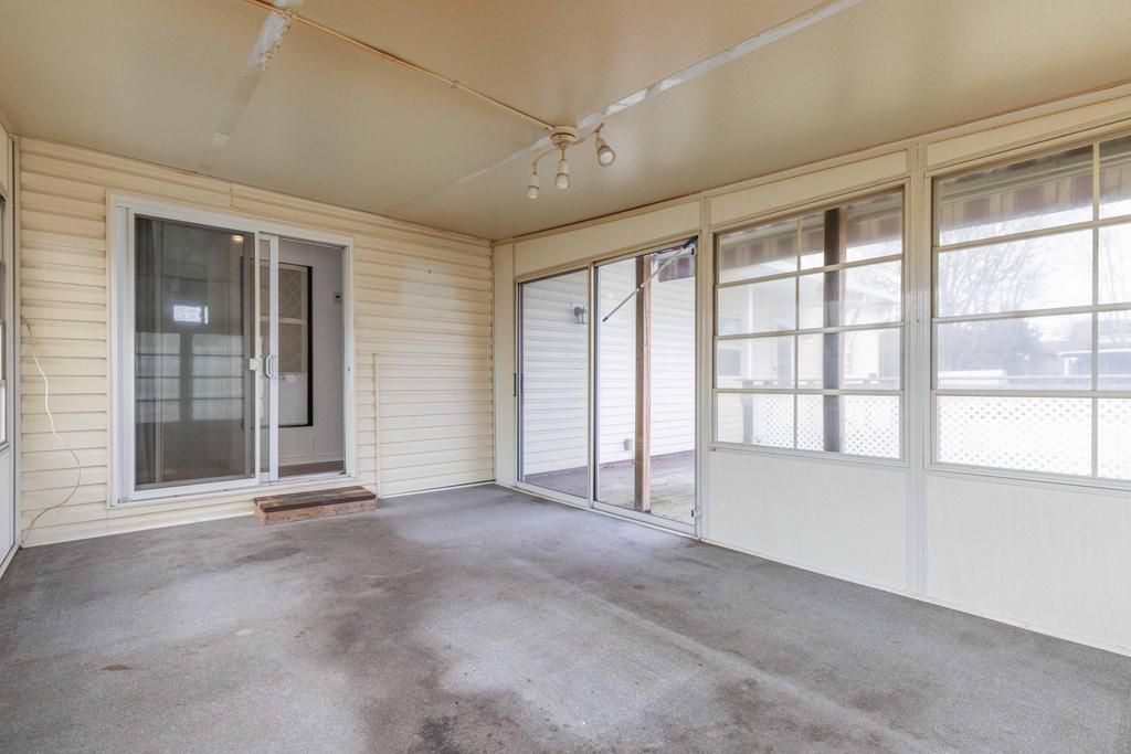 • Large enclosed sunroom adds extra space for relaxation or gatherings.