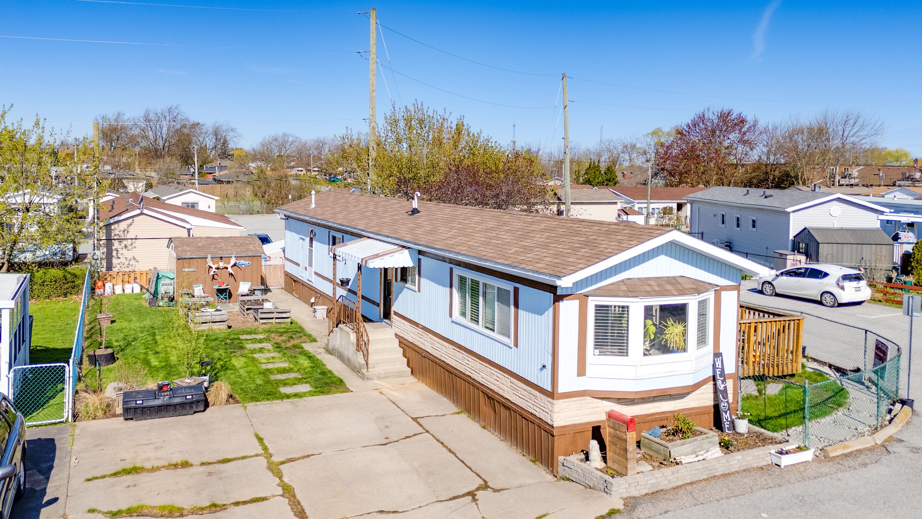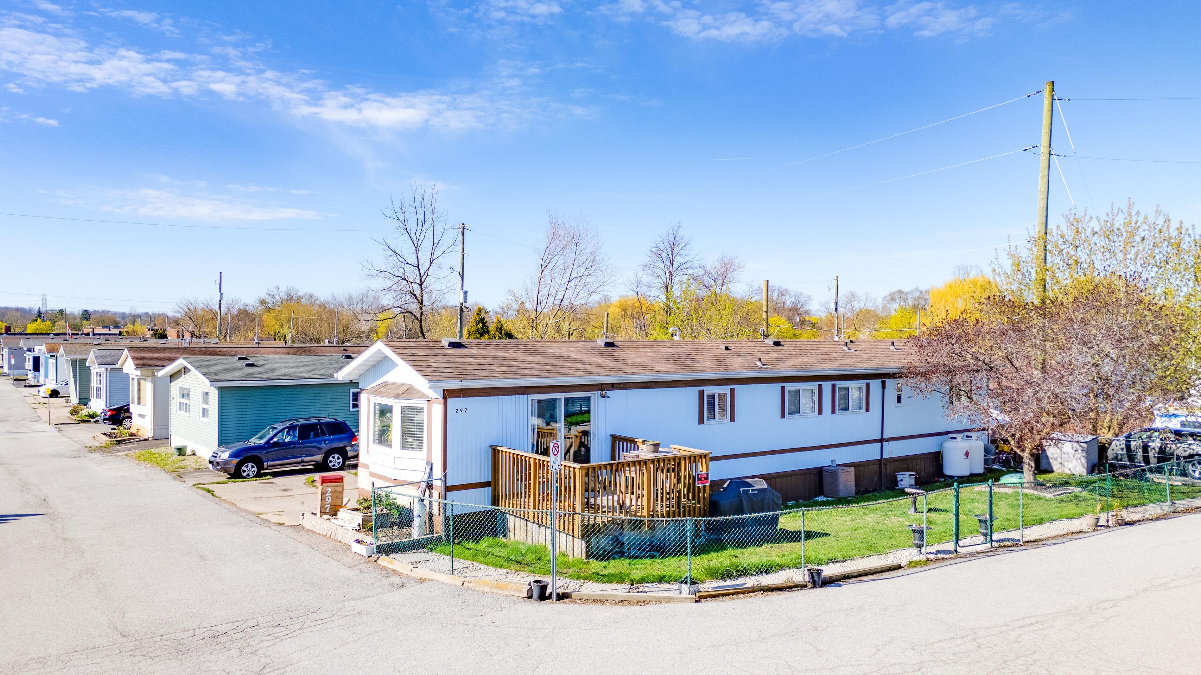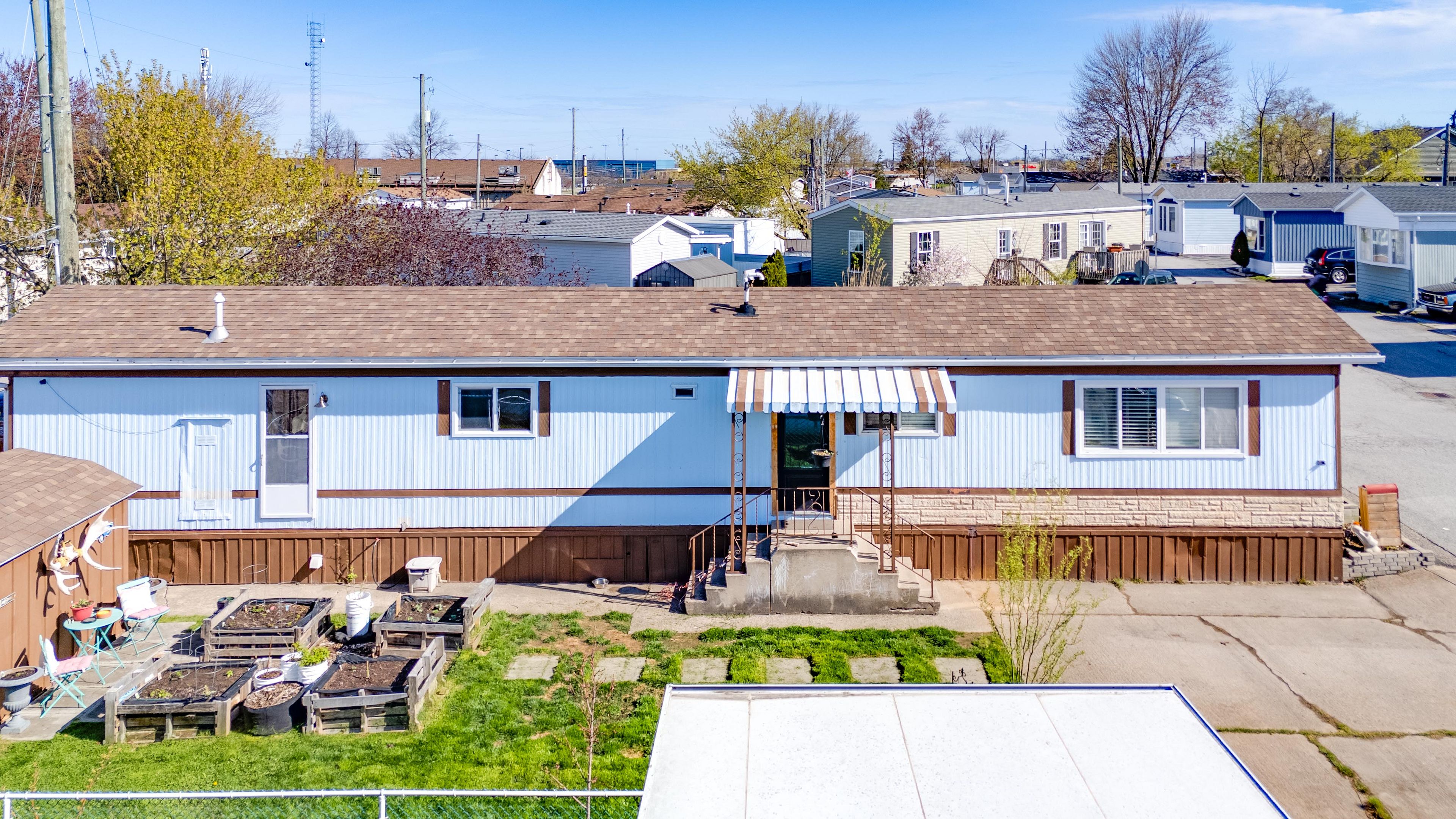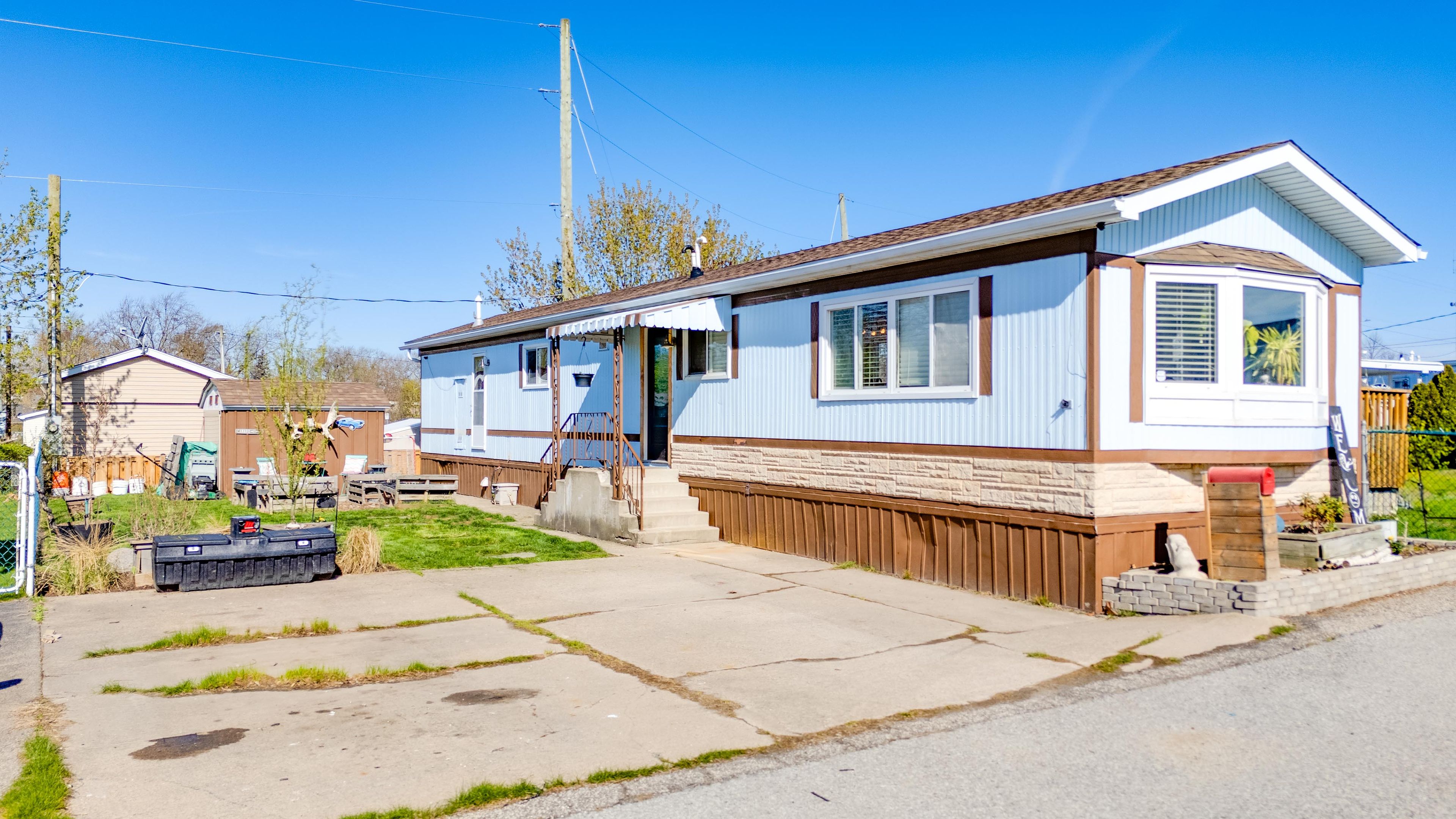 Affordable living in a prime st. Catharines location! This stylishly updated 2-bedroom, 1-bath home offers just under 1000 sq. Ft. Of modern comfort in one of st. Catharines most convenient locations. Just minutes to downtown, the hospital, shopping, restaurants, and more, you'll love the ease of living in this well-connected community. Step inside to a bright, open-concept layout featuring a fully updated kitchen with a center island and a custom live-edge countertop perfect for both casual meals and entertaining. Recent upgrades throughout the home include newer shingles, furnace, hot water heater, drywall, lighting, and contemporary flooring. The remodeled bathroom boasts a walk-in shower, while the spacious bedrooms offers plenty of space for queens sized beds. Enjoy outdoor living with a private 10' x 10' deck, a large fully fenced yard ideal for gardening or relaxing and parking for three on a paved driveway. Situated on one of the largest corner lots in the park, this home delivers both space and privacy in a quiet, friendly neighborhood. Whether you're a first-time buyer or looking to downsize, this is a fantastic opportunity to own an affordable, move-in-ready home in a high-demand area with lending options available to make it even more accessible.