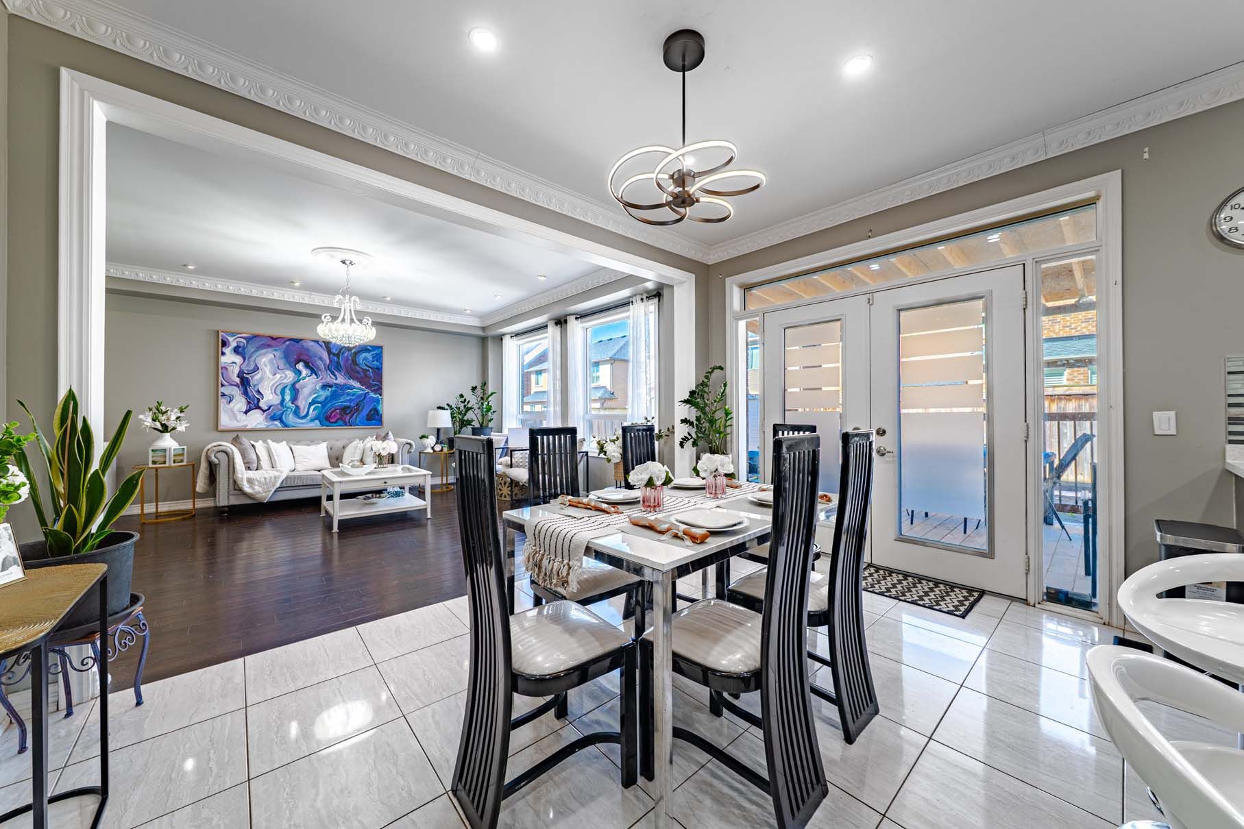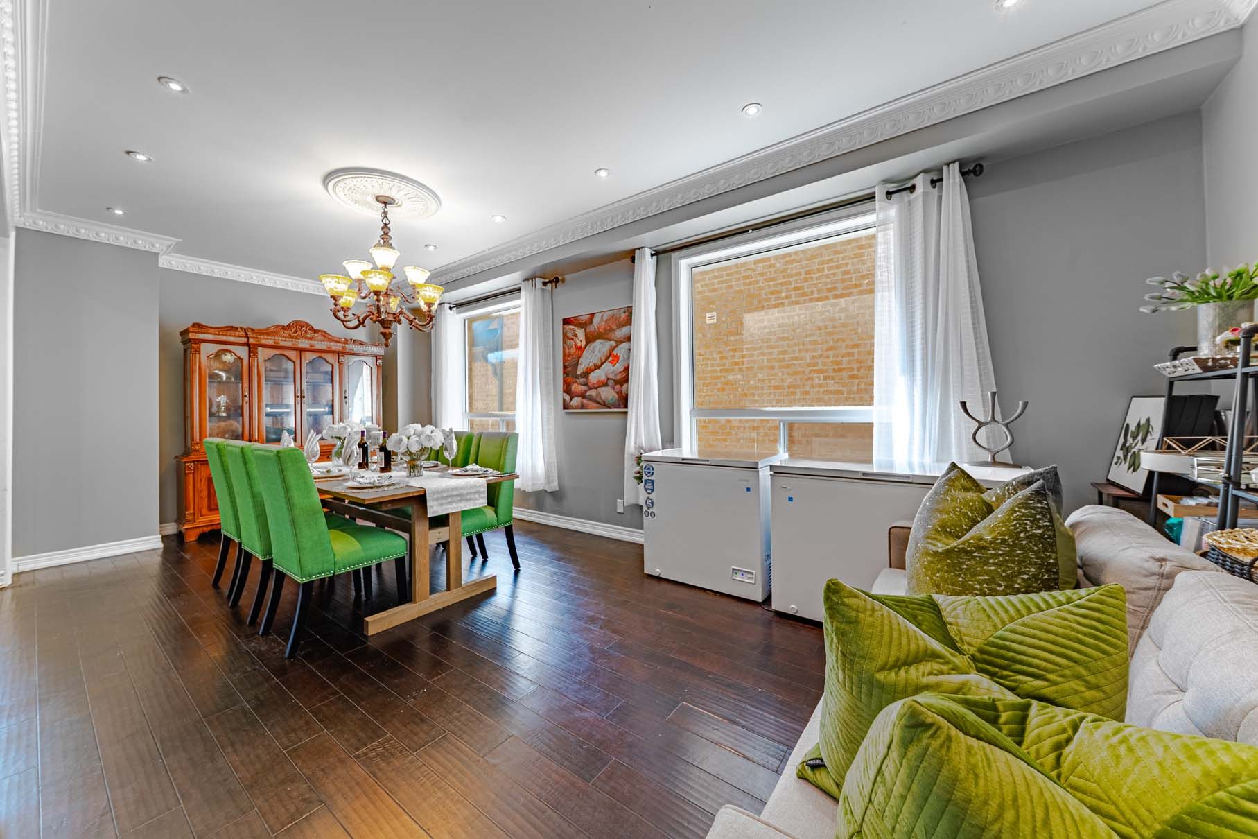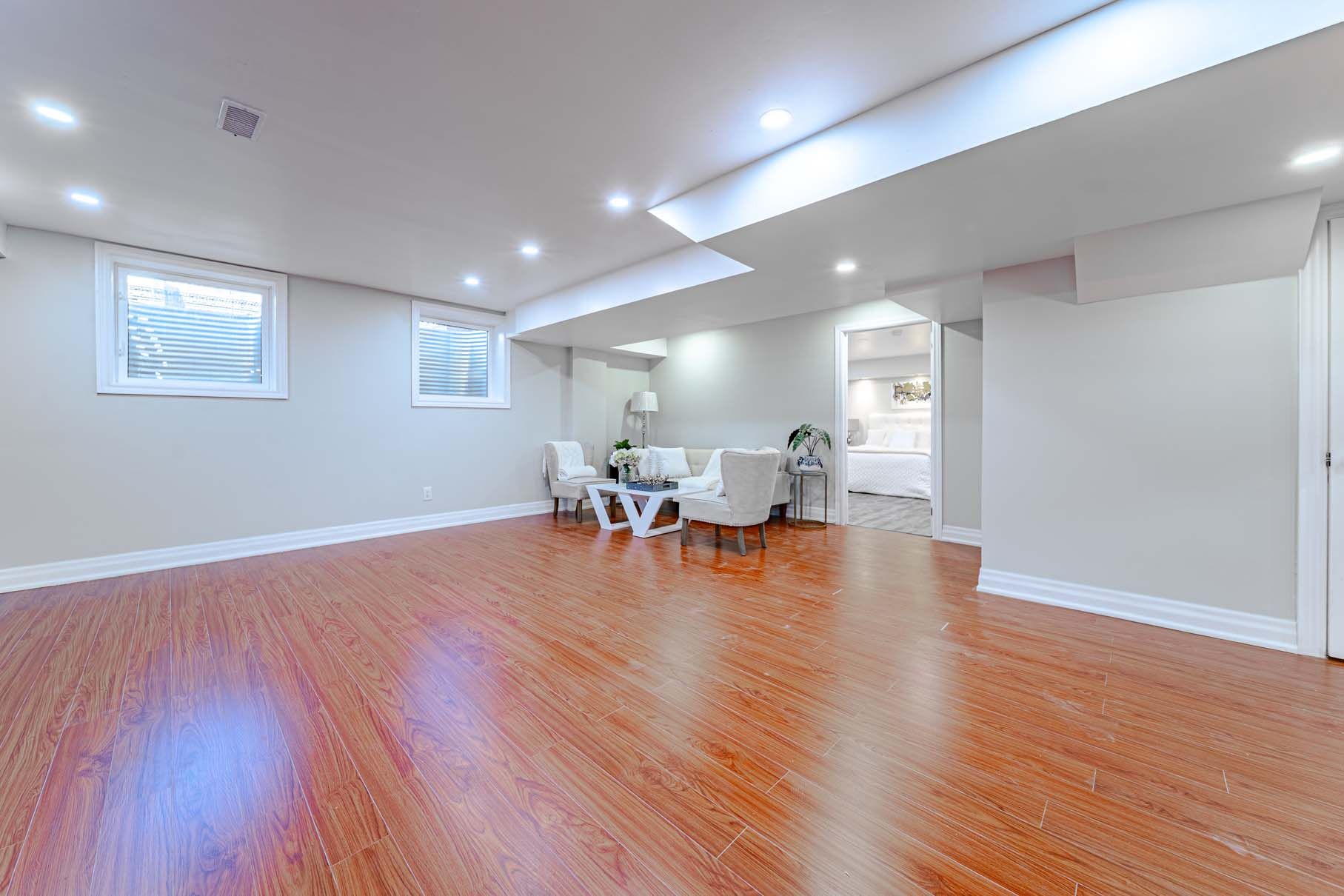 • Finished basement with separate entrance and additional living space options.