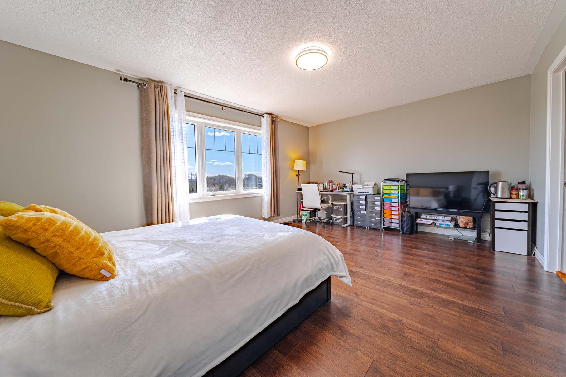 Welcome to this this stunning detached home offers serene pond views. Approx. 3,500 sqft with $$$ upgrades, featuring a double car garage, smooth ceiling, crown moulding, pot lights, chandeliers, and iron pickets. The efficient & sun filled layout includes open living and dining areas, formal family room overlooking the backyard. Large gourmet kitchen equipped with stainless steel appliances, including a wolf gas stove, centre island with breakfast bar and backsplash. A private main floor office with pond views provides the perfect workspace. Large covered deck extends the living space outdoors for year round enjoyment. The 2nd floor showcases 4 spacious bedrooms and 3bathrooms, including 2 ensuites and beautiful pond views. The expansive primary suite offers a luxurious 5pc ensuite and his & her walk-in closets. The newly finished basement with permit features a separate entrance, oversized windows, large recreation room, 2 additional bedrooms, and a modern 3pc bathroom, adding exceptional versatility to this remarkable home. Newer ac(2024), close to schools, parks, playgrounds, and community amenities, durham college, ontario tech university, hwy 407, shopping centres, restaurants, grocery stores, and everyday conveniences.