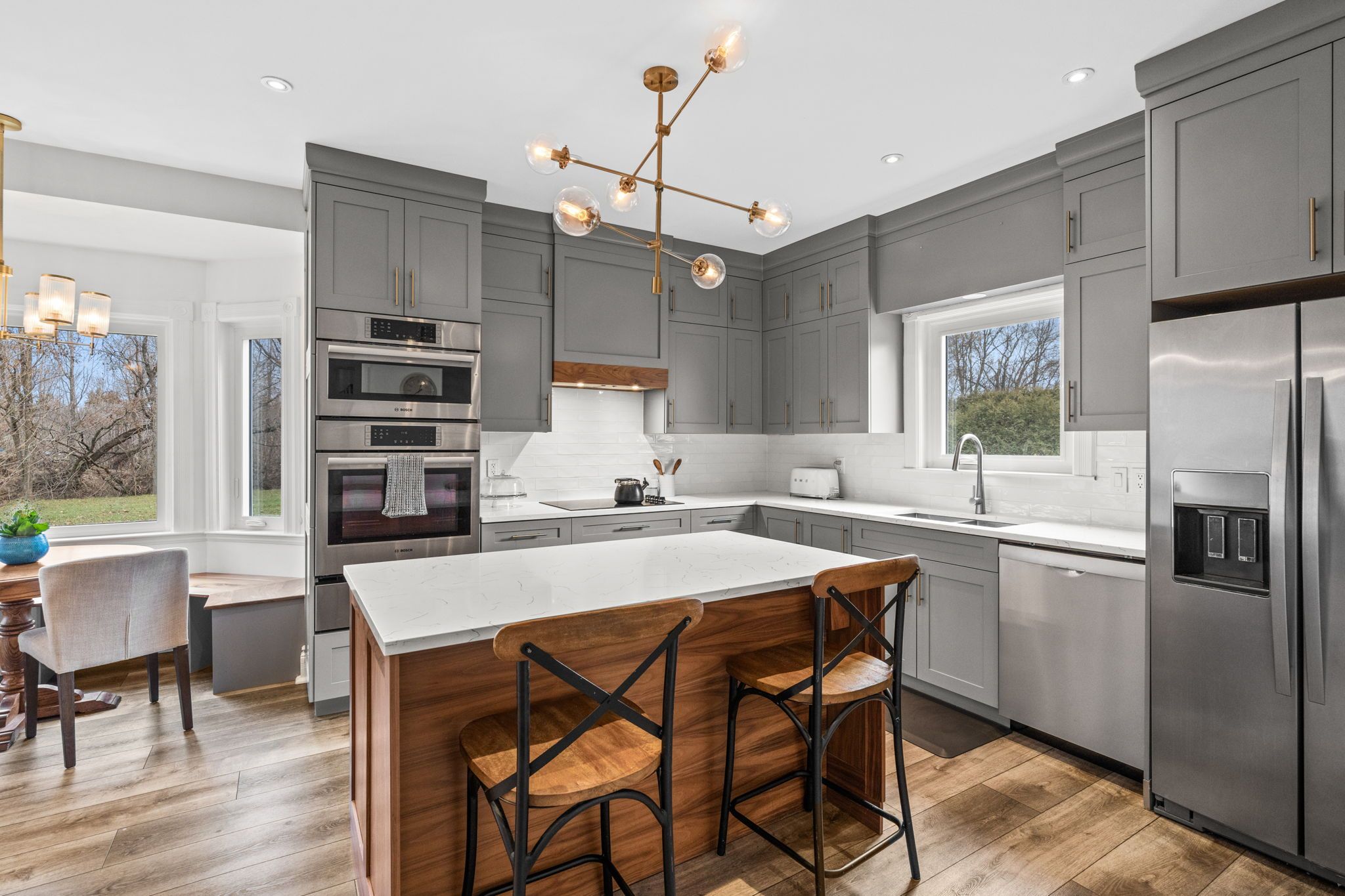 • Spacious kitchen designed for entertaining with a large island and natural light.