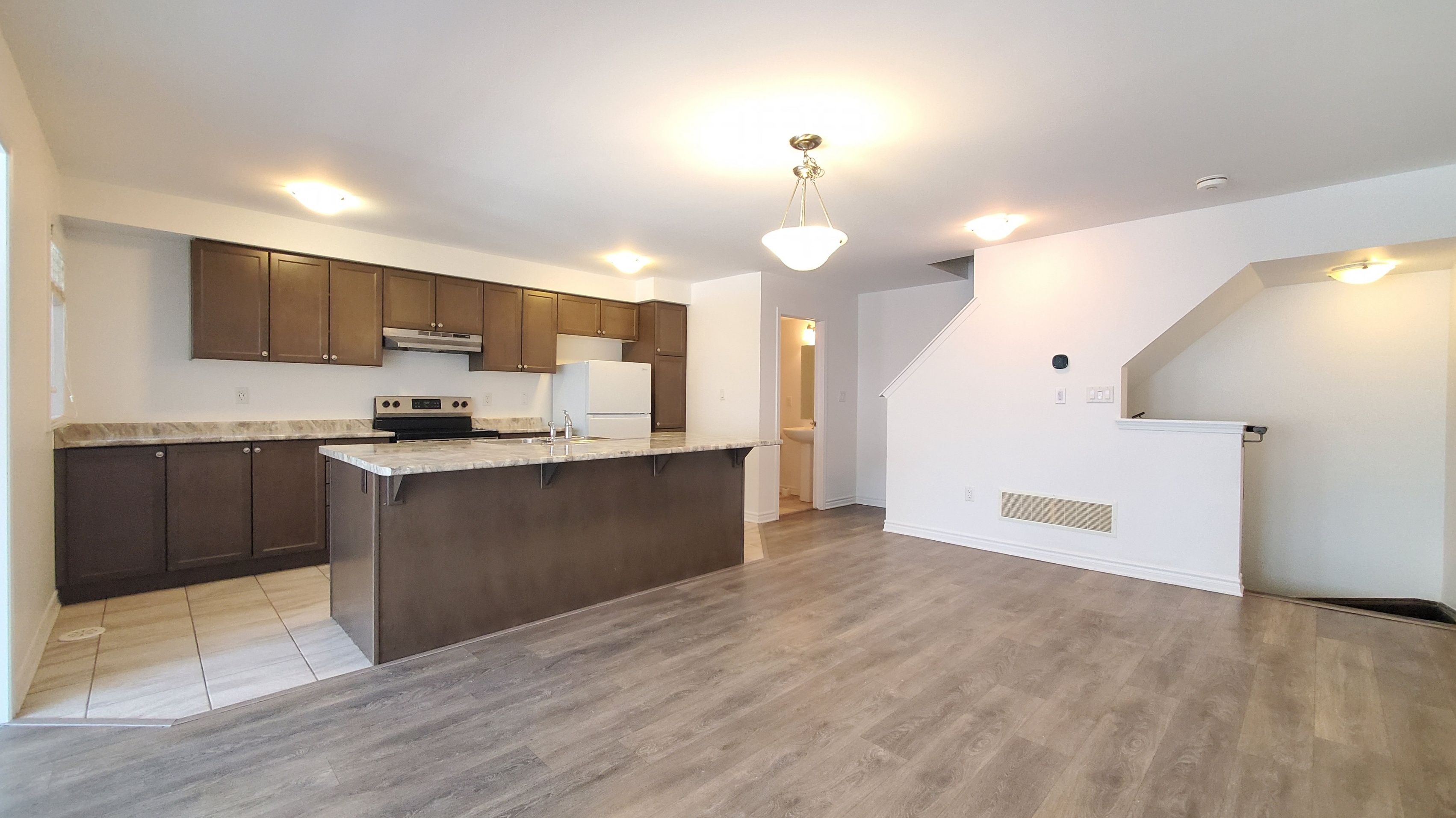 Welcome to this spacious & lovely, 3-storey mattamy built townhouse in north pickering, 3 bedrooms and 2. 5 baths, this nearly-new home is beautifully designed for single family living. Driveway can park 2 cars. The main floor is large foyer and laundry room, step to garage. The second floor is open concept, combined kitchen and dining room, large island, bright living with windows and walkout to balcony. The third floor primary bedroom with 3 pc ensuite and walk-in closet, there are two more bedrooms and an additional 4 pc bath. Close to school, parks, shopping, transit, and major highways. Convenient location w/ all the amenities you need nearby!
