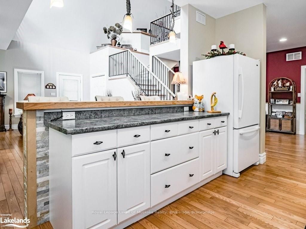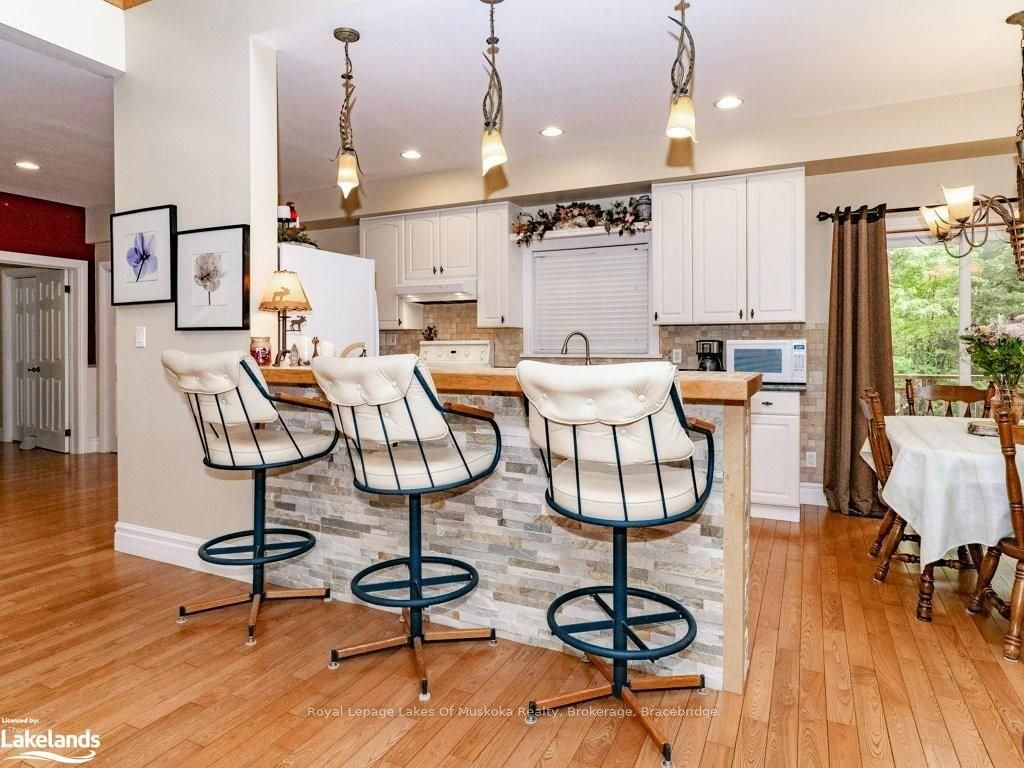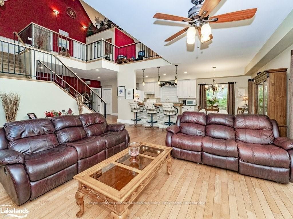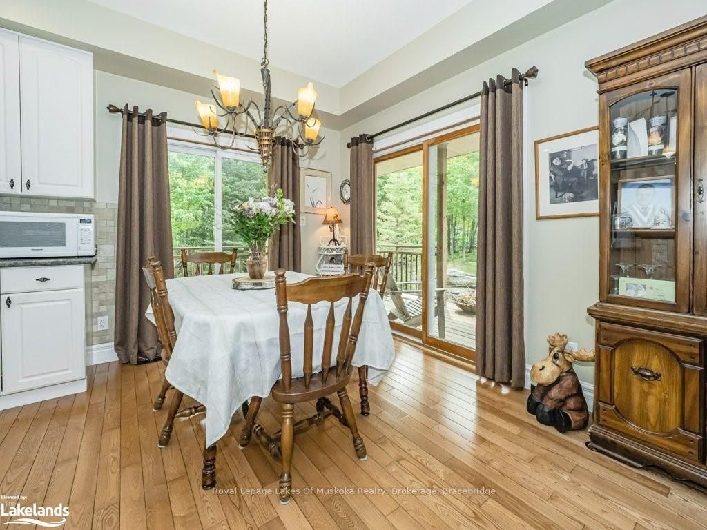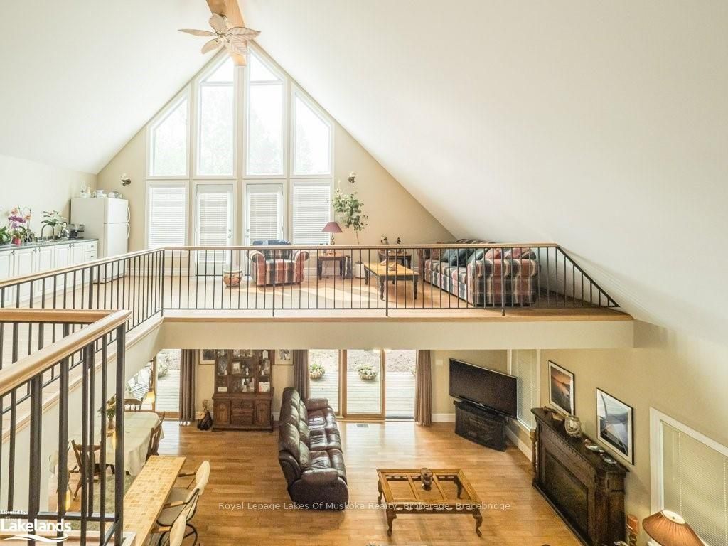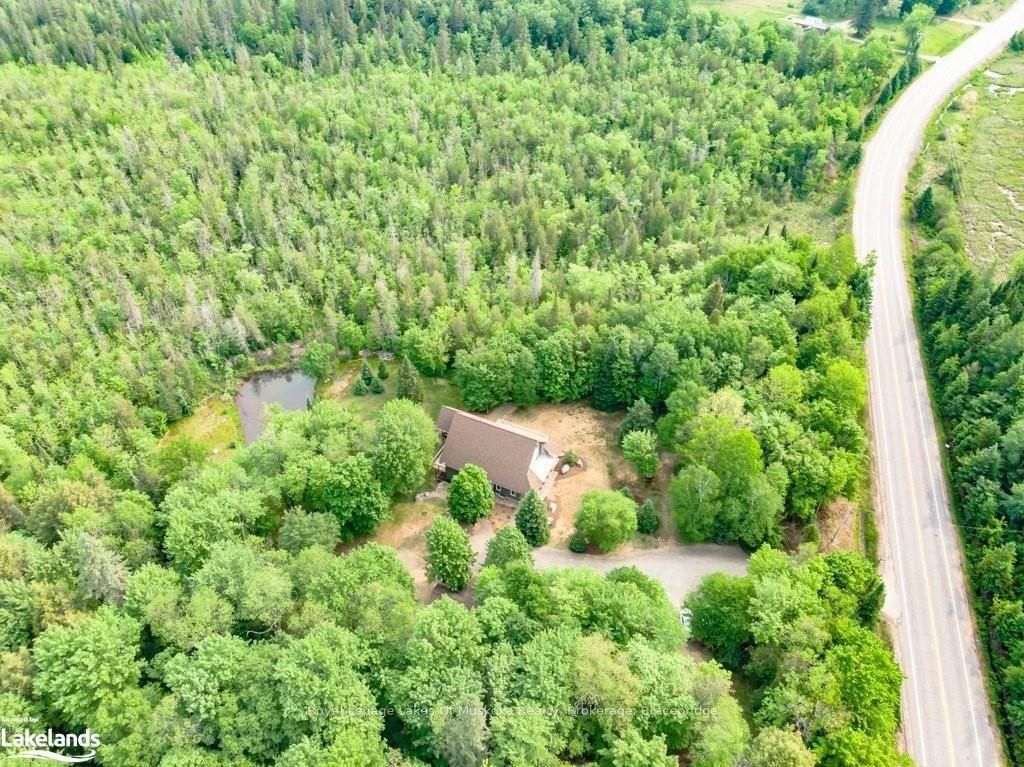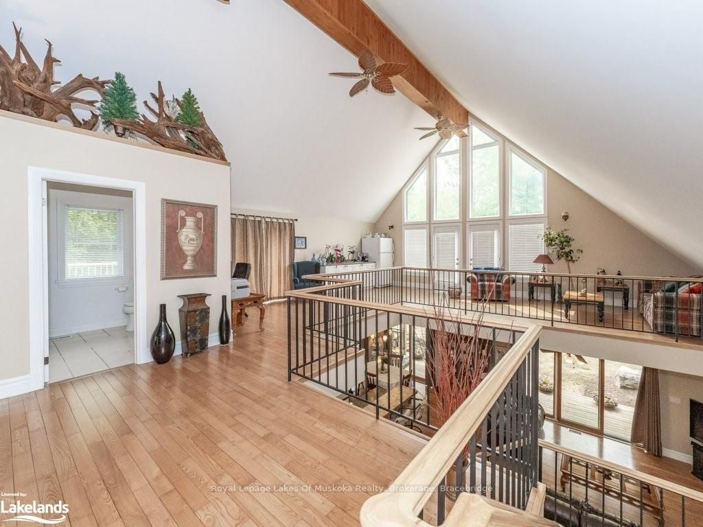 Offering a stunning custom-built home nestled on a private 2-acre country lot with a lovely view over a pond where the birds and wildlife like to visit. This home is large enough to share with an extended family or to host your overnight guests when they come to visit muskoka. Enjoy the summer breeze as you relax on the huge wrap around veranda leading to a large, covered deck for dining and bbq's. Upon entry, the home features an open concept floor plan with soaring cathedral ceilings. The primary bedroom is on the main floor with patio doors overlooking the backyard and pond leading to the back deck. There is a large main floor 4 pc. Bathroom and a convenient laundry room. Upstairs is the loft with a wet bar and patio doors leading to two large balconies with beautiful views of the forest. Two additional bedrooms are also on the second level along with a 4 pc. Bathroom. Gleaming red ash floors grace the principal rooms and upper level. Great potential for a 1400 sq. Ft. Family accomodations in the lower level, all with above grade windows to two walkouts to the backyard. A finished fourth bedroom and third 4 pc. Bathroom along with an ample rec room and family room which could be finished off as a eat-in kitchen. The kitchen cabinets are not mounted but are included in the sale. There is a cute bunkie next to the house which could be used as a workshop studio or extra accommodations. All of this is only a short drive to town or a five-minute drive from the public beach on prosect lake where you can go for a quick dip or to launch the watercraft to go fishing. Enjoy the country lifestyle while working, living and playing in beautiful muskoka!