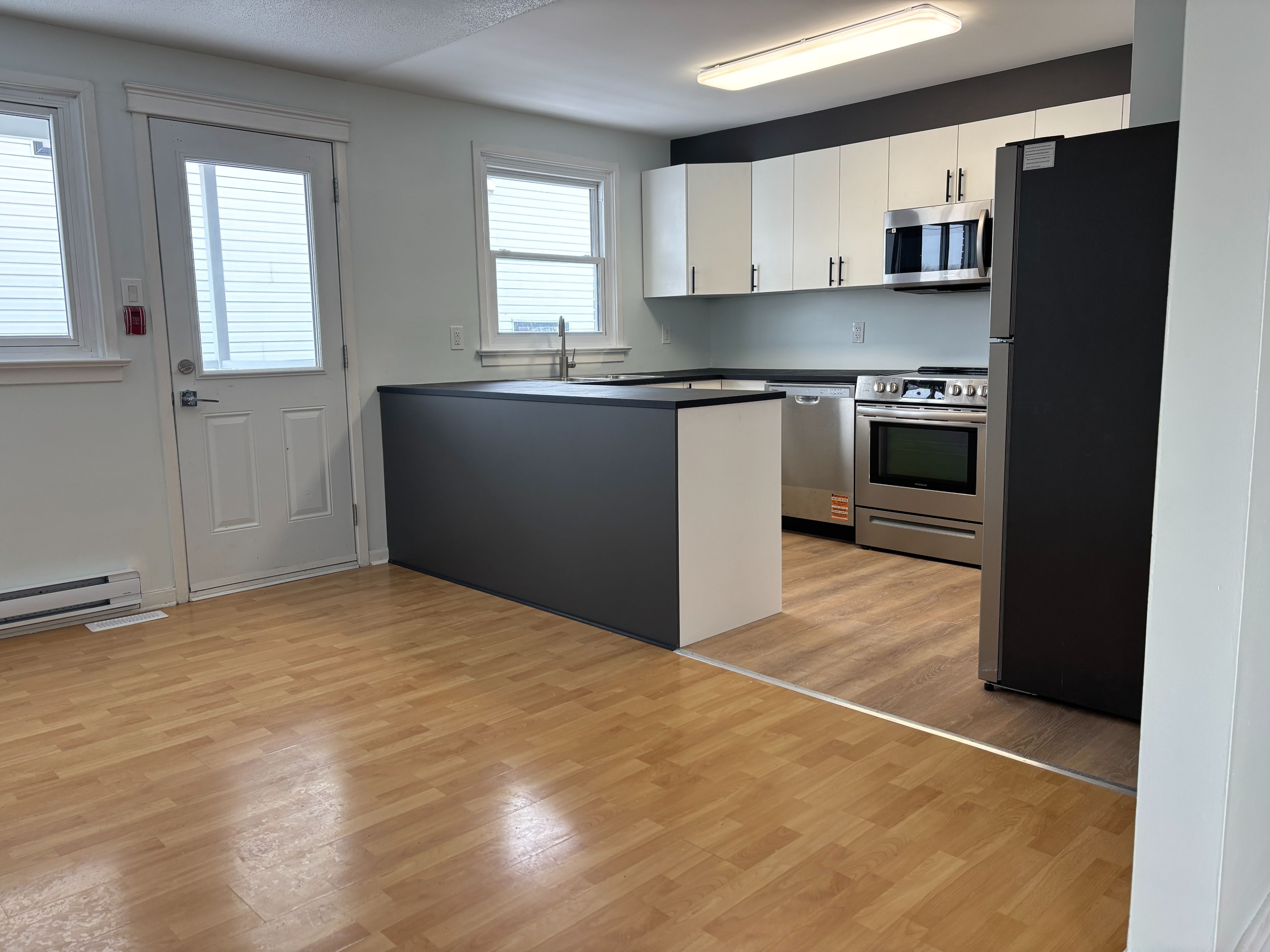 • Newly renovated upper unit with three spacious carpet-free bedrooms.